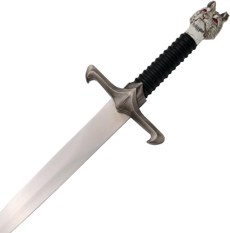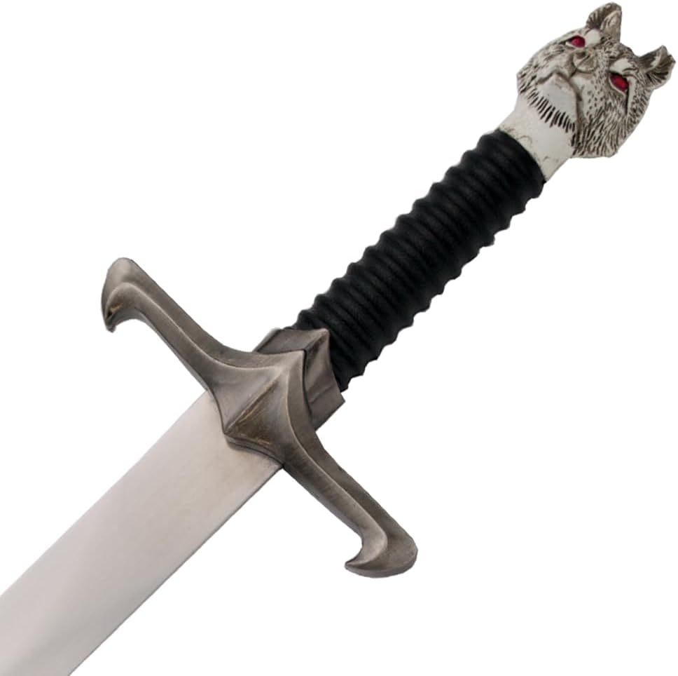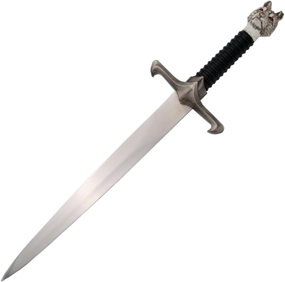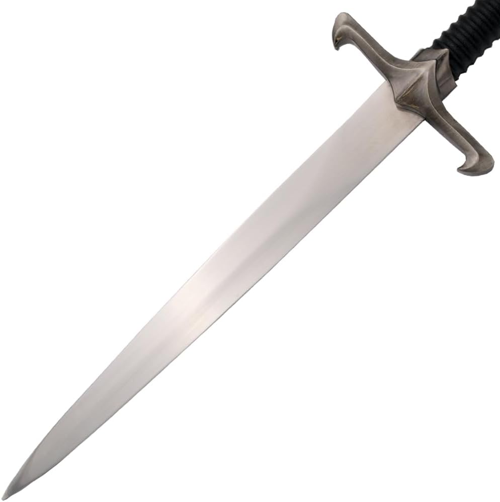 Lunghezza totale: 40,5 cm Lunghezza lama: 24,5 cm Spessore lama: 2,2 mm Peso: 265 g Fodero incluso Materiale lama: metallo Lavorazione dettagliata Ogni pezzo è stato realizzato con cura per riprodurre fedelmente i tratti caratteristici delle armi. La qualità dei materiali e la cura dei dettagli li rendono una vera attrazione. Ideale per fan e collezionisti Con una confezione elegante e una presentazione unica, queste spade e pugnali sono il punto forte di ogni collezione. Offrono l'opportunità di celebrare i tuoi personaggi e momenti preferiti. Idea regalo Sorprendi amici, familiari o te stesso con un pezzo dell'affascinante mondo di GoT. Che si tratti di compleanni, Natale o semplicemente come regalo per i fan, queste spade e pugnali colpiscono sempre nel segno.