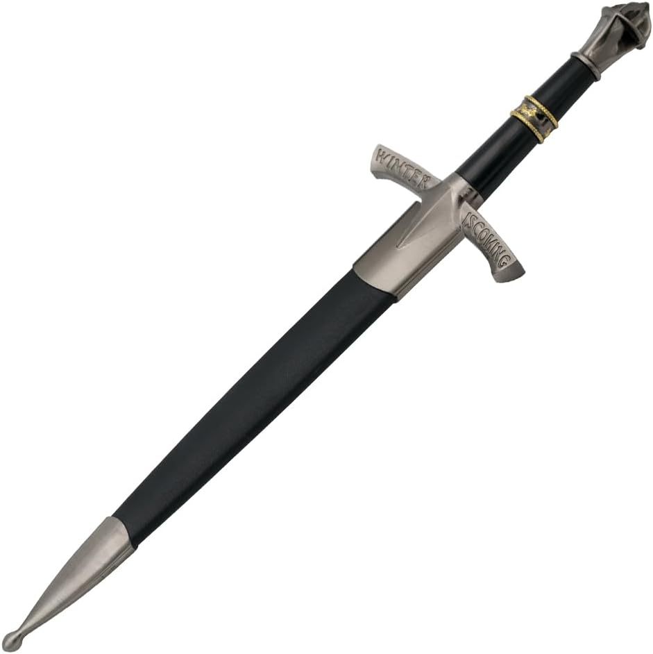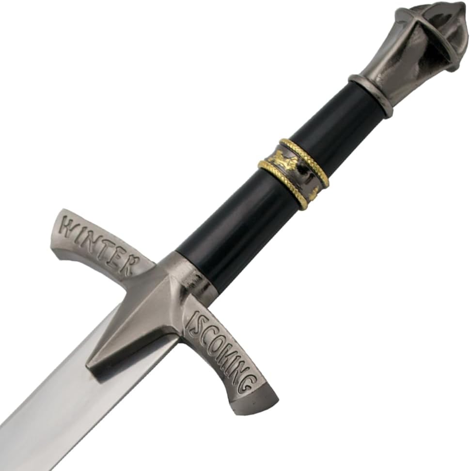 Materiale lama: acciaio Lunghezza totale: 43 cm Lunghezza lama: 24,5 cm Spessore lama: 2,2 mm Peso: 320 g Lavorazione dettagliata Ogni pezzo è stato realizzato con cura per riprodurre fedelmente i tratti caratteristici delle armi. La qualità dei materiali e la cura dei dettagli li rendono una vera attrazione. Ideale per fan e collezionisti Con una confezione elegante e una presentazione unica, queste spade e pugnali sono il punto forte di ogni collezione. Offrono l'opportunità di celebrare i tuoi personaggi e momenti preferiti. Idea regalo Sorprendi amici, familiari o te stesso con un pezzo dell'affascinante mondo di GoT. Che si tratti di compleanni, Natale o semplicemente come regalo per i fan, queste spade e pugnali colpiscono sempre nel segno.