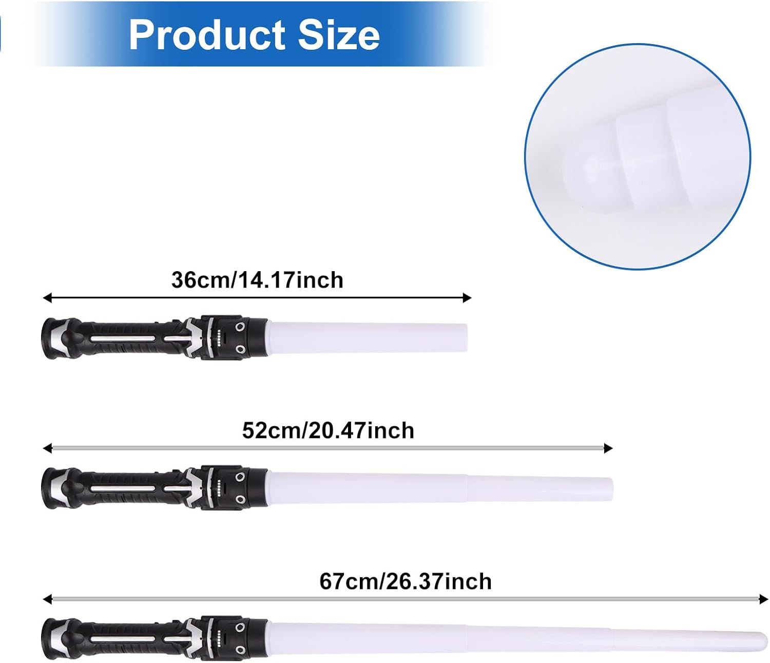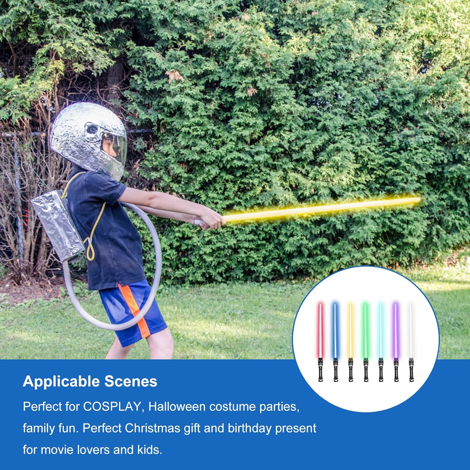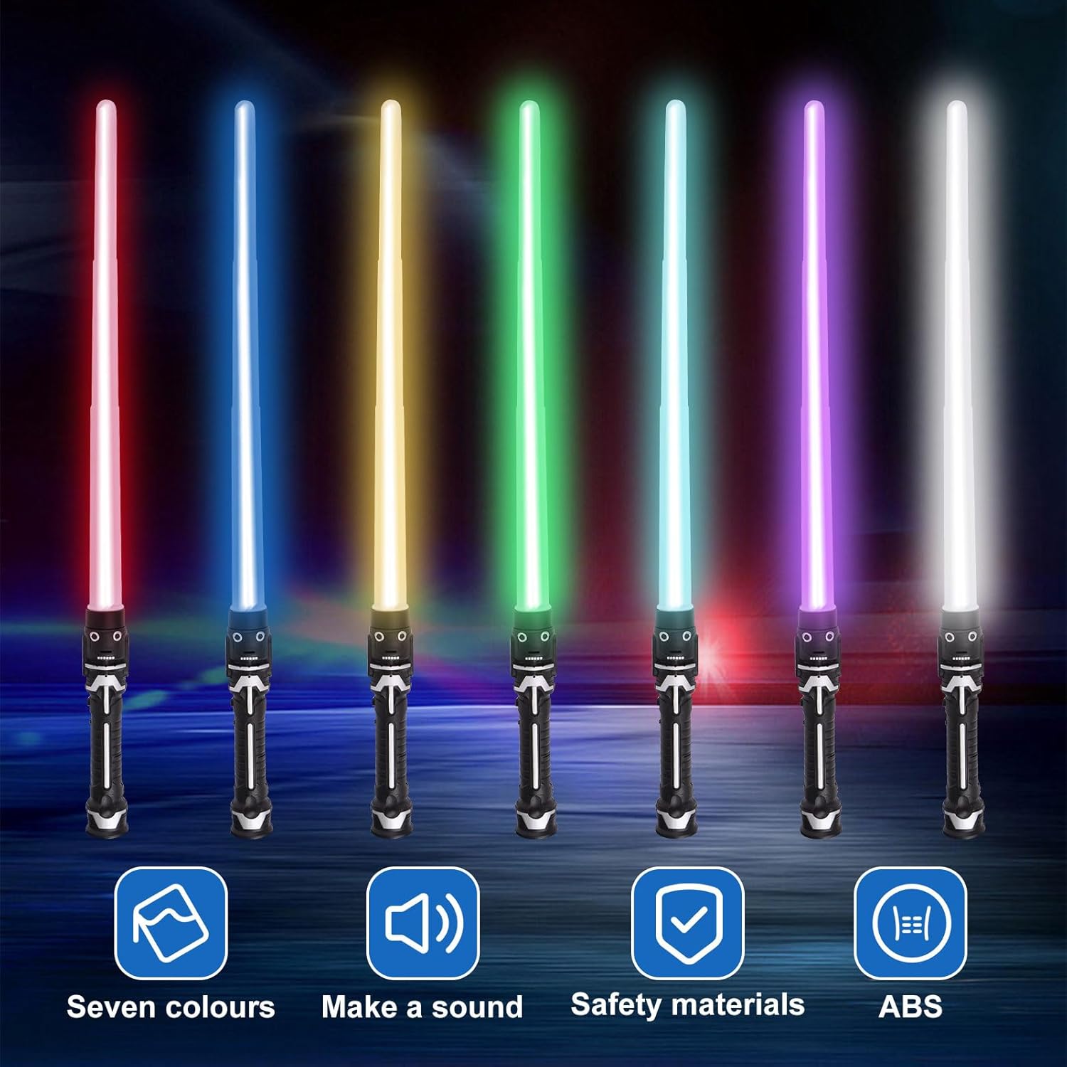 Materiale di qualità: Questa spada laser è realizzata in plastica di alta qualità. È resistente, riutilizzabile, sicuro, inodore, di lunga durata e facile da usare. Spada laser retrattile: Spada laser retrattile (36-70 cm) con impugnatura facile da impugnare e lunghezze variabili per offrire a te e al tuo bambino l'esperienza gioiosa e diversa che desideri, aumenta il divertimento dell'infanzia. Forma realistica della spada laser: Quando si preme il pulsante sulla parte superiore dell'impugnatura, si attivano gli effetti luminosi e sonori. Ad ogni tocco. La sciabola incandescente cambierà colore e anche il suono della battaglia cambierà. Sciabola laser a 7 colori per bambini: Spada Laser Star Wars può emettere 7 tipi di effetti di luce. Si illumina al buio e illumina la scena. Può essere utilizzato in varie scene di intrattenimento. E può simulare il suono delle spade oscillanti nei film. Scenari applicabili: Spada Laser Duello è perfetto per feste, sport all'aria aperta, divertimento in famiglia, campeggio e giochi casuali. Come cosplay, carnevale, Natale, mascherata di Halloween.
