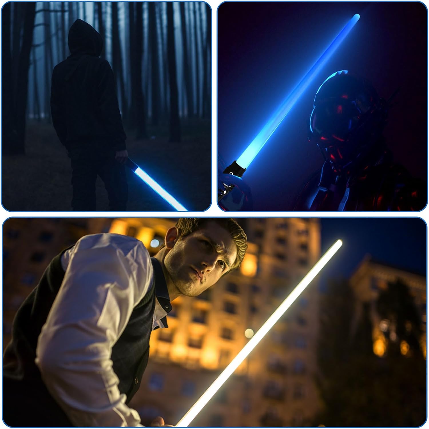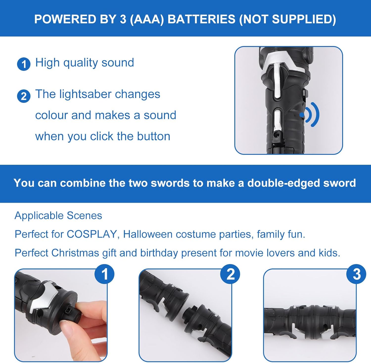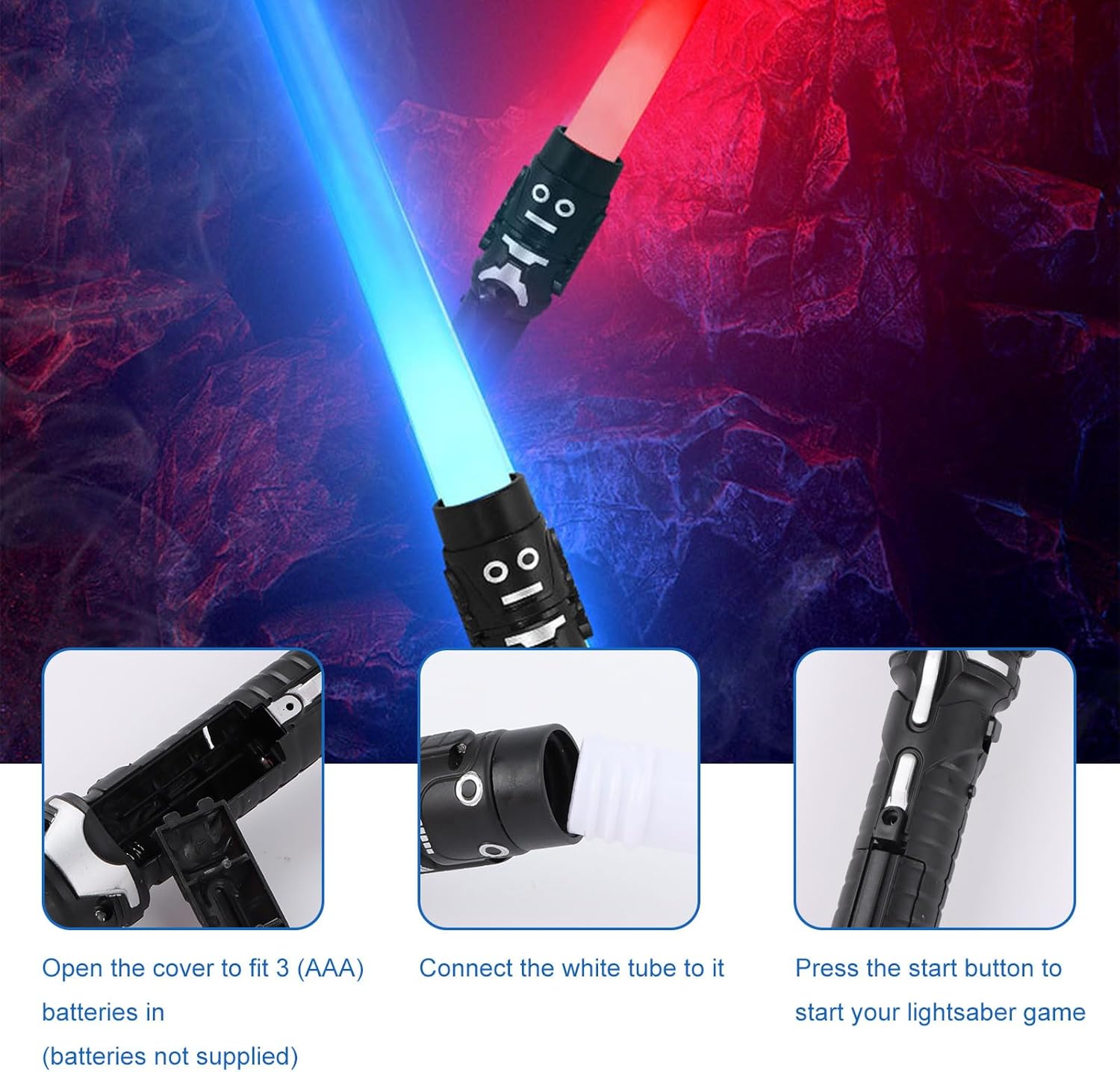 Materiale di qualità: Questa spada laser è realizzata in plastica di alta qualità. È resistente, riutilizzabile, sicuro, inodore, di lunga durata e facile da usare. Spada laser retrattile: Spada laser retrattile (36-70 cm) con impugnatura facile da impugnare e lunghezze variabili per offrire a te e al tuo bambino l'esperienza gioiosa e diversa che desideri, aumenta il divertimento dell'infanzia. Forma realistica della spada laser: Quando si preme il pulsante sulla parte superiore dell'impugnatura, si attivano gli effetti luminosi e sonori. Ad ogni tocco. La sciabola incandescente cambierà colore e anche il suono della battaglia cambierà. Sciabola laser a 7 colori per bambini: Spada Laser Star Wars può emettere 7 tipi di effetti di luce. Si illumina al buio e illumina la scena. Può essere utilizzato in varie scene di intrattenimento. E può simulare il suono delle spade oscillanti nei film. Scenari applicabili: Spada Laser Duello è perfetto per feste, sport all'aria aperta, divertimento in famiglia, campeggio e giochi casuali. Come cosplay, carnevale, Natale, mascherata di Halloween.