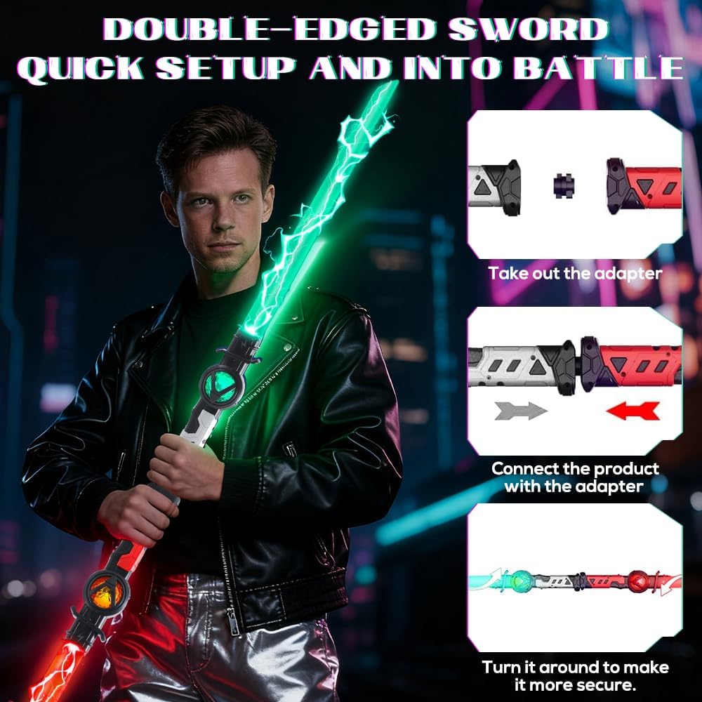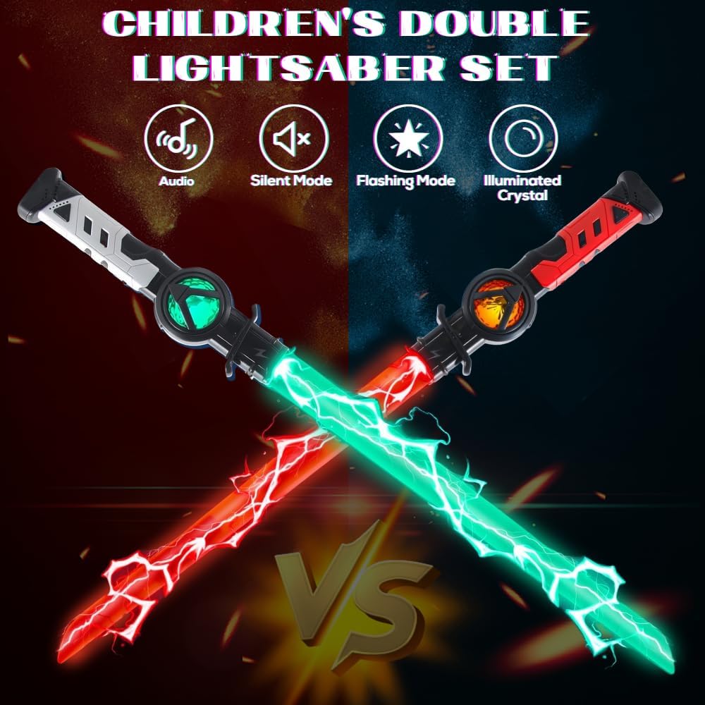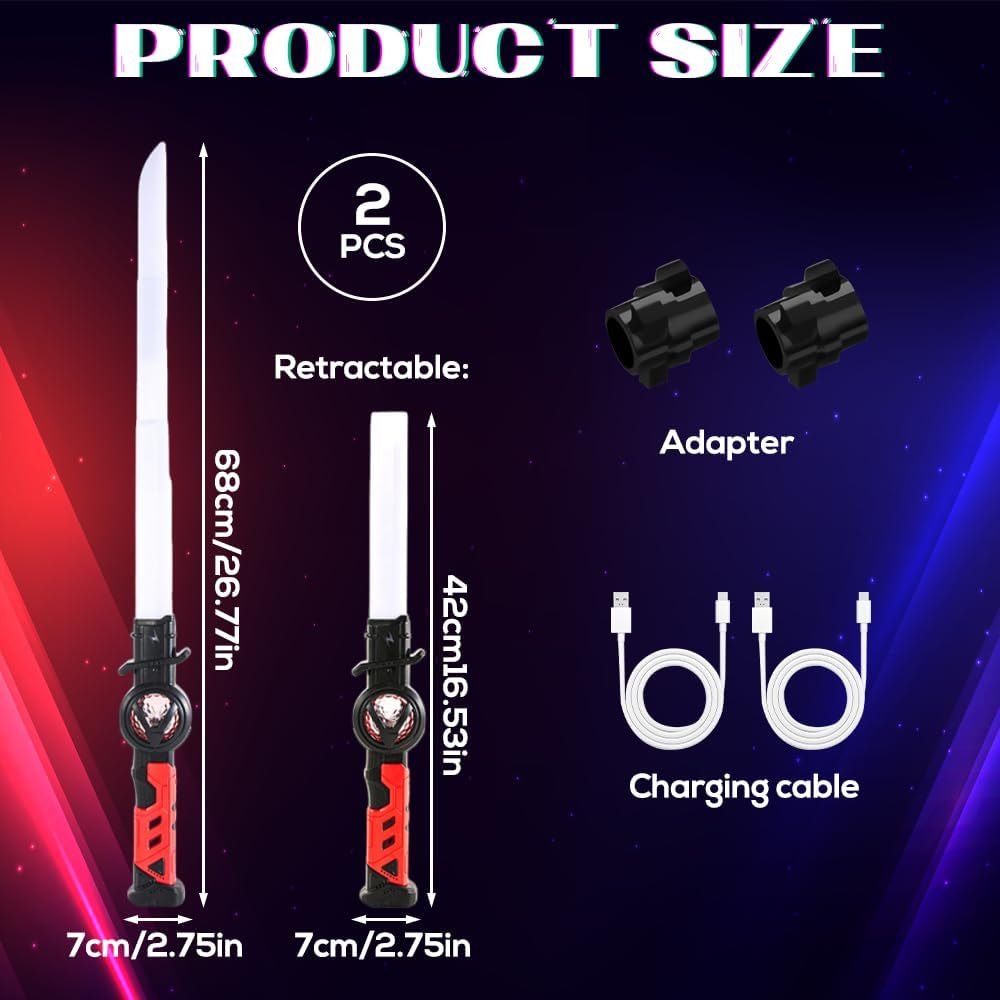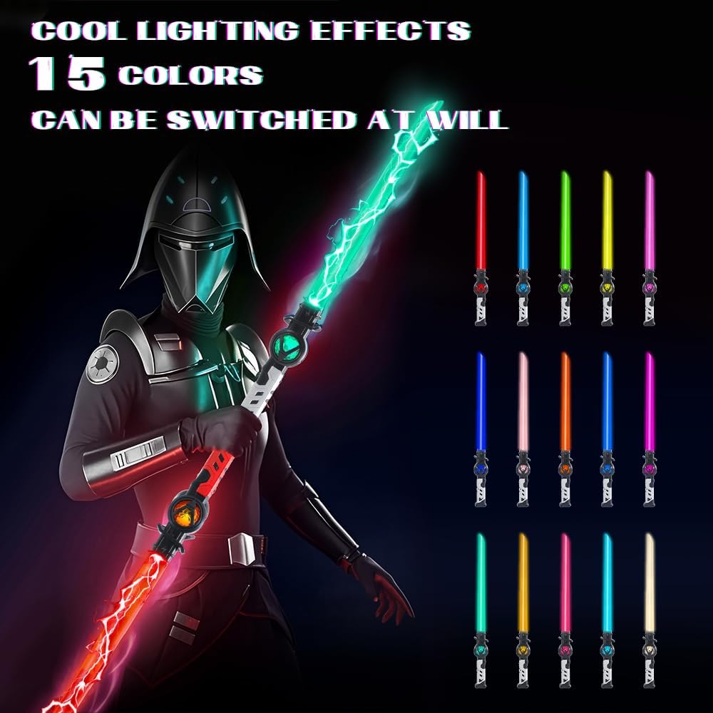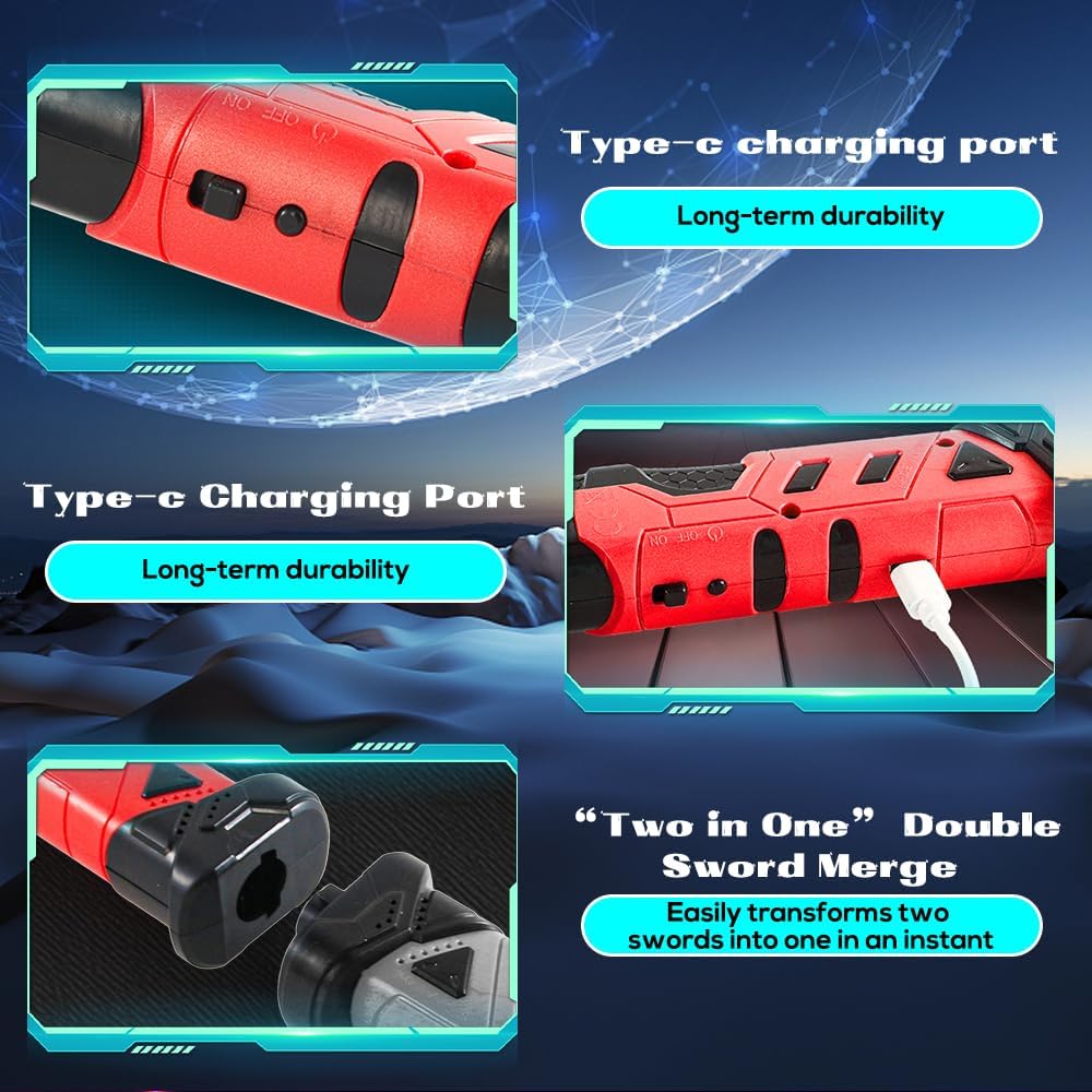 [RGB 15 colori abbagliante Lightshow] Questa spada laser offre 15 colori RGB. Premendo a lungo le luci si attivano e si cambiano i colori facendo clic una volta. Dipinto da suoni di combattimento realistici, sarai trasferito nel mezzo di una guerra galattica, ti senti un guerriero e sperimenterai il brivido di un autentico gioco samurai. La spada laser funziona meglio quando viene spenta di notte in modo che i bambini si immergano completamente nell'azione. [Spada laser ricaricabile] Spada laser per bambini dispone di una batteria integrata ad alte prestazioni, in modo da non aver bisogno di batterie aggiuntive dopo averla ricevuta. Per attivarlo, basta tenere premuto l'interruttore per 3 secondi. Grazie alla porta USB-C per una comoda ricarica, offre ore di gioco con una singola carica, quindi non è necessario ricaricarsi costantemente. Adatto per una varietà di scenari di gioco – diventa il guerriero più cool nella vostra avventura spaziale. [Spada laser retrattile 2 in 1] Questo set contiene due spade laser per bambini con una maniglia portatile e maneggevole. Ogni spada laser è retrattile e misura 42 cm ed estesa 68 cm. Ciò facilita la manipolazione e la conservL'estremità dell'impugnatura della spada laser può essere collegata con un connettore in modo che due spade laser possano essere combinate in una spada laser più lunga. [Sicuro e durevole] Questa spada laser per bambini è realizzata in plastica ispessita di alta qualità con una superficie splendidamente lucidata. Il design ergonomico dell'impugnatura garantisce una presa confortevole, è facile da usare, resistente alla piegatura e riutilizzabile. È anche robusto, anche nel calore della battaglia. Grazie al design leggero, i bambini possono facilmente tenere la spada laser con una mano e vivere scene di battaglia realistiche con i loro amici! Versatile: la nostra spada laser per bambini è adatta non solo per Natale, feste cosplay, feste in guerriero, Halloween e altre feste, ma anche per sport all'aria aperta, divertimento in famiglia e campeggio. È la scelta ideale per l'intrattenimento e un ottimo regalo per bambini e adulti!