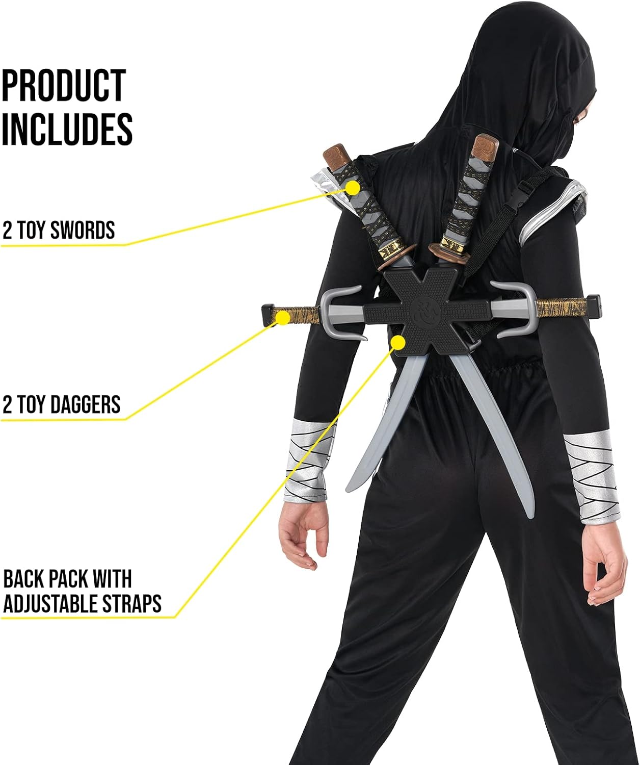 Questo giocattolo ninja include uno zaino con cinghie regolabili, due spade per bambini e due pugnali (arma di plastica/giocattoli di plastica). Queste spade in costume per bambini sono disponibili in taglia unica. Questa pistola giocattolo è resistente e realizzata con materiali di alta qualità. Le spalline sono regolabili. La nostra azienda, fondata nel 2009 da tre amici con la passione per i costumi, ha centinaia di modelli realizzati secondo i più alti standard di qualità. Perfetto per spada giapponese, spada, epe, epeh, spada, spada, spada, coltello costume, spada giocattolo, spada di plastica, spada ninja bambino, ninja giocattolo, arma giapponese, spada cinese, spada bambino, spada manga, spada apparizione, spada snk, spada.