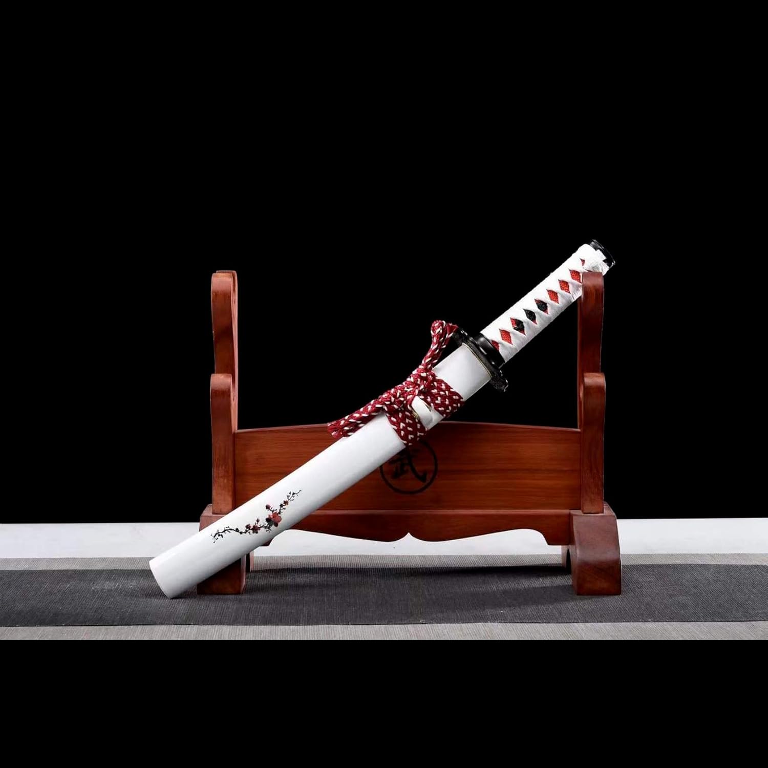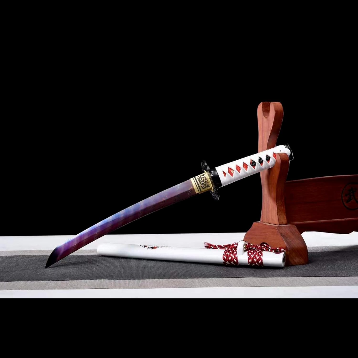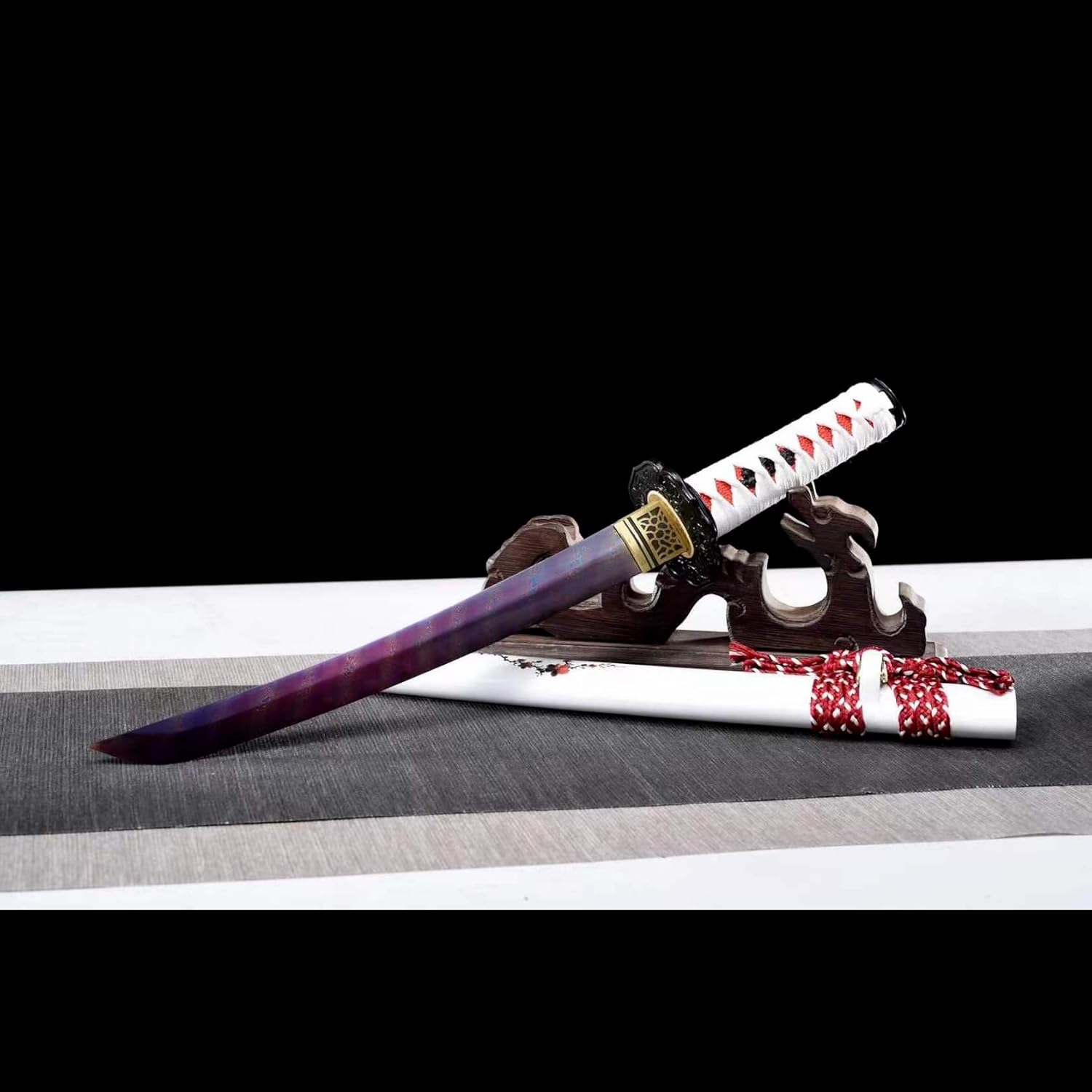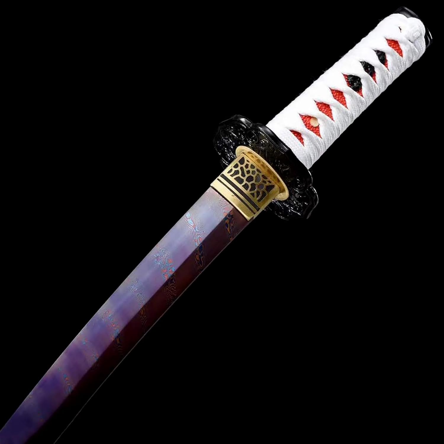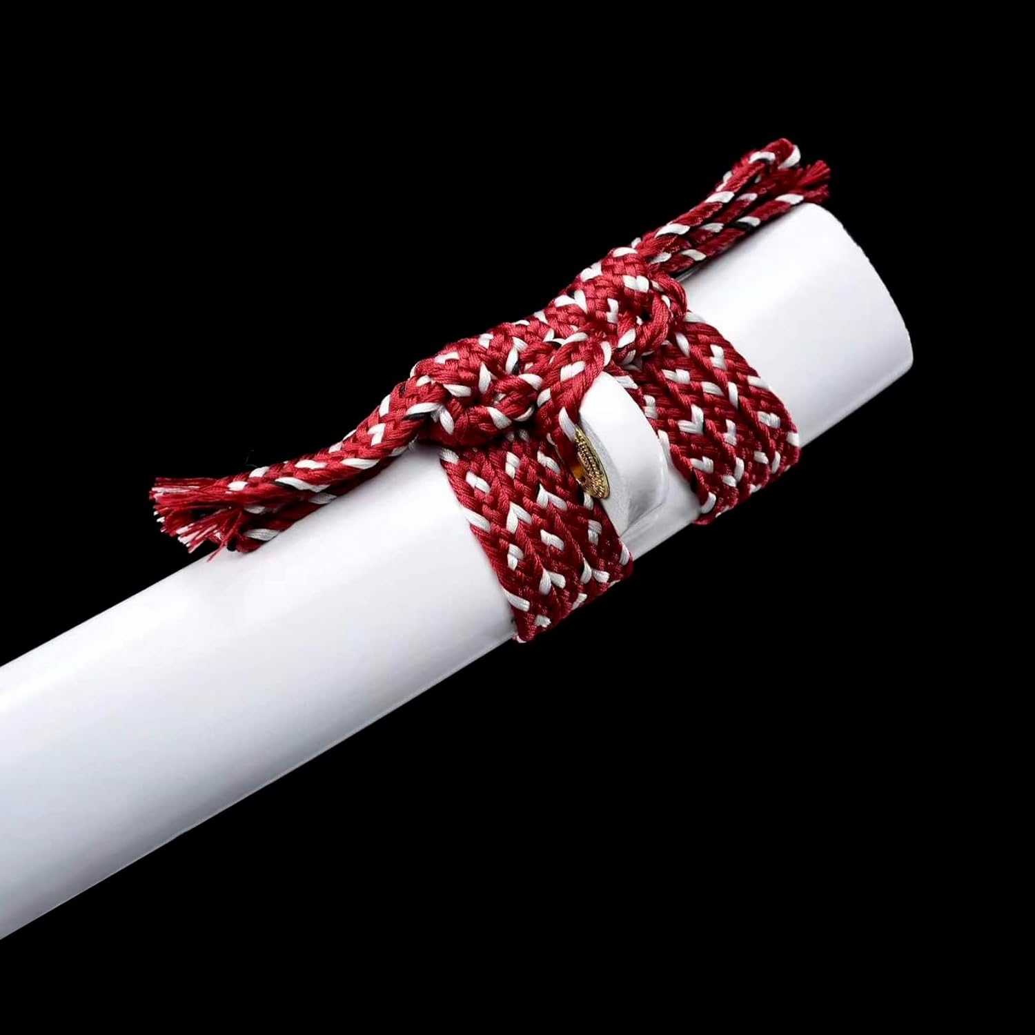 Le proporzioni perfette non solo rendono la katana più bella, ma ne garantiscono anche la praticità e la funzionalità. La lunghezza totale con fodero è di 55 cm, la lunghezza della lama è di 33 cm, la lunghezza del manico è di 17 cm e la larghezza della lama è di 3,2 cm. La lama è realizzata in acciaio modellato di alta qualità ed è prodotta utilizzando il tradizionale processo di forgiatura. La piegatura e la forgiatura ripetute creano modelli belli e unici e garantiscono anche la perfetta combinazione di durezza e tenacità. La katana è dotata di un fodero in legno verniciato a spruzzo all'esterno e dall'aspetto squisito. Non solo protegge la lama da danni esterni, ma conferisce anche alla katana la sua bellezza unica. L'impugnatura è avvolta da una corda morbida che si adatta perfettamente al palmo della mano, è facile da impugnare e ha buone proprietà antiscivolo e resistenti all'usura, offrendoti il massimo comfort durante l'utilizzo.