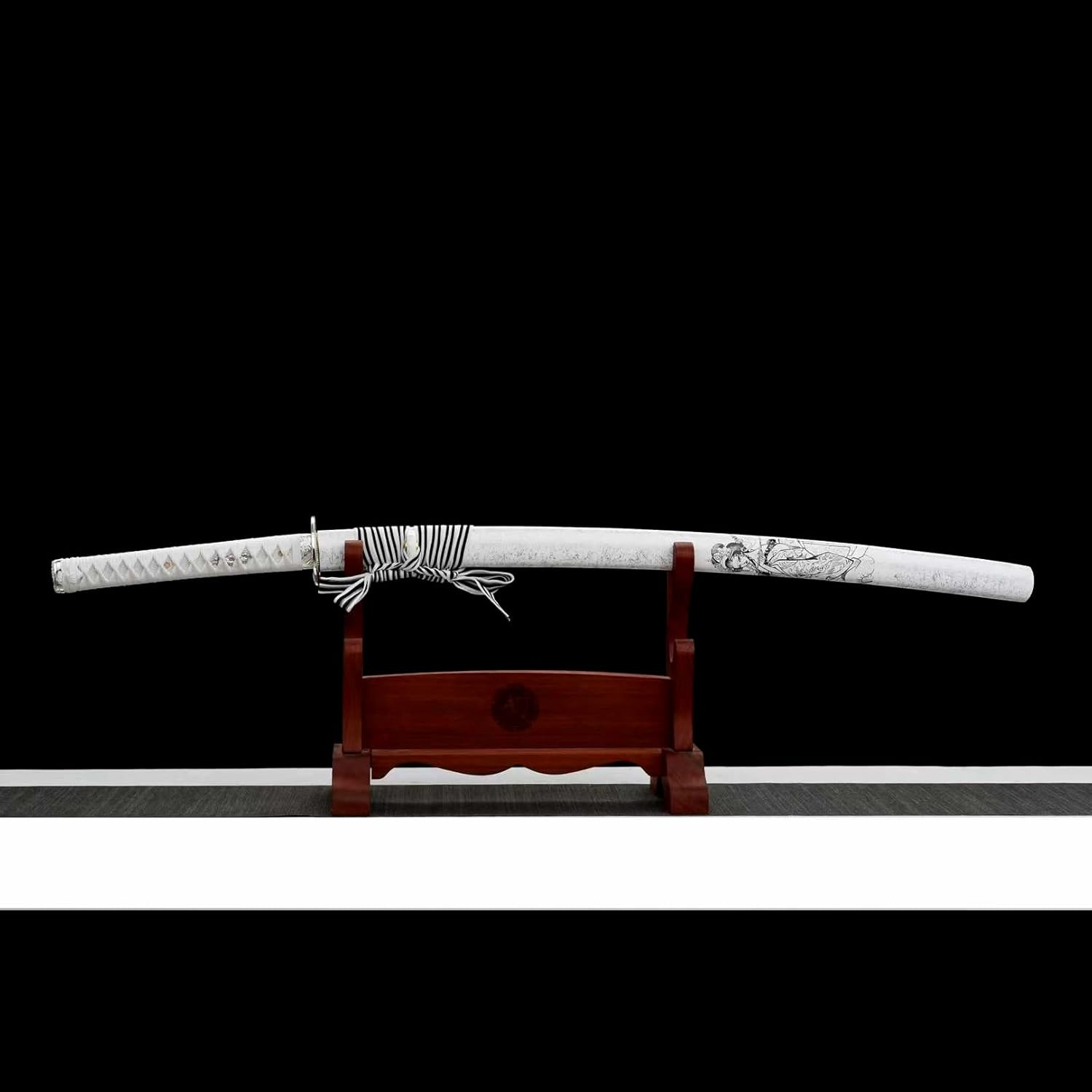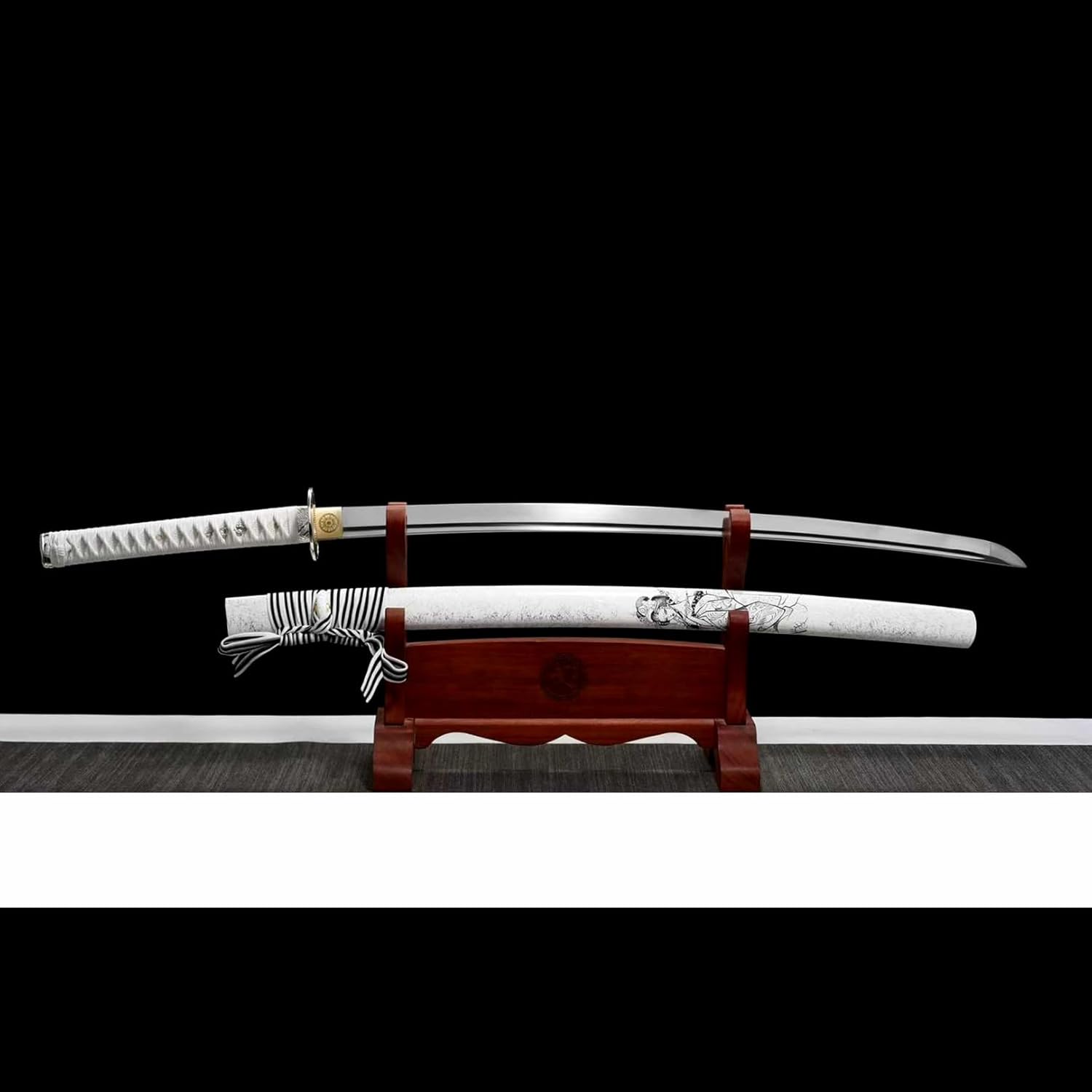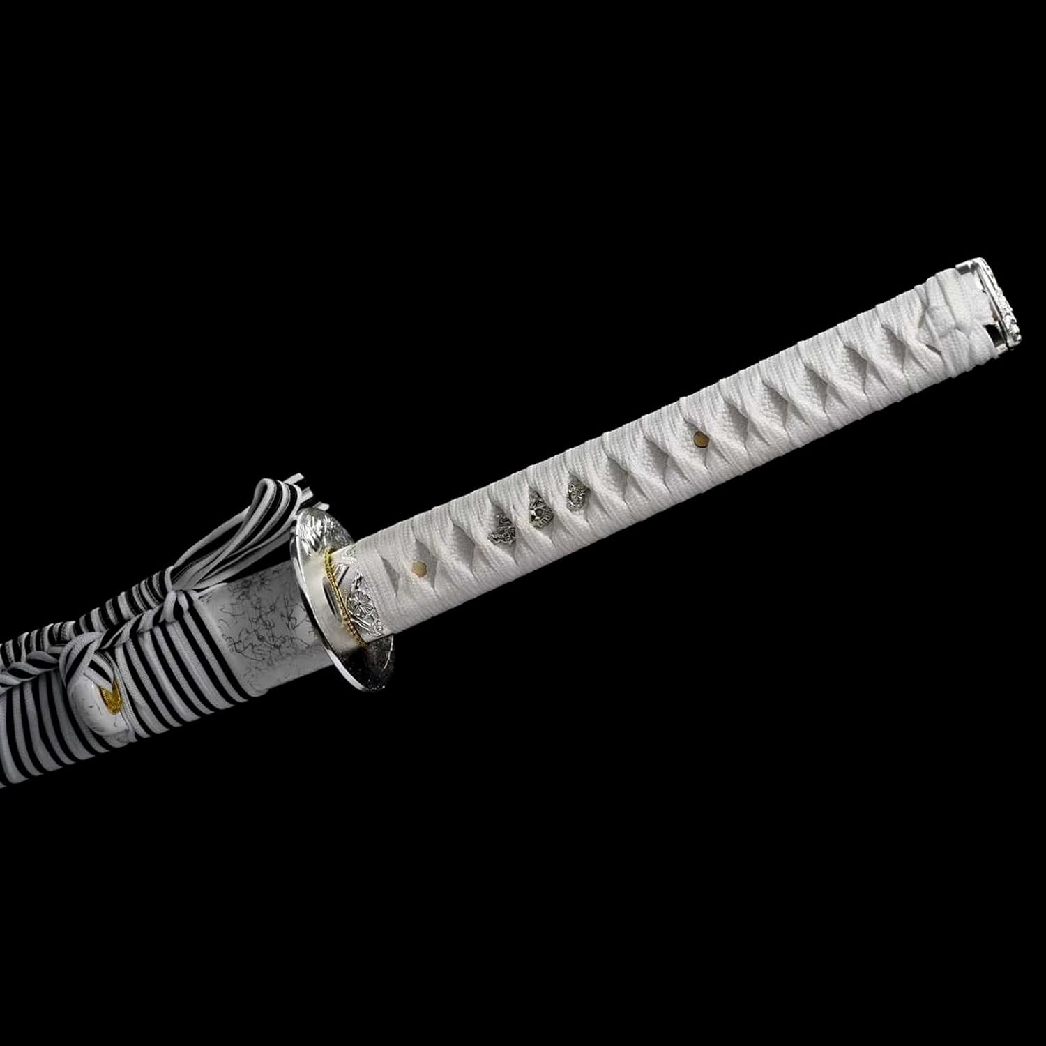 ⚔ La lama è forgiata in acciaio per molle. Durezza fino a 60°. ⚔ Lunghezza totale: 103 cm, lunghezza lama: 71 cm, lunghezza impugnatura: 26 cm, larghezza lama: 3,2 cm. ⚔ La katana viene fornita con un fodero in legno per riporre in sicurezza la lama. ⚔ La maniglia è avvolta da una corda morbida, si adatta al palmo della mano, è facile da impugnare e ha buone proprietà antiscivolo e resistenti all'usura. ⚔ La spada da samurai utilizza la tradizionale tecnologia di forgiatura, è realizzata con cura a mano e presta attenzione ai dettagli, mostrando perfettamente il fascino unico della spada da samurai.