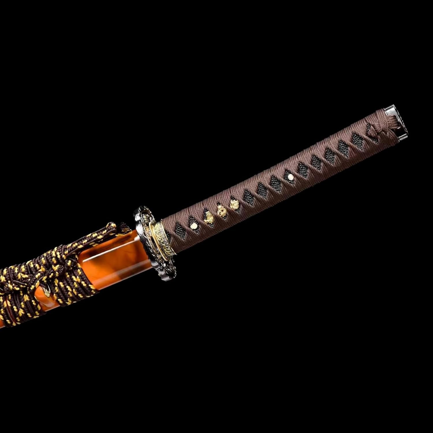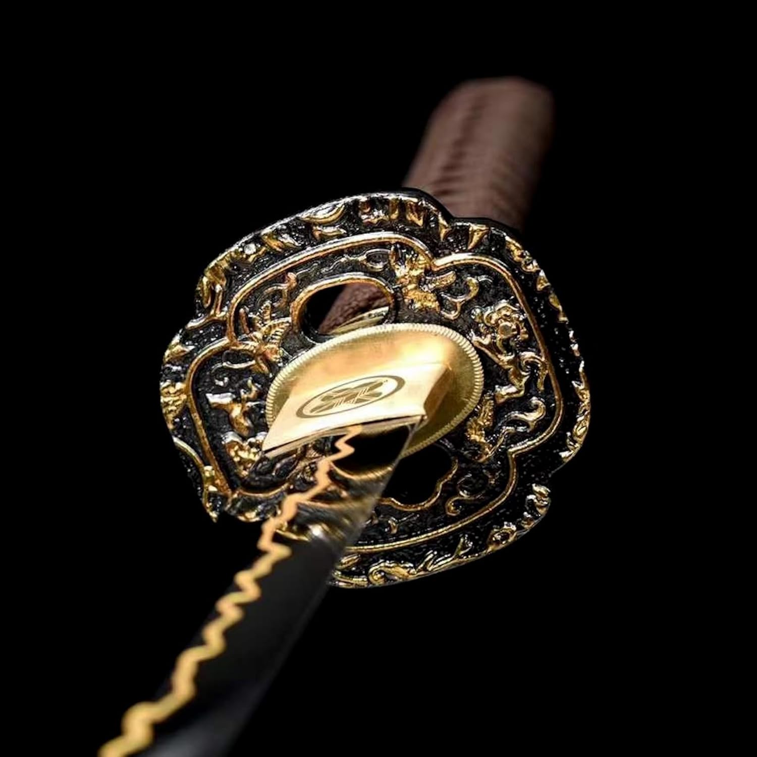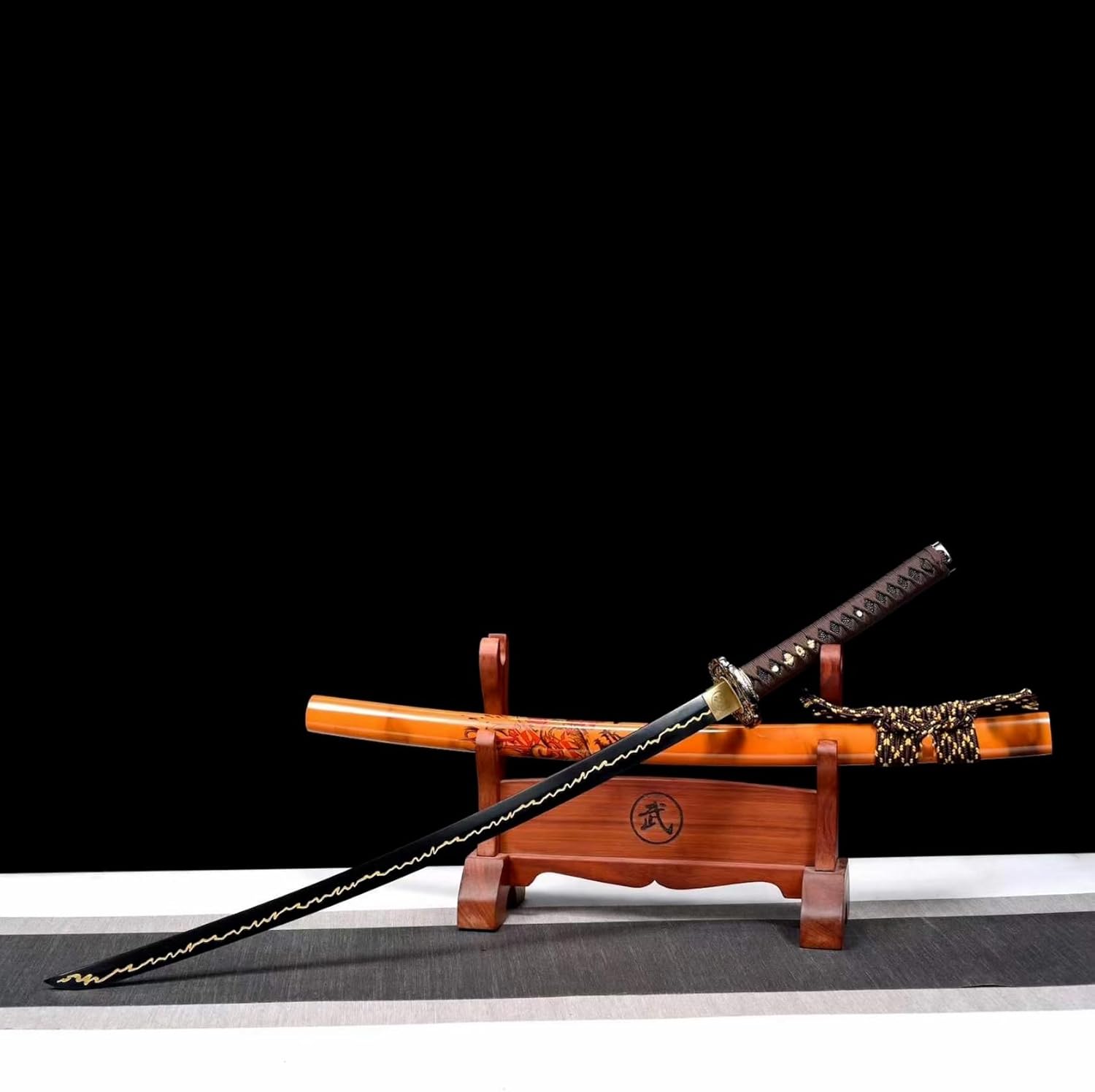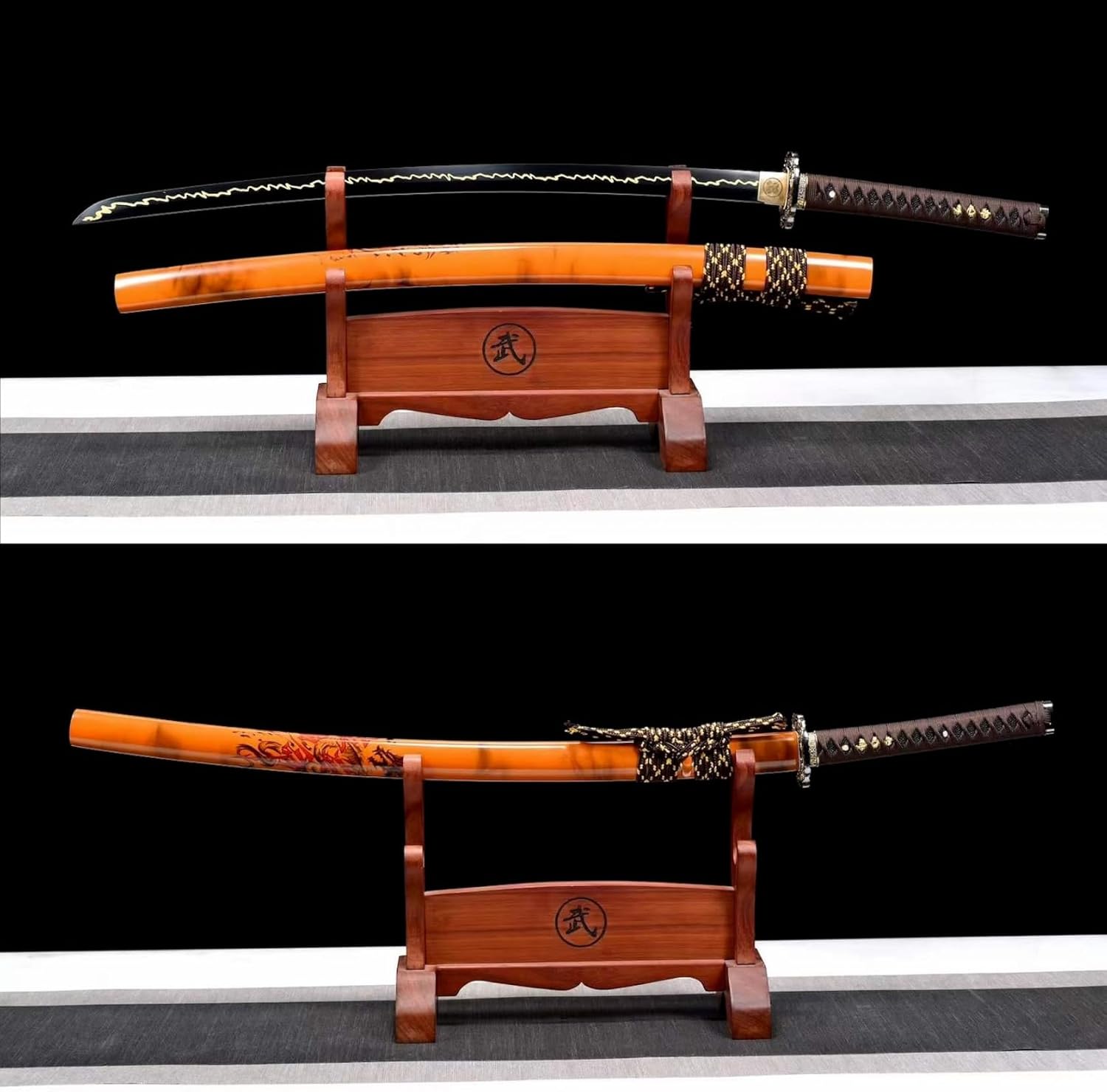 [Materiale]: la lama è realizzata in acciaio al manganese ad alte prestazioni, che è resistente e non si deforma se piegato a 90°. La durezza arriva fino a 60°. Può tagliare il ferro senza danneggiare la lama. Processo di annerimento unico e motivo lampo dorato inciso, così bello! La guaina è realizzata in legno naturale e stampata con motivi squisiti, belli e raffinati. [Artigianato]: ogni katana porta l'essenza dell'artigianato tradizionale. Dalla selezione dei materiali alla forgiatura, dall'affilatura alla tempra, ogni passaggio viene accuratamente lucidato dagli artigiani per garantire che ogni coltello sia un'opera d'arte unica. Questo non è solo un coltello, ma anche un pezzo di storia e patrimonio. [Prestazioni]: la lama di questo coltello è forgiata a mano, esibendo una squisita fattura senza pari nel settore. Il suo bordo duro taglia l'aria senza sforzo, rendendolo perfetto per la pratica della spada o l'allenamento nelle arti marziali. L'impugnatura è progettata ergonomicamente per fornire una presa comoda e sicura per un controllo facile e agevole. [Dimensioni]: lunghezza totale 103 cm, lunghezza lama 71 cm, lunghezza impugnatura 26,5 cm, larghezza lama 3,2 cm, perfetto per regali, giochi di ruolo, collezione, decorazioni per la casa, mostre, allenamenti di Kendo e Iaido, pratica di arti marziali, regali di Natale, Halloween, feste in costume, oggetti di scena, autodifesa, ecc. [Cultura]: la katana non è solo un'arma o un'opera d'arte, ma porta anche una ricca connotazione culturale giapponese. Rappresenta lo spirito di coraggio, lealtà e onore dei guerrieri giapponesi ed è una parte importante della cultura giapponese. Possedere una spada da samurai è come possedere un pezzo di storia e patrimonio.