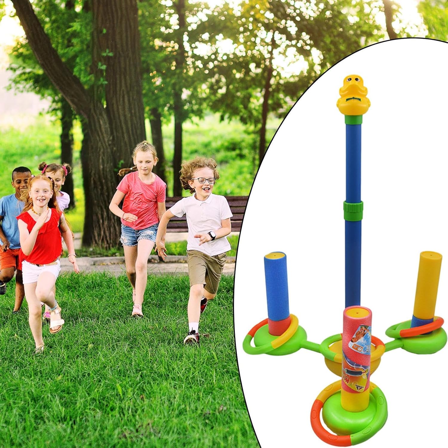 Utilizzo Semplice: Ricarica veloce con bocca larga accessibile, garantisce momenti rinfrescanti durante attività all'aperto come in cortile o spiaggia Divertimento Familiare:3 pistole ad acqua e 4 anelli da lancio promuovono momenti di condivisione. Altezza personalizzabile per infinite combinazioni di gioco in acqua e su terra. Utilizzo versatile:Favorisce lo sviluppo della coordinazione occhio-mano e offre intrattenimento che rafforza il genitori-figli attraverso giochi interattivi con gli spruzzatori d'acqua, creando momenti di gioia per tutta la famiglia in giardino o in spiaggia. Divertimento Incluso: Unisce gioco e funzionalità senza sforzo, favorendo il libero all'aperto per tutte le età e incoraggiando interazioni familiari significative durante i momenti ludici Controllo Agevole: Schizzacqua leggero con manico ergonomico che assicura maneggevolezza ottimale, consentendo un utilizzo continuativo con minimo sforzo e massima comodità per bambini e adulti