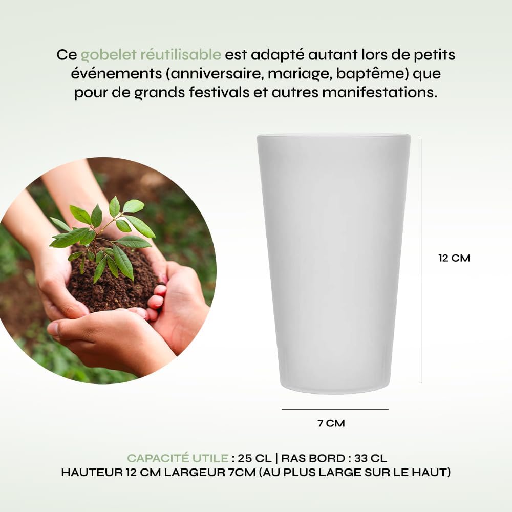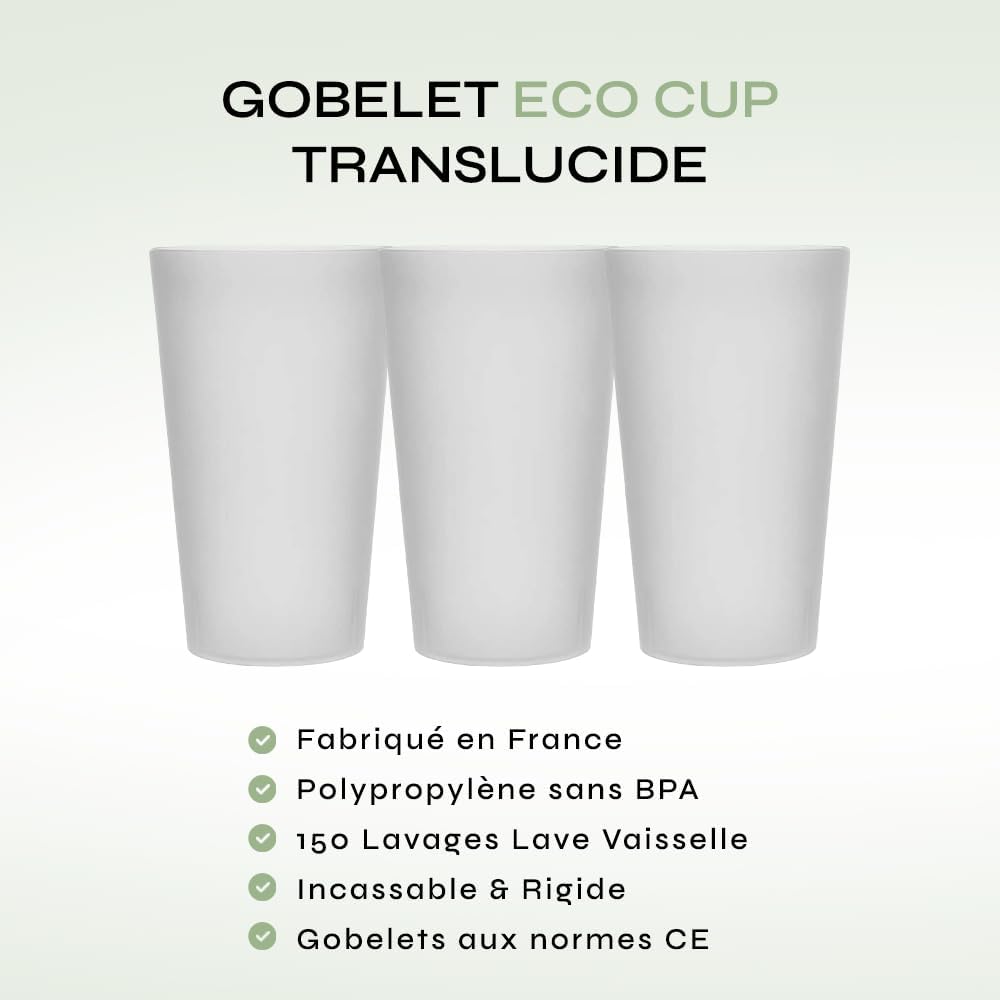 Il bicchiere Eco Cup 30CL è il nostro "BEST SELLER". Con una capacità utile di 25 cl e una capacità completa di 33 cl (rotondo), questo bicchiere riutilizzabile è molto apprezzato per una vasta gamma di eventi, dai piccoli raduni come compleanni, matrimoni e battesimi, fino a grandi festival ed eventi. Questo bicchiere è venduto neutro, il che significa che puoi personalizzarlo in base alle tue preferenze. È versatile e adatto per servire soda, birra, caffè, tè, succo di frutta o anche vino. Si adatta a varie bevande, rispondendo così a una moltitudine di esigenze durante i tuoi eventi. Il bicchiere Eco Cup 30CL è di colore traslucido (glassato) che gli conferisce un aspetto estetico e moderno. La sua trasparenza permette anche di visualizzare facilmente il contenuto del bicchiere. Questo bicchiere è completamente riciclabile e lo rende rispettoso dell'ambiente. Dopo l'uso, puoi metterlo nel vassoio di riciclaggio appropriato per contribuire alla conservazione del pianeta. Scegliendo il bicchiere Eco Cup 30CL, scegli una soluzione duratura e pratica. La sua riutilizzabilità aiuta a ridurre la quantità di rifiuti generati dalle tazze tradizionali, offrendo al contempo un'opzione di qualità per servire le tue bevande in vari eventi. Il bicchiere Eco Cup 30CL è un bestseller grazie alla sua versatilità, capacità adeguata e riutilizzabilità. Realizzato in Francia con polipropilene senza BPA, questo bicchiere è ecologico e può essere riciclato alla fine della sua durata. Goditi le tue bevande in un bicchiere di qualità, ideale per tutti i tipi di eventi. *Non consegnato nella scatola in foto ma in un cartone semplice