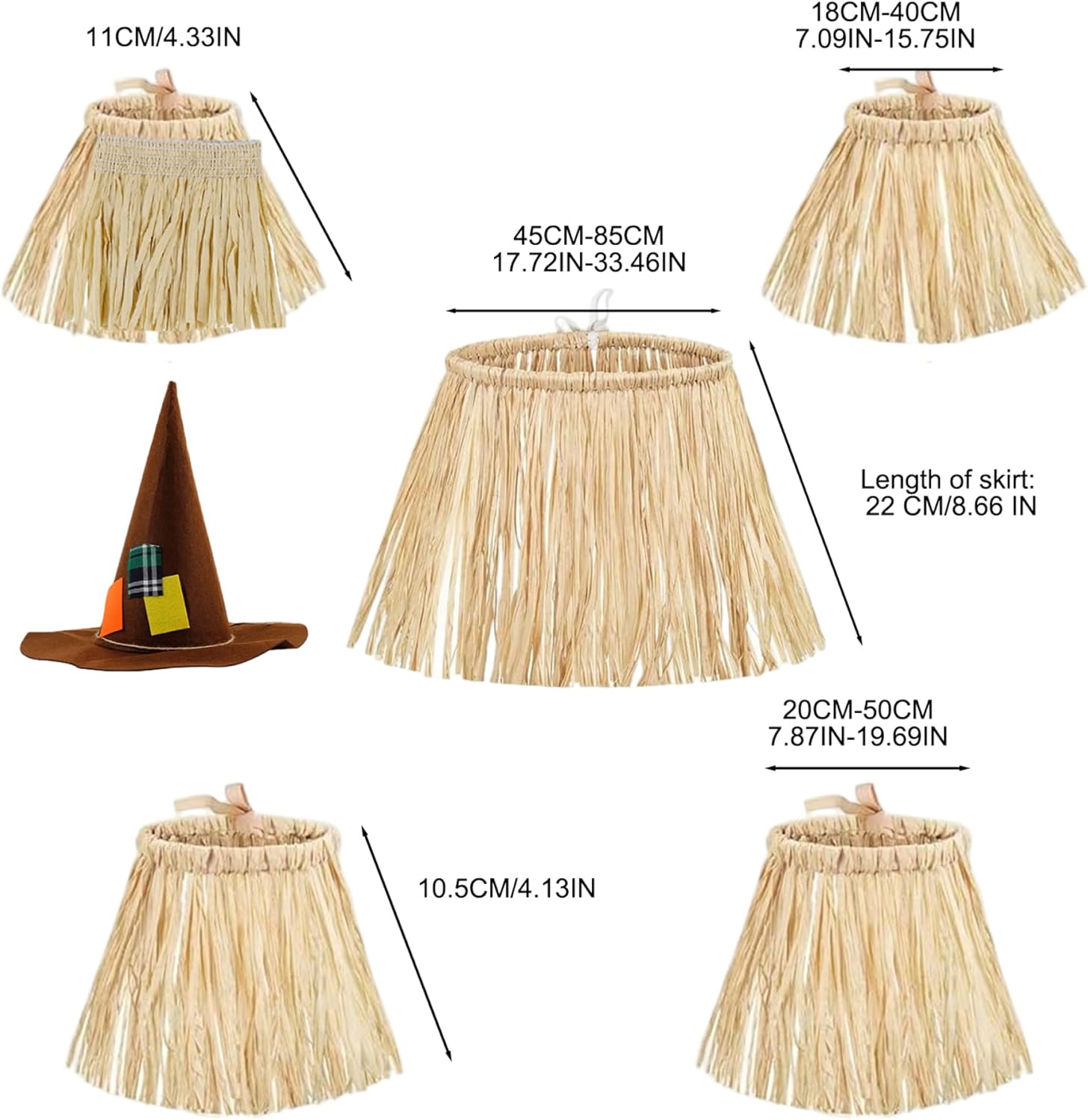 Descrizione prodotto Descrizione: Costume da spaventapasseri da 5 pezzi con cappello da mago, gonna in erba hawaiana in carta Lafite per accessori per feste Decorazione di Halloween, un'esperienza di costume unica e completa che combina spaventapasseri e temi tropicali in un unico set, incluso un elegante cappello da mago e 5 gonne in erba hawaiane realizzate in carta Lafite stabile ma leggera, perfetta per le feste di Halloween,..luaus e riunioni festive, progettati per il comfort e la adattabilità per adulti e adolescenti, servendo anche come decorazioni divertenti per illuminare il tuo spazio eventi con un tocco vibrante e tematico.. Caratteristiche:.. Costume da spaventapasseri.. -Colore: Kahki.. -Materiale: carta Lafite.. Nota: Misurazione manuale, prega di consentire lievi errori sulla dimensione.. I colori potrebbero presentare una leggera differenza a causa dei diversi schermi.. Pacchetto compreso 1 set costume da spaventapasseri 1 x cappello da mago Avviso di sicurezza Avvertenza: Questo prodotto contiene piccole parti che possono rappresentare un rischio di soffocamento per bambini sotto i 3 anni. Usare sotto la supervisione di un adulto, tenere lontano dal fuoco, evitare l’ingestione e garantire un uso sicuro.