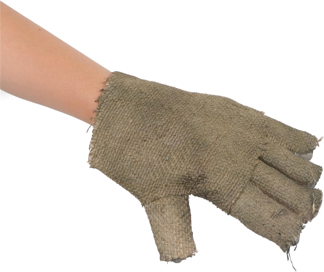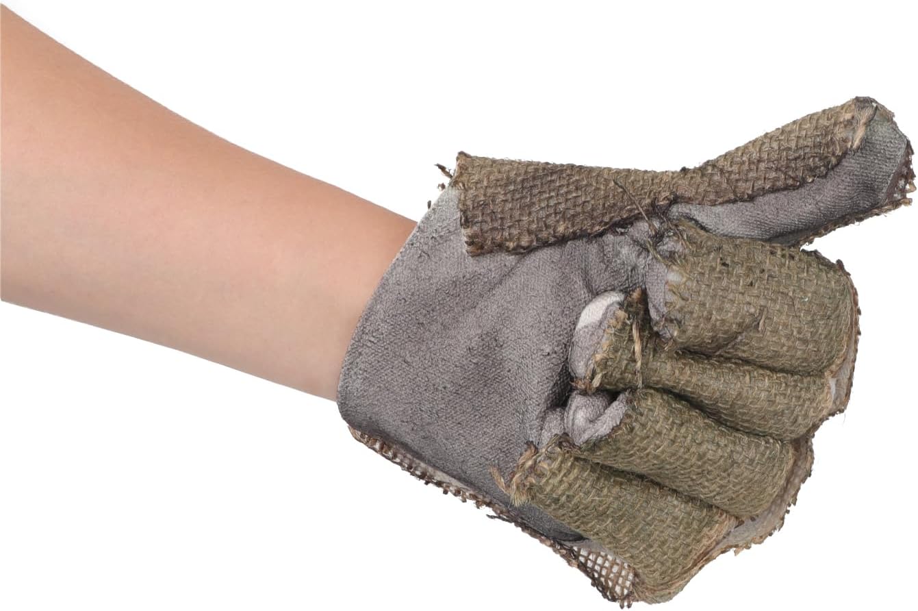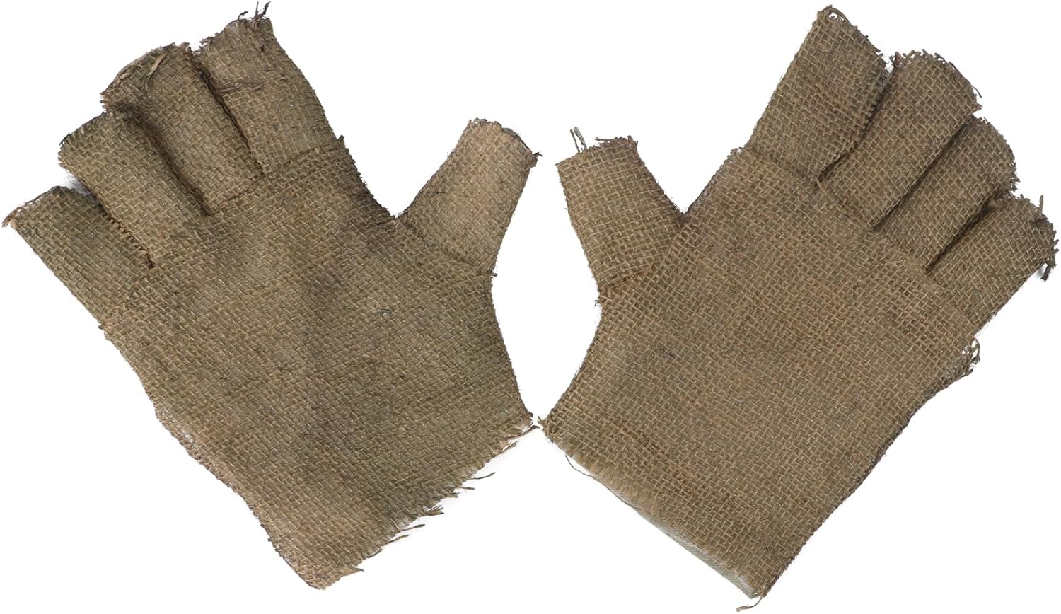The gloves are thick. They're covered with burlap. They're have a great worn and authentic look that really impressed my15yo. (He's rarely impressed, being 15) i was pleased with the overall look and value.