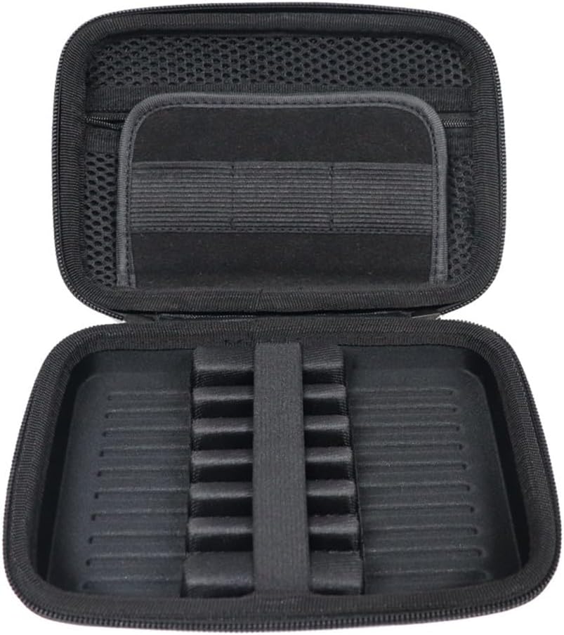 Protettivo: realizzato in materiale EVA duro e dotato di una base di supporto interna, questo organizer per freccette offre una doppia protezione contro i danni, lunga durata. Conservazione: progettata per ospitare freccette con punta in acciaio, punta morbida e punte in plastica, nonché freccette professionali, questa borsa offre ampio spazio per freccette, alberi, alette, punte e altri accessori. Sicuro e compatto: la base in EVA e la fascia elastica alta mantengono le freccette stabili e sicure durante il trasporto. Le dimensioni compatte e il manico robusto lo rendono facile da trasportare ovunque. Comoda accessibilità: dotata di una cinghia da polso per la portabilità e divisori con tasche in rete, questa custodia per freccette consente un accesso rapido e facile alle freccette e agli accessori. Specifiche tecniche: nome del prodotto: custodia per freccette; materiale: EVA; dimensioni esterne: 19 x 13 x 5 cm; dimensioni interne: 17 x 11 x 4,2 cm; colore: nero; peso: circa 220 g.