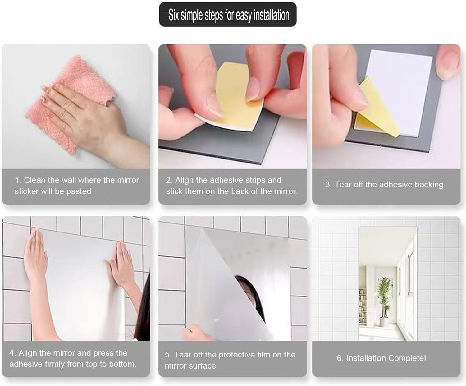 Eleva il tuo spazio: questo specchio del corpo completo acrilico di qualità è progettato per sfoggiare tutto il tuo corpo, migliorando al contempo il fascino visivo del tuo spazio.Il design rettangolare di questo specchio in piedi non trattendibile non solo lo rende uno specchio del corpo funzionale, ma anche una straordinaria opera d'arte decorativa che aggiunge fascino a qualsiasi stanza. Clear e riflettente: la superficie acrilica di alta qualità garantisce un riflesso chiaro e simile a quello, permettendoti di ammirare senza sforzo tutto il tuo aspetto.Con la sua chiarezza e funzionalità impeccabili, questo specchio è un'aggiunta essenziale alla tua routine quotidiana. Facile da installare: questo specchio a lunghezza intera acrilica è dotato di forti adesivi a doppia faccia a doppia faccia per l'installazione senza problemi.Basta pulire il muro per assicurarti che sia piatto, asciutto e privo di polvere o polvere prima di applicare.Questa superficie facile da aderire rende la creazione di specchio in piedi non trattenuto rapidamente e semplice, fornendo una presa sicura e duratura in qualsiasi stanza. Varietà di posizionamento: il nostro specchio versatile offre opzioni di posizionamento flessibili.Montarlo verticalmente su un muro nell'ingresso o orizzontalmente dietro un divano per un tocco elegante.Gli adesivi adesivi inclusi lo rendono ideale per varie stanze, dagli armadi alle camere da letto.Goditi la sua versatilità e praticità in qualsiasi spazio. Uso versatile: questo specchio serve non solo come specchio di trucco funzionale ma anche come pezzo decorativo, migliorando il fascino visivo e la spaziosità di qualsiasi stanza.È adatto per camere da letto, soggiorno, bagni, pareti della galleria, ingressi, saloni e persino negozi.