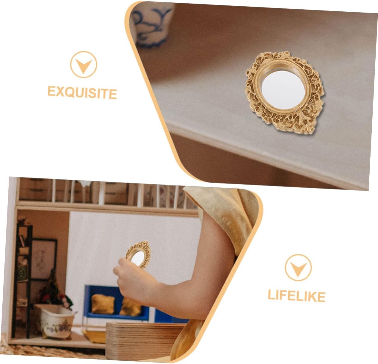 Piccoli specchi: lavorazione dettagliata, colori squisiti, molto decorativi per offrire il tuo umore migliore fingendo di giocare, specchietti giocattolo Mini specchi simulati: il materiale plastico è sicuro e leggero, resistente all'usura e pratico per un uso duraturo, miniatura della casa delle bambole Mobili per casa delle bambole: la decorazione del mini specchio squisitamente dettagliata è , adatta per la decorazione della scena della stanza della casa delle bambole, specchi Modelli di specchi vintage: realizzati in materiale plastico, leggero, di pregevole fattura e di buona fattura, miniature di case delle bambole Mini accessori per la casa: questo vivace modello di mini mobili è un ottimo collezionista di mini oggetti e ha un'ampia applicazione, mini specchi per la casa delle bambole