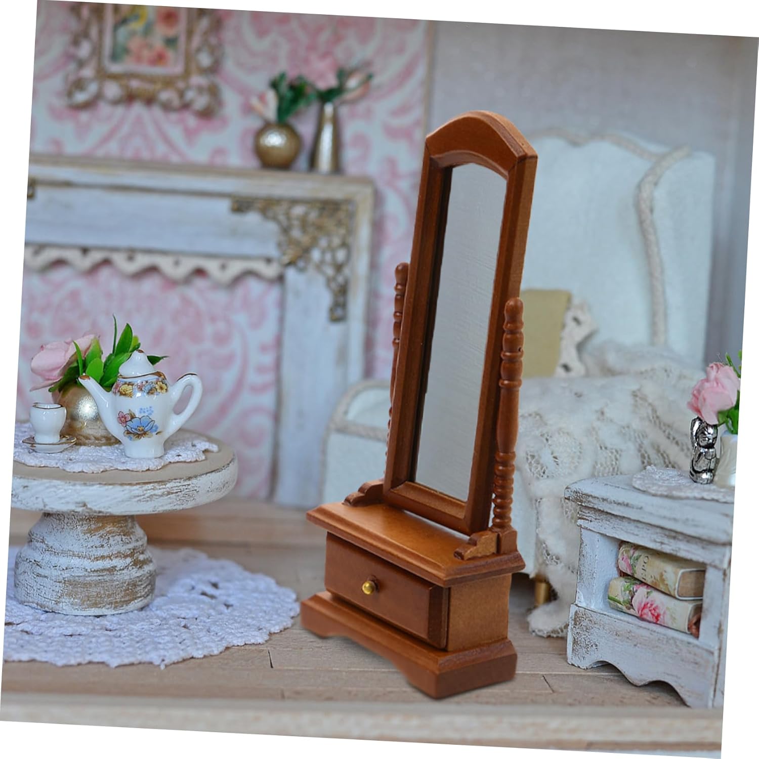 Mobili per mini bambole: puoi anche inviare mobili in miniatura alla tua famiglia e ai tuoi amici come festival e compleanni, mobili in miniatura Specchio in miniatura: la lavorazione delicata e la forma speciale lo rendono molto elegante, può essere un'ottima decorazione giocattolo, decorazione della stanza dei giocattoli Mini decorazioni per la casa: affidabile, materiale in legno, pregevole fattura, bell'aspetto dell'atmosfera, decorazione della casa delle bambole Decorazioni con specchi per case delle bambole: questo è un adorabile oggetto in miniatura per il tuo bambino come compleanno o festival, buon effetto decorativo, decorazione per mini toeletta Mini ornamenti per specchi: il design unico lo rende più adorabile e attraente, è un fantastico mini specchio per le ragazze per decorare la loro mini casa, mini specchio per decorare la casa