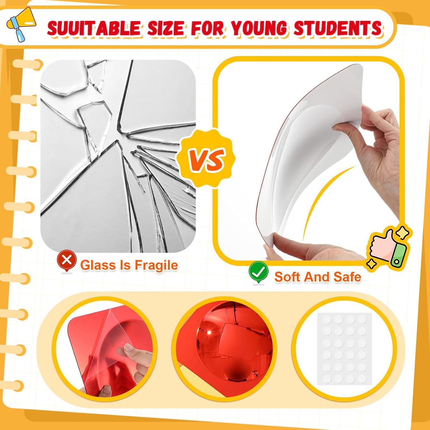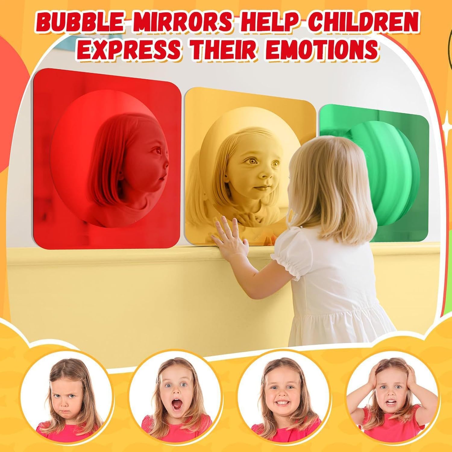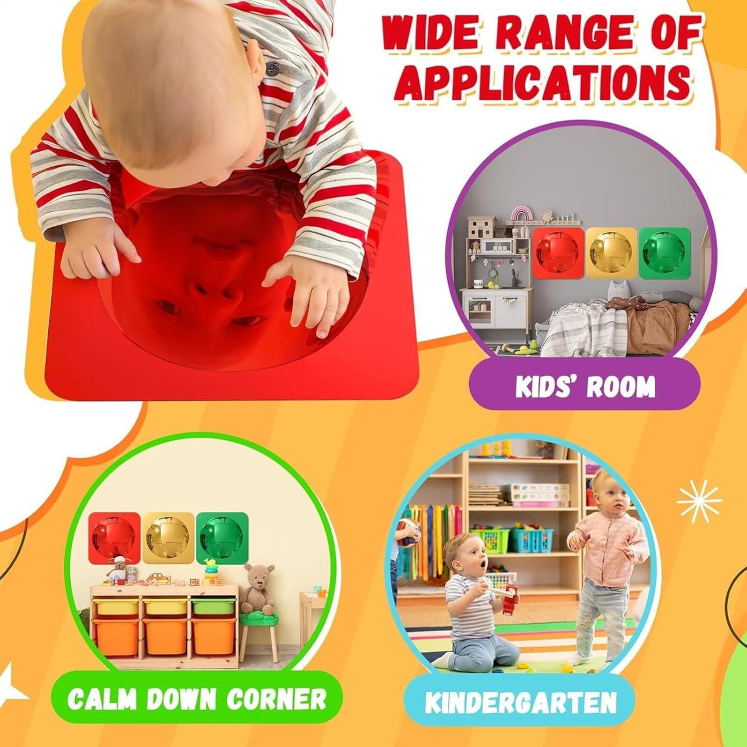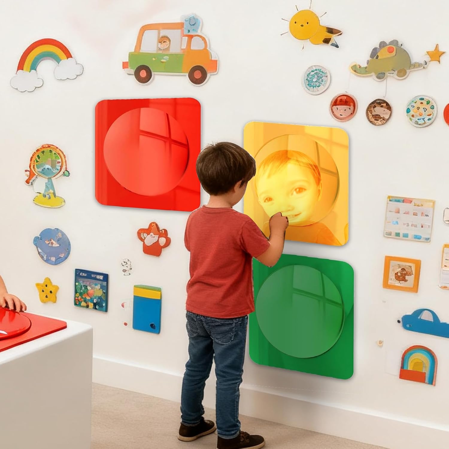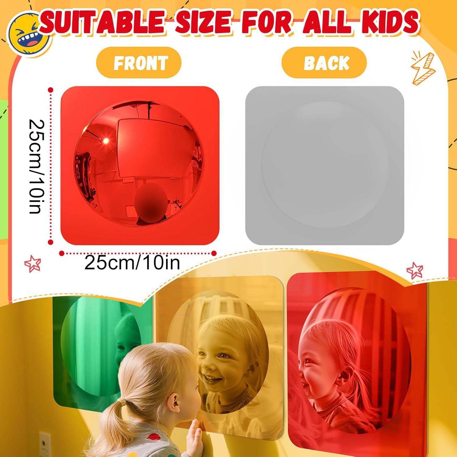 Compagno di Gioco Sviluppativo: Lo Specchio Sensoriale combina l'esplorazione sensoriale divertente con i riflessi distorti affascinanti, creando un'esperienza coinvolgente che supporta la crescita cognitiva e arricchisce il di gioco. I bambini possono immergersi in attività ludiche che stimolano i sensi e favoriscono lo sviluppo mentale attraverso riflessi unici, promuovendo momenti di apprendimento naturale e divertimento. Ideale per arricchire le routine di gioco con stimoli sensoriali Sviluppo visivo e tattile: Questo specchio sensoriale per bambini migliora lo sviluppo visivo e tattile attraverso le sue superfici riflettenti. Crea un ambiente coinvolgente negli asili e nelle scuole 'infanzia, trasformando le aree in zone di apprendimento stimolanti, perfette per attività sensoriali. Specchio Coinvolgente: Supporta lo sviluppo precoce incoraggiando il sollevamento a testa e il rafforzamento dei muscoli del collo, elementi chiave per potenziare le abilità visivo-motorie durante il tummy time. Garantisce ore di divertimento sensoriale mentre il bambino esplora riflessi e movimenti in un ambiente di gioco sicuro. Brillante e Affidabile: Prodotto con acrilico infrangibile, lo specchio da parete sensoriale offre una superficie brillante e stimolo visivo eccezionale. Garantisce solidità e sicurezza a lungo termine, risultando un punto focale luminoso e affidabile in ambienti educativi, strutture sanitarie o spazi familiari, senza necessitare di manutenzione frequente. Promuove lo Sviluppo Cognitivo: Il Specchio Sensoriale per Bambini potenzia il ragionamento spaziale e la consapevolezza di sé, favorendo la crescita cognitiva attraverso effetti ottici avvincenti che coinvolgono il bambino in un apprendimento guidato dalla curiosità durante il gioco esplorativo, stimolando la creatività e l'esplorazione in modo naturale e coinvolgente per lo sviluppo infantile.