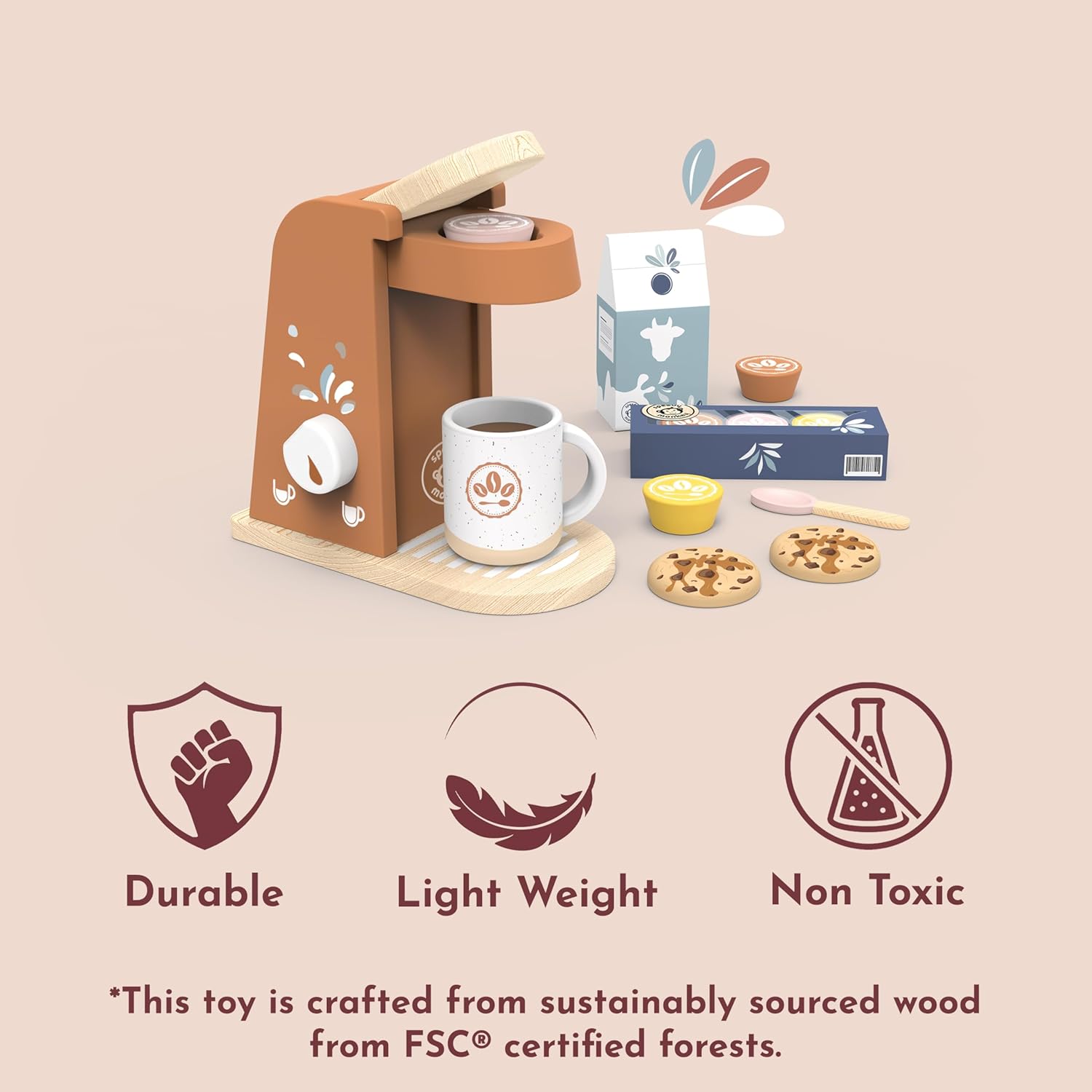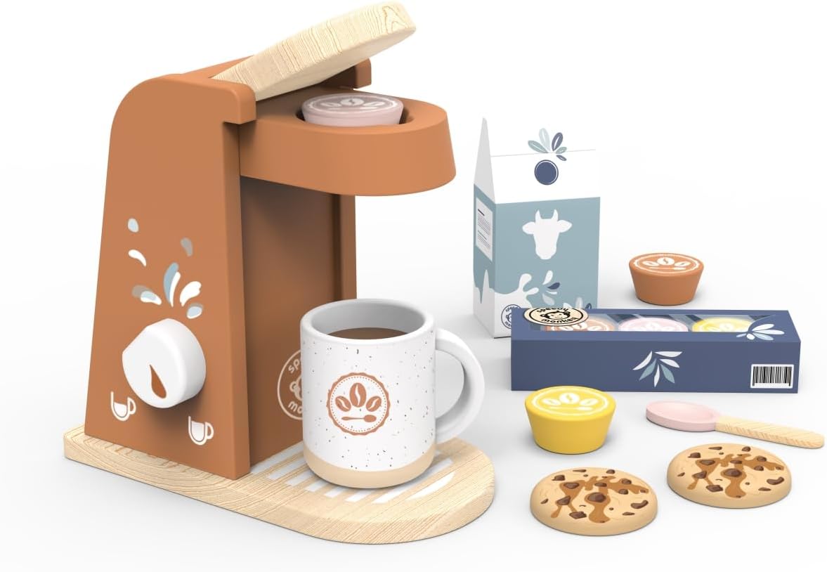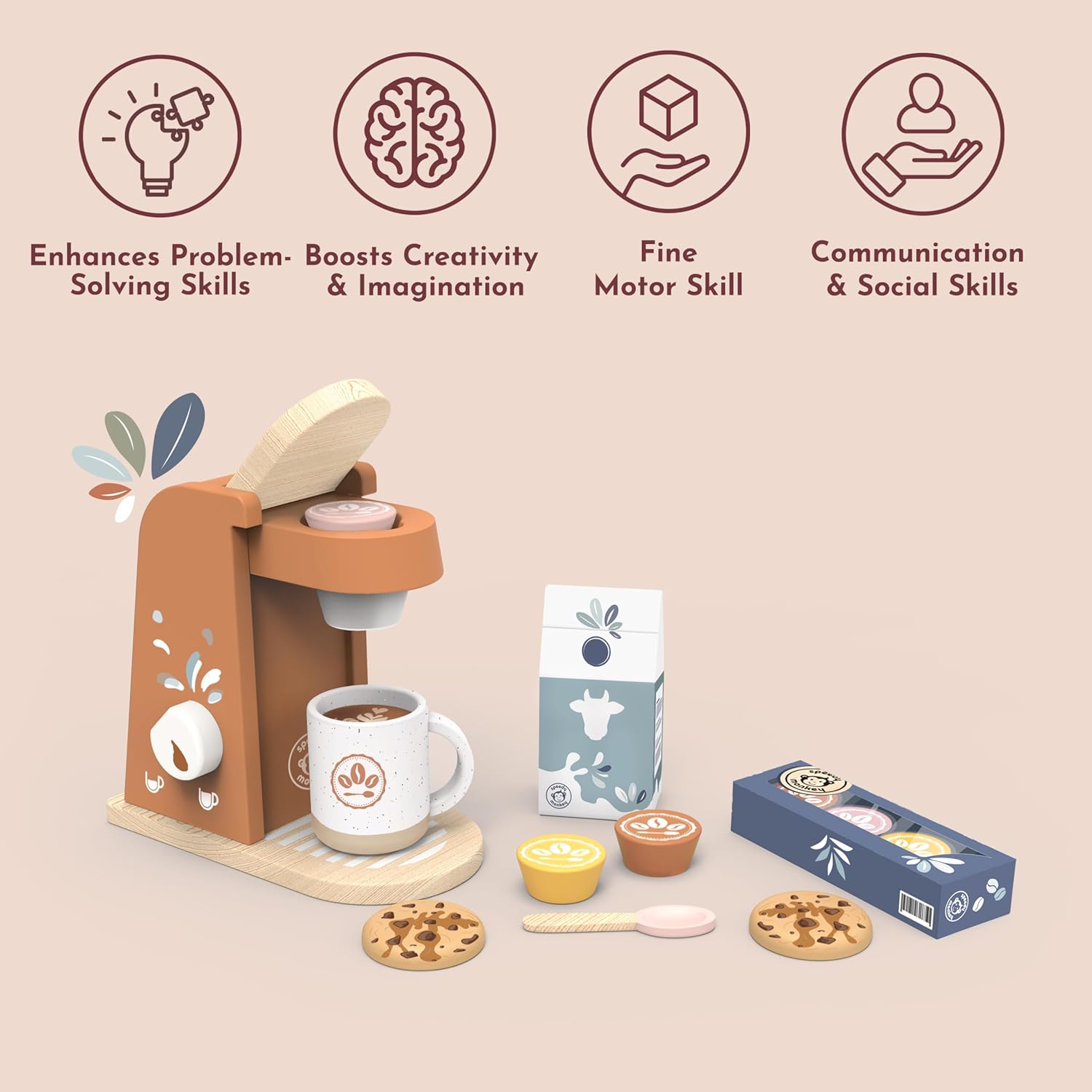 Bellissimo design: questa macchina da caffè giocattolo affascina con il suo bel design, perfetta per i giocattoli dei bambini dai 3 anni. Si abbina a qualsiasi cucina per bambini, stimolando il gioco fantasioso con giocattoli per ragazzi e ragazze dai 2 anni Sicuro: la sicurezza è fondamentale in Speedy Monkey. Con bordi lisci e vernice atossica, questa è una scelta ideale per giocattoli per ragazze e accessori da cucina giocattolo. Ideale per giocattoli alimentari in legno e migliorare le cucine dei bambini con giocattoli in legno per bambini. Sostenibile e facile da pulire: realizzata in legno certificato FSC, questa macchina da caffè giocattolo da cucina in legno per bambini garantisce un gioco ecologico ed è facile da pulire con un panno umido, rendendo la pulizia un gioco da ragazzi per genitori impegnati Educativo: incoraggia la creatività con accessori da cucina in legno. Questo giocattolo per bambini dai 3 anni favorisce l'apprendimento attraverso il gioco, ideale per sviluppare abilità di gioco di ruolo nei giocattoli per ragazze dai 2 anni in su Perfetto per giochi di ruolo: migliora l'immaginazione del tuo bambino con questa cucina in legno. Perfetto per accessori da cucina per bambini, è una meravigliosa aggiunta a qualsiasi collezione di giocattoli da cucina in legno per i più piccoli.