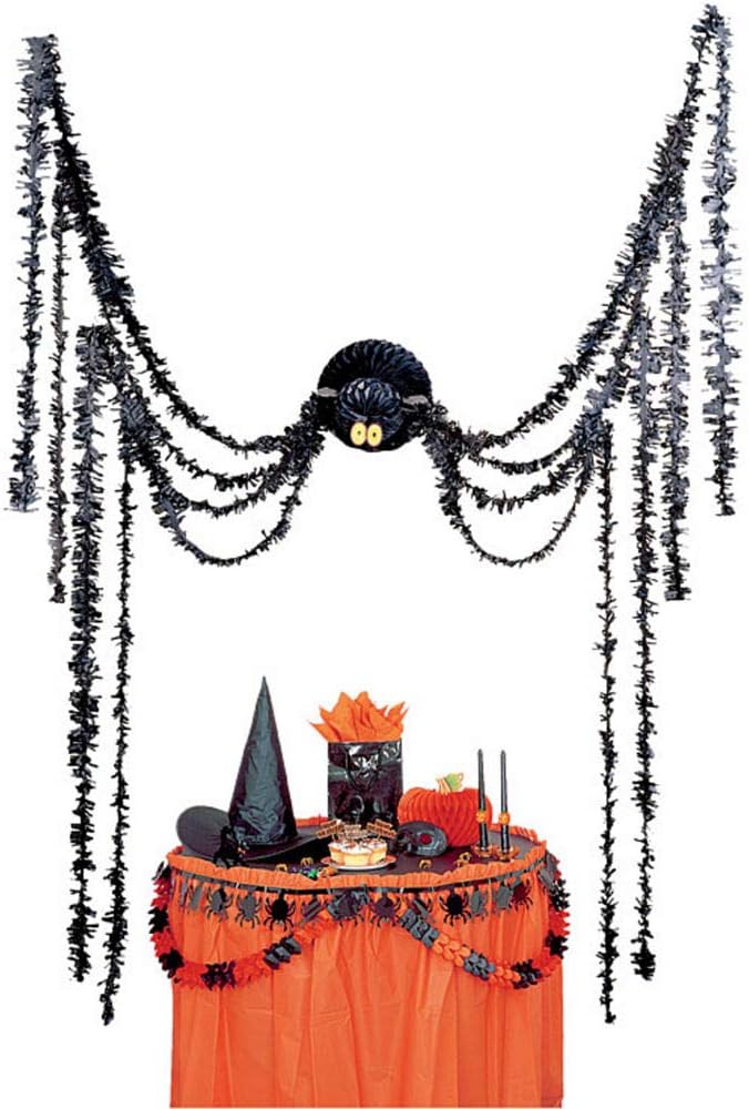 Crea l'atmosfera della festa più spettrale con questo ragno sospeso! Questo ragno spettrale ha un corpo a nido d'ape e lunghe zampe di orpello. Dimensioni: 3,6 m