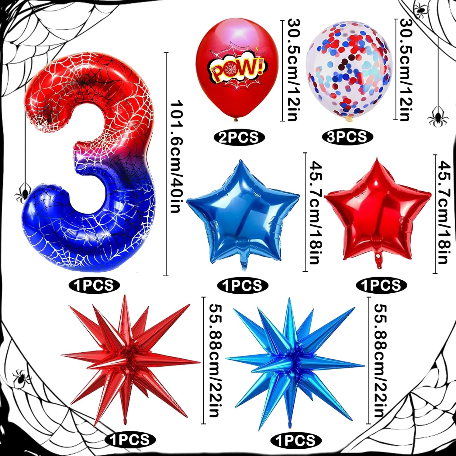 🎈【Contenuto completo】Il set include 1 palloncino a numero, 1 stella rossa da 45 cm, 1 stella blu da 45 cm, 1 stella esplosiva rossa da 55 cm, 1 stella esplosiva blu da 55 cm, 2 palloncini in lattice “POW” da 30 cm e 3 palloncini con coriandoli rosso-blu da 30 cm. La varietà di forme e colori aggiunge profondità alla decorazione e cattura subito l’attenzione degli ospiti. ⭐【Materiali di alta qualità】Realizzati in resistente alluminio e lattice, i palloncini presentano colori vivaci e una brillantezza elegante. Una volta gonfiati, mantengono la forma piena a lungo, senza sgonfiarsi o rompersi facilmente, garantendo un’atmosfera festosa duratura. 💨【Facili da usare】Grazie alla valvola autosigillante, i palloncini si gonfiano facilmente senza bisogno di fare nodi. Con elio fluttuano liberamente per un effetto dinamico, mentre con aria sono perfetti come decorazione da parete, ingresso o tavolo. 🕷️【Tema cartoon accattivante】L’abbinamento del contrasto rosso-blu con elementi cartoon creativi crea un look vivace e originale, ideale per chi ama feste colorate e dall’atmosfera personalizzata. 🎉【Decorazione per ogni occasione】Perfetti per compleanni per bambini, feste, party a tema o eventi a sorpresa, questi palloncini diventano rapidamente il punto focale della festa, creano un’atmosfera allegra e offrono uno sfondo creativo per foto ricordo indimenticabili.