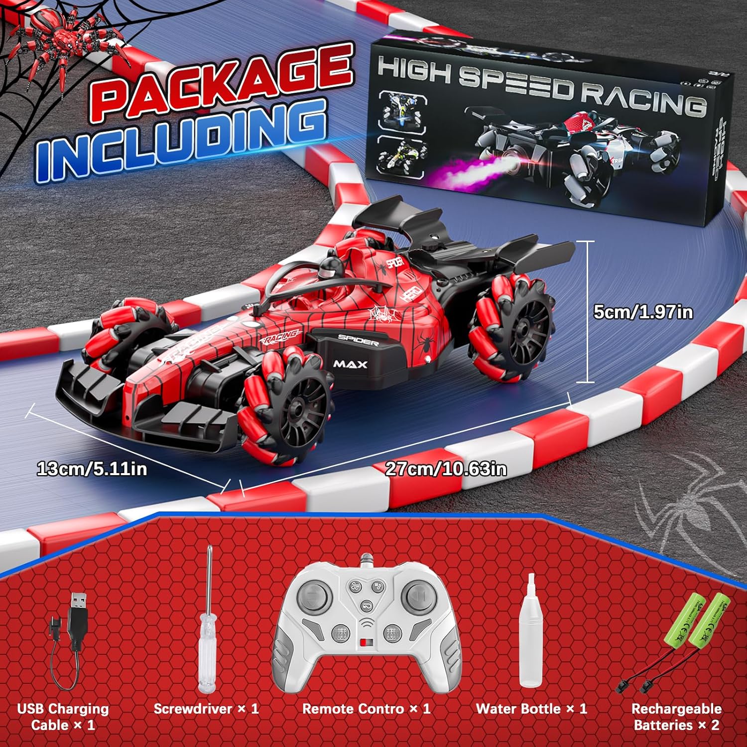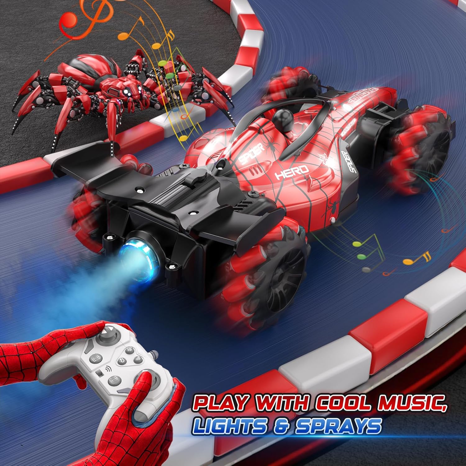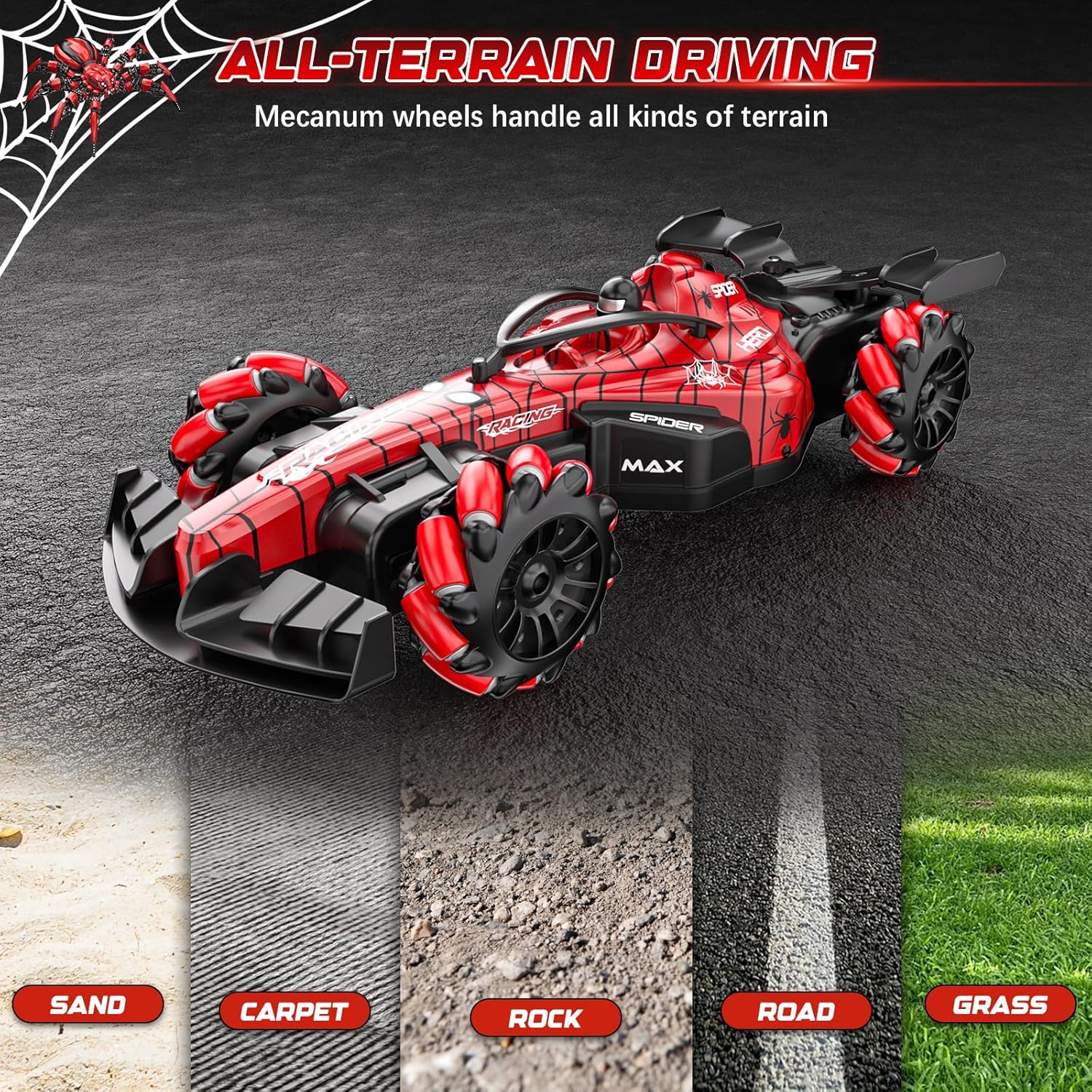 [Spider-Action Deluxe] - Provate le spettacolari manovre di Spider! Questa Spider macchina telecomandata per bambini 3 4 5 6 7 8 9 Anni avanza, arretra e si sposta lateralmente alla velocità della luce, esegue virate mozzafiato e acrobazie agili. Con le fantastiche luci LED Spider e gli effetti sonori accattivanti, ogni avventura diventa un'esperienza ricca di azione per i piccoli eroi [Design e prestazioni Potenti Spider] - Ispirato alla mobilità di Spider! L'auto telecomandata Spider convince con il suo design robusto a tema ragno. La potente batteria da 2 V garantisce fino a 80 minuti di divertimento per ogni ricarica e velocità superiori a 10 km/h. Il telecomando ha una portata fino a 30 metri (100 piedi) [Controllo Spider Anti-interferenza a 2,4 GHz] - Divertimento Spider senza interferenze per tutti! Il telecomando a 2,4 GHz garantisce un controllo preciso della tua macchina radiocomandata Spider. Più auto Spider possono guidare contemporaneamente senza ostacolarsi a vicenda: perfetto per gare e avventure di squadra con amici o fratelli [Potenza Spider su Tutti i Terreni] - Conquista qualsiasi terreno come un eroe Spider! Realizzata in robusta plastica ABS, questa Spider macchina telecomandata per bambini con trazione 4WD e pneumatici ad alta aderenza affronta senza sforzo interni, tappeti, erba, sabbia e terreni irregolari. Pronta all'azione sia all'interno che all'esterno [Il Regalo Spider Definitivo] - La modalità demo con un solo pulsante mostra tutte le acrobazie Spider! Un regalo perfetto per compleanni, feste Spider, la festa dei bambini o Natale. Ideale per bambini e bambine dai 3 anni in su che amano il divertimento Spider ricco di azione