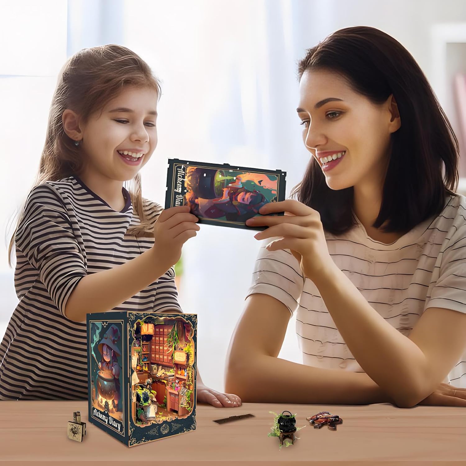 Kit di costruzione per casa delle bambole: questo è uno speciale kit fermalibri in miniatura con un diorama 3D, un angolo del libro e una decorazione tutto in uno. Il micro design nasce da scene reali, puoi immaginarti immerso nell'angolo dei libri, un mondo in miniatura. Può creare possibilità illimitate in uno spazio limitato, che meraviglia. Artigianato e materiale squisiti: il kit fai-da-te per l'angolo del libro è realizzato in legno di alta qualità, perfettamente tagliato al laser, con parti ben adattate, stampa UV ecologica, persino ColorSpray, tutti i materiali sono ecologici e sicuri, senza sbavature e di alta qualità. Ti assicuriamo di usarlo. Questa casa delle bambole deve essere assemblata, anche se sei un principiante, il manuale inglese può guidarti passo dopo passo per completare il kit in miniatura. È adatto a bambini di età superiore a 14 anni. Design unico - LED ambientale: premi per aprire il LED e il kit dell'angolo del libro si accende. Troverai scene in miniatura più interessanti nell'angolo del libro. Quando posizioni Book Nook sullo scaffale, puoi trovare i libri che ti servono attraverso la luce e allo stesso tempo puoi decorare la tua libreria. Quando leggi e lavori, il kit angolo libro viene posizionato sulla scrivania. La luce calda e romantica ti permette di goderti il momento tranquillo del momento. La vita ha bisogno di decorazioni. Regalo, collezione e decorazione perfetti: il kit per l'angolo del libro è un regalo creativo e significativo per San Valentino, compleanno e Natale per i tuoi amici, familiari e amanti. Soprattutto per chi ama l'artigianato, le miniature e il fatto a mano, è un regalo perfetto e da collezione. Ancora più importante, può coltivare la propria abilità manuale e creatività mentre si gode il divertimento del fai-da-te. Quando lo finisci, più che un semplice leggio, il suo aspetto squisito e le luci possono essere usati come decorazione o opera d'arte. ♫♫♫ 【Note importanti】 I kit per gli angoli dei libri della casa delle bambole sono stati controllati attentamente al 100% prima della consegna per garantire che gli accessori siano completi e che non vi siano parti mancanti. Non esitate a contattarci se avete domande durante il montaggio. Risolveremo tutti i problemi il prima possibile. Inoltre, è necessario preparare da soli la colla siliconica liquida e 2 batterie (tipo AA), poiché è vietato spedirle per via aerea.