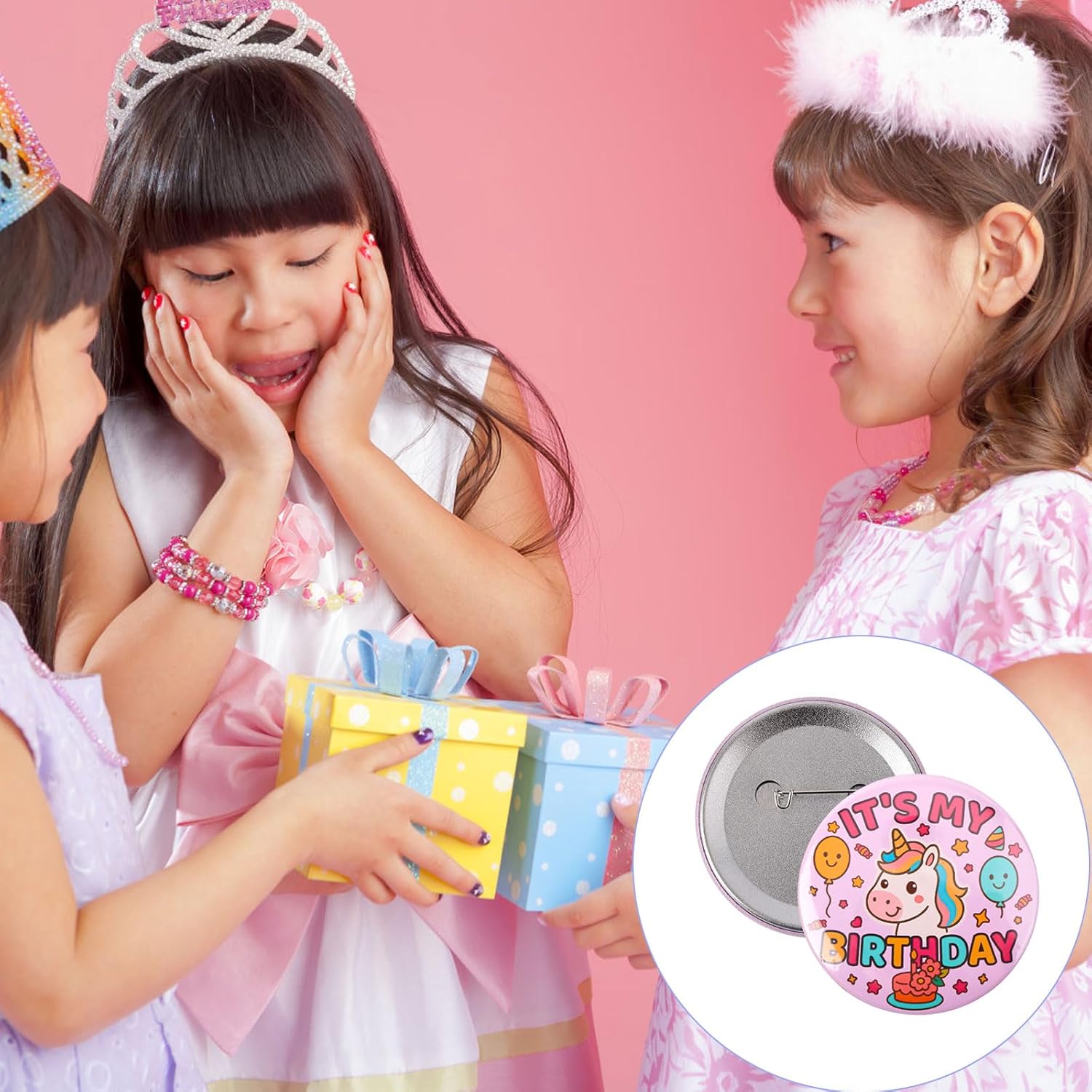 Specifica: Colore: rosa Materiale: stagnove, plastica Dimensione del prodotto: 5,8 cm di diametro Dettagli del pacchetto: 1 x Pin di compleanno Nota: A causa della misurazione manuale, le dimensioni e il peso possono avere un certo errore. A causa della differenza tra diversi monitor, potrebbe esistere una leggera differenza di colore.