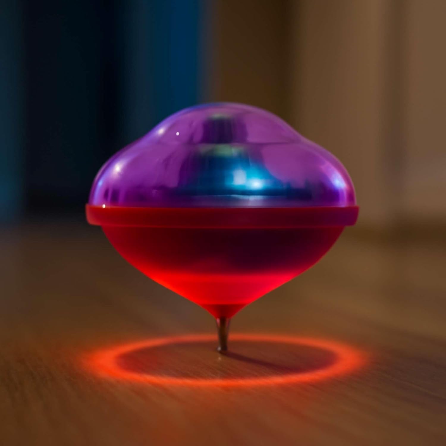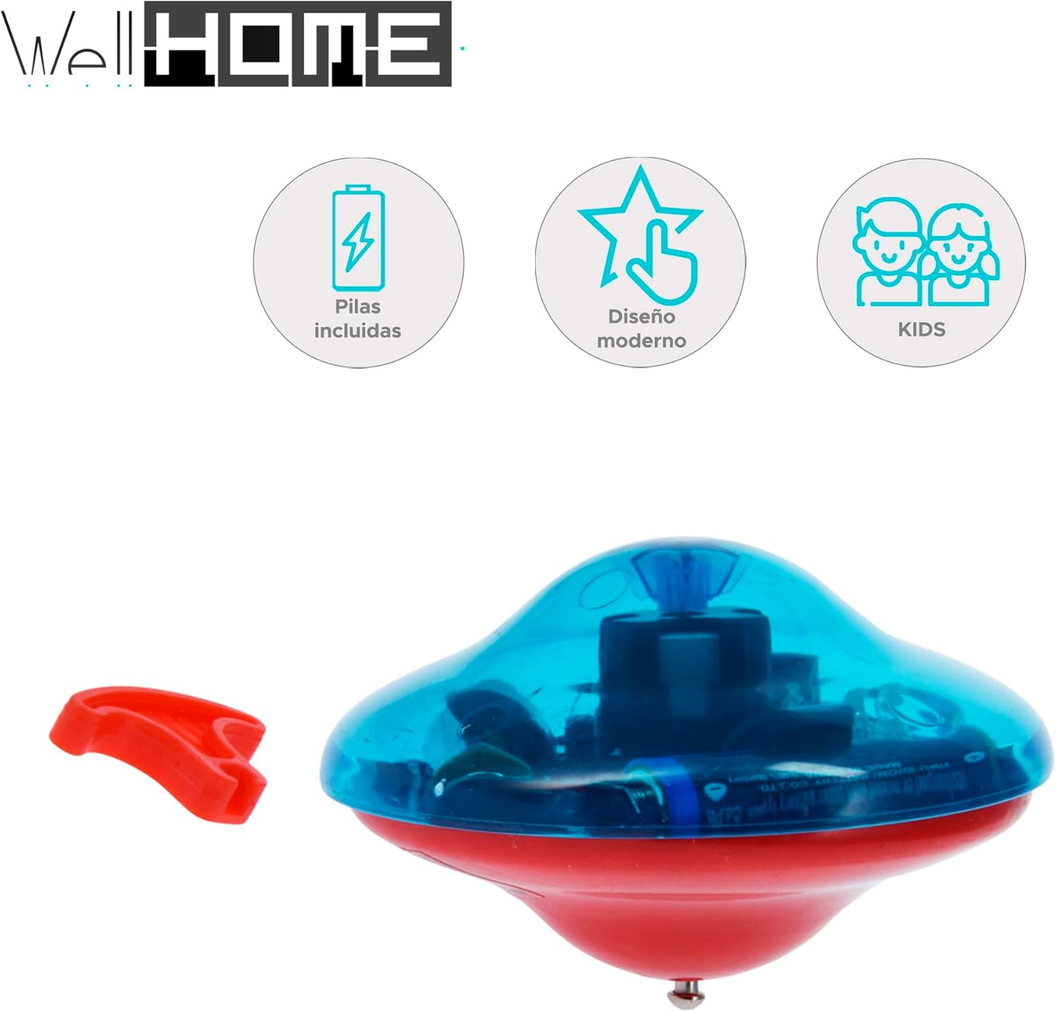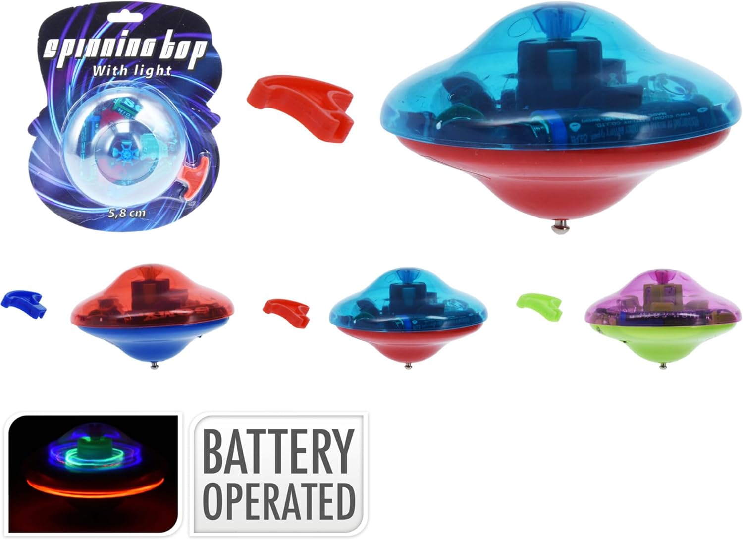 Lo spin top con luce è disponibile in 3 colori assortiti e funziona con 3 batterie AA incluse. Fornito in un blister pronto all'uso. È un giocattolo divertente e divertente che brilla durante la rotazione, ideale per bambini e adulti che amano i giochi di destrezza.