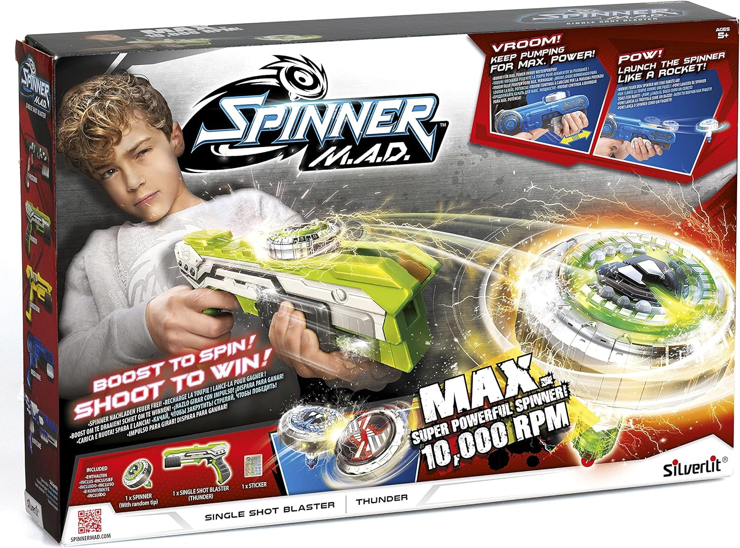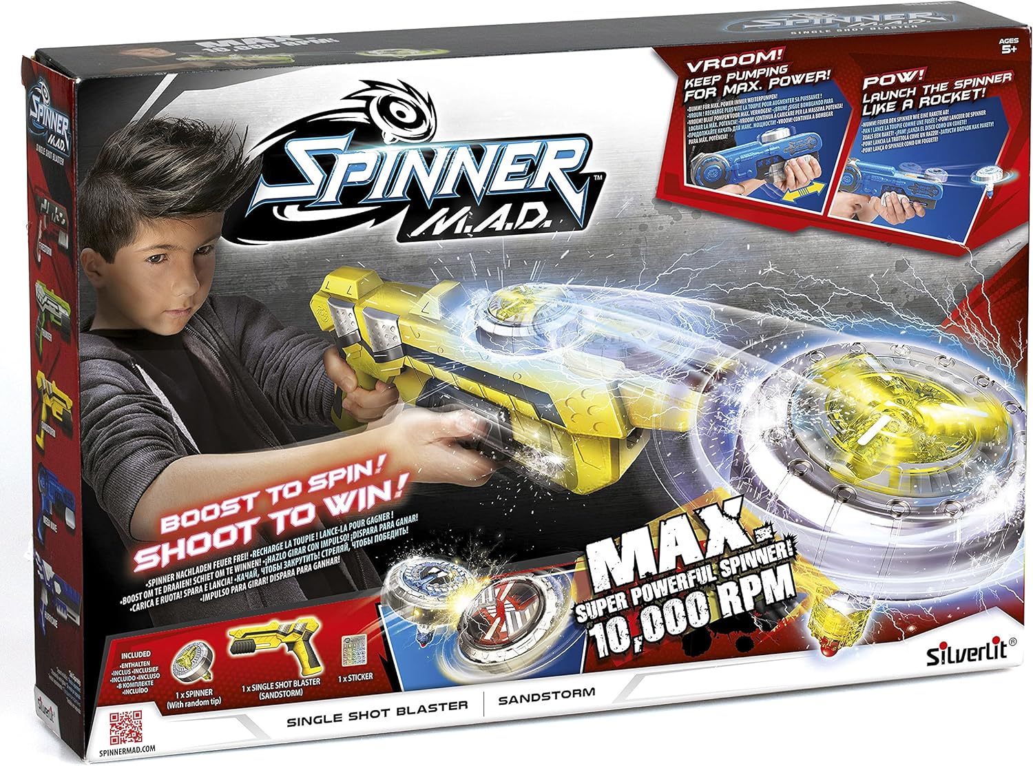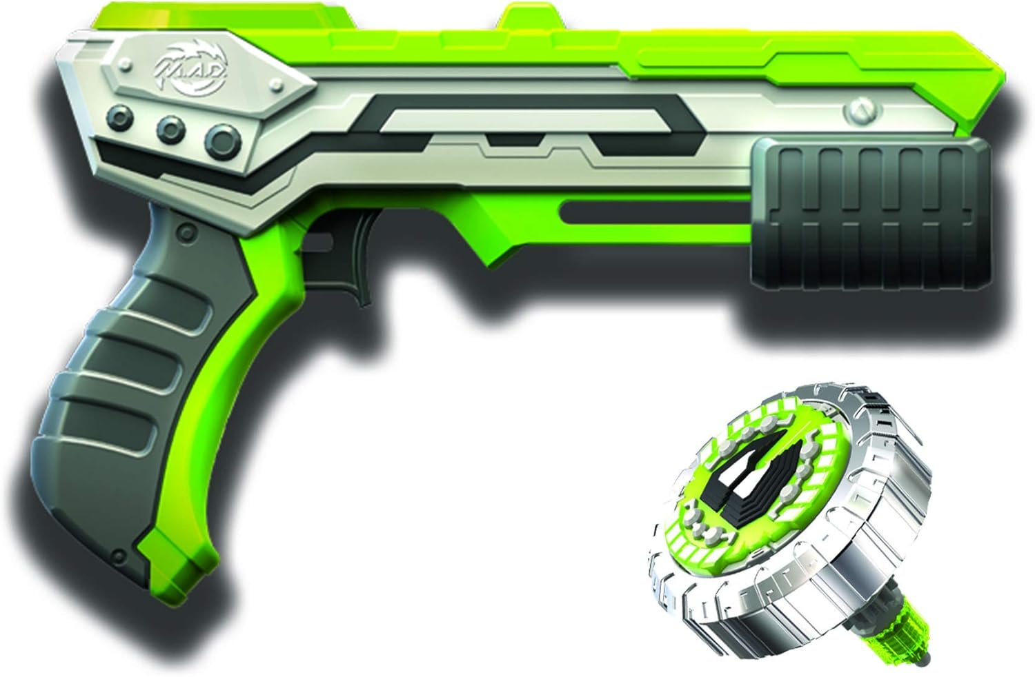 COMBAT TOP - Coinvolgi tuo figlio in incredibili combattimenti al top; il blaster da 24 cm e la canotta sono compatibili con l'intera gamma Spinner M.A.D. PARTE SUPERIORE PROPULSIVA - Il blaster ti permette di spingere la trottola a tutta velocità e intensificare i combattimenti! Più a lungo viene caricata la parte superiore del blaster, più velocemente verrà azionato premendo il grilletto al momento giusto BLASTER PERSONALIZZABILE - Gli adesivi sono inclusi nella confezione per personalizzare il lanciatore Motivo casuale: riceverai uno dei 4 colori disponibili casualmente al momento dell'ordine (giallo, blu, verde o giallo) A PARTIRE DAI 5 ANNI IDEA REGALO - È il regalo perfetto per i tuoi bambini per ogni occasione: Natale, compleanno, Pasqua!