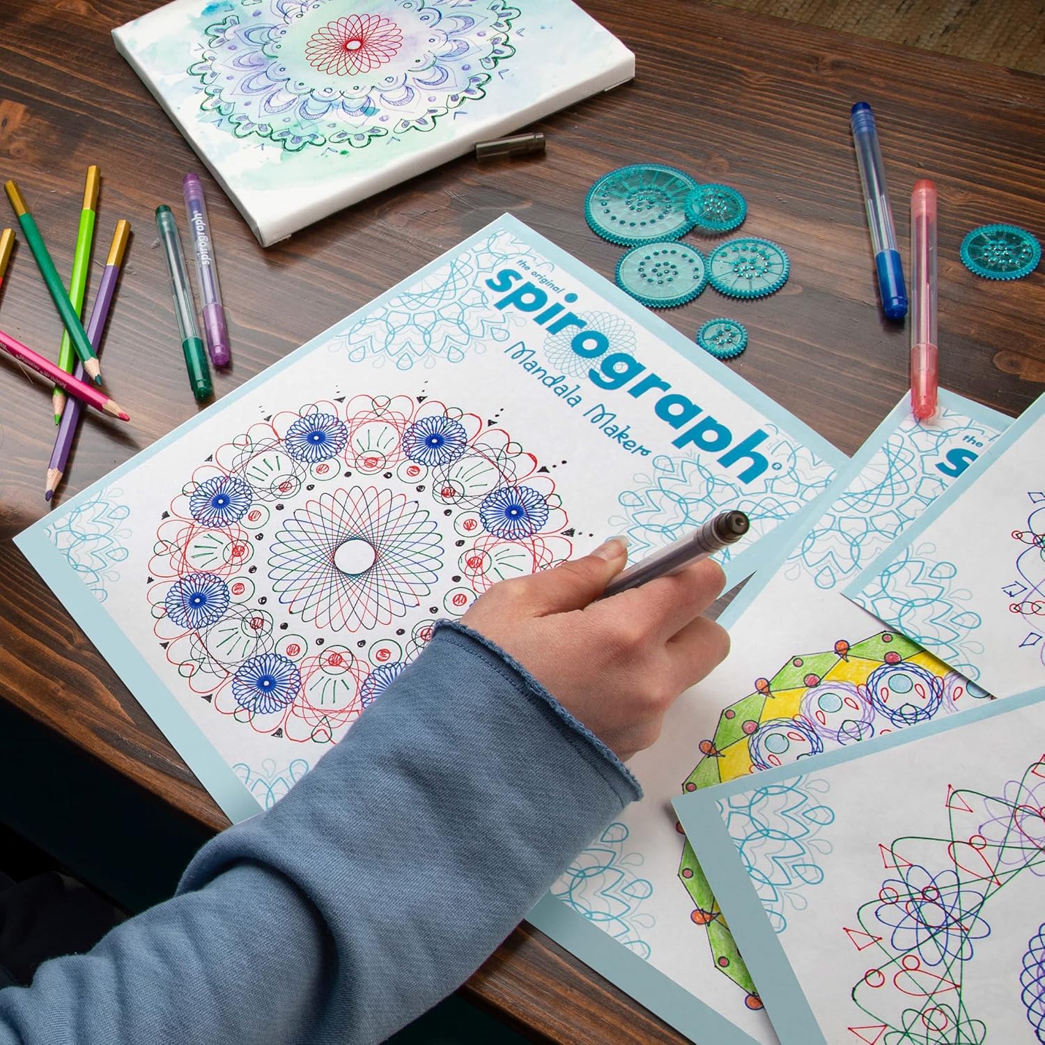 Dai un tocco alla tua arte e trasforma una pagina bianca in un'opera d'arte con Spirograph! Chiamando tutti gli aspiranti artisti! Crea splendidi disegni mandala con un tocco Spirograph È facile, basta ruotare le ruote intercambiabili nel telaio per creare disegni mandala ispiratori! Sii semplice o aggiungi molti dettagli - usa la tua creatività! Viene fornito con 40 fogli di carta, 6 ruote Spirograph e 2 dischi setncil unici e un grande telaio con pratici slot per carta. Numero di elementi: 15