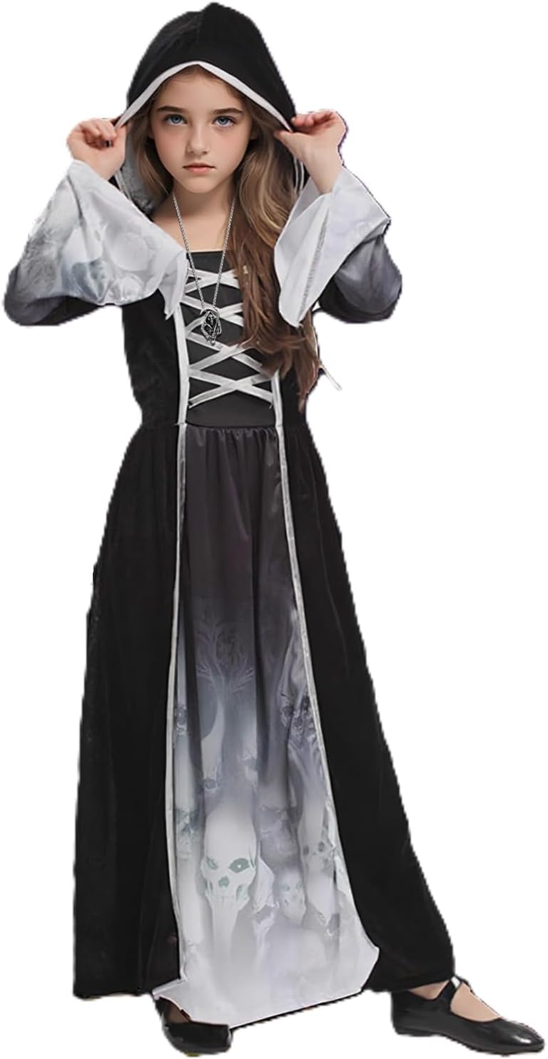 Beautifully well made witch costume . Very good quality.. The hat is well-made as well. The witches staff is super cool the skirt twinkles three different settings, but you have to put your own batteries in which is no big deal. My granddaughter is six years old 40 pounds and the medium fit her absolutely perfect.. unfortunately I had to send it back because she changed her mind and wanted to be Rumi this year but fantastic costume !