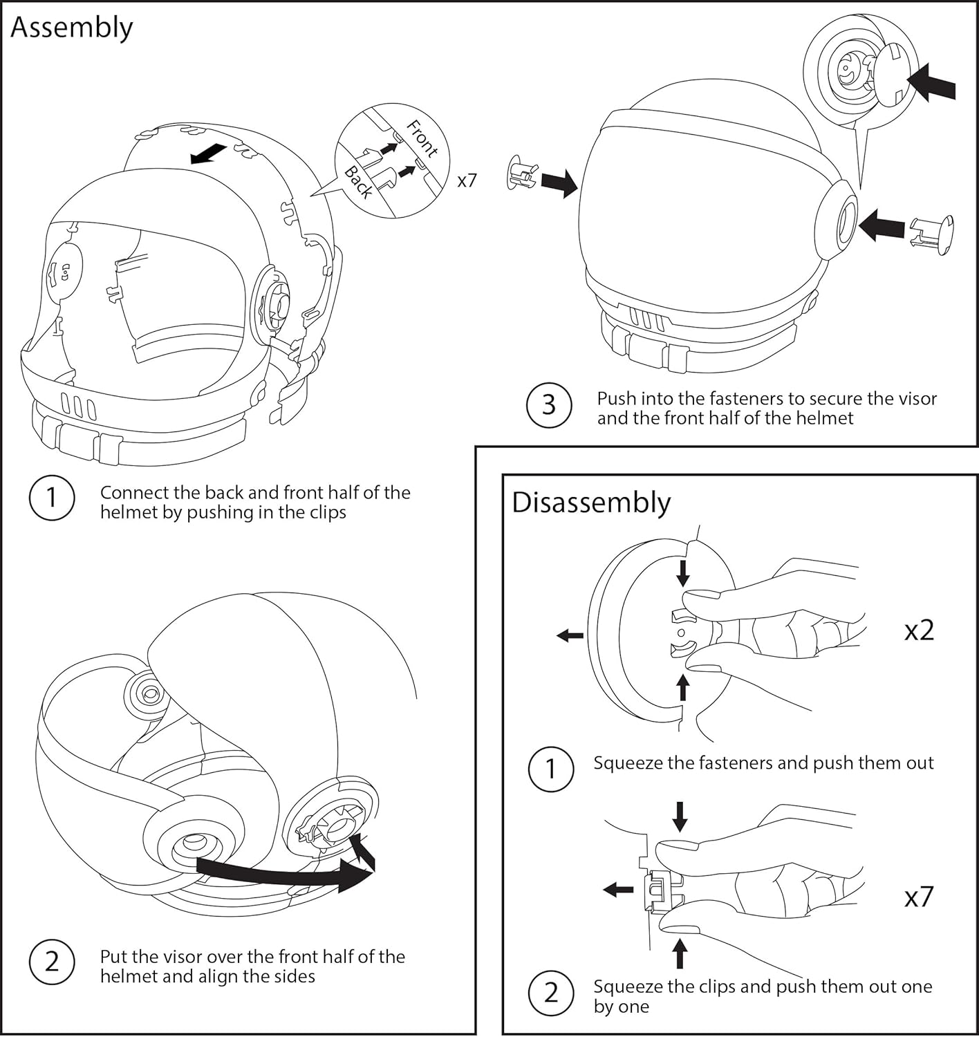 This astronaut helmet is impressively sturdy and high-quality, with a realistic design that feels worth the price. Assembly can be tricky at first, but following the instructions carefully—especially connecting the middle clips first—makes it much easier. Once assembled, it’s solid and looks fantastic for costumes or display. The helmet fits comfortably with light padding, though slightly large for smaller heads. A bit heavier and tighter for adults, but overall durable, authentic-looking, and a great addition for kids or cosplay enthusiasts.