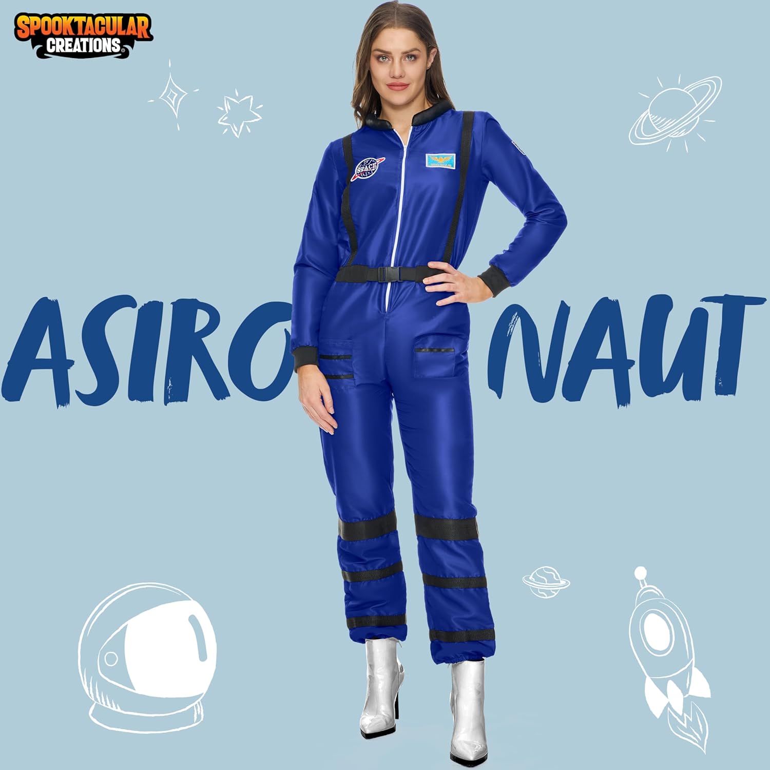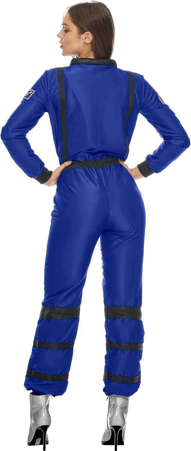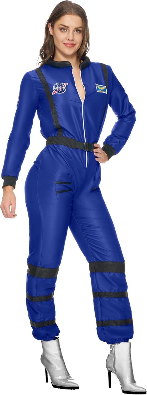 Spooktacular Creations Costume da astronauta blu per donna adulta, set di tute per costume di Halloween da donna 2024 Cosplay Il set include: il costume di Halloween da donna include una tuta blu, perfetta per completare un look da vero astronauta. Facile da indossare: realizzato al 100% materiale in poliestere, questo costume da astronauta per adulti offre un'elasticità moderata per il comfort. La tuta da astronauta in costume da donna è dotata di cintura elastica e cerniera frontale per indossarla facilmente. Occasioni versatili: questo versatile costume spaziale da donna è adatto a varie occasioni, tra cui feste in costume di Halloween, eventi cosplay, riunioni a tema, spettacoli teatrali, giochi di ruolo, ed eventi a tema spaziale. Manutenzione semplice: il nostro set di costumi spaziali da donna è di facile manutenzione: basta pulirlo con una spugna per mantenerlo al meglio. Evita lo sbiancamento, l'asciugatura in asciugatrice e la stiratura per preservare il tessuto e il design. Taglie multiple: disponibile nelle taglie S, M, L, XL e XXL, il nostro set di costumi da astronauta è progettato per adattarsi alla maggior parte dei tipi di corpo delle donne adulte. Assicurati di fare riferimento alla tabella delle taglie per una vestibilità adeguata.
