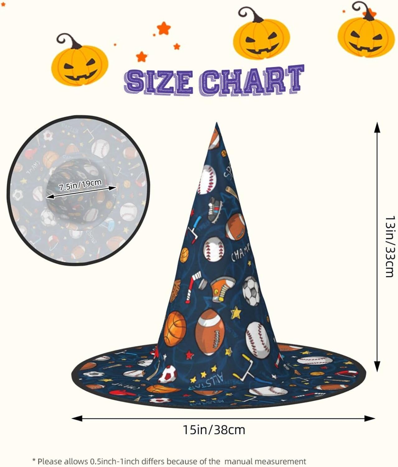 Sport Baseball Game Print Halloween Essential, cappello da strega, cappello da mago, cappelli di Halloween, cappello costume per uomini e donne