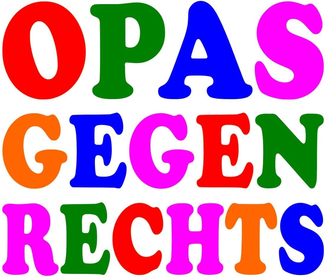 OPAS CONTRO IL DESTRA - Con questa dichiarazione prendete posizione contro il razzismo e la discriminazione. Non importa quanti anni hai, perché la democrazia e l’uguaglianza riguardano tutti noi. Dimostrate alla manifestazione che anche i nonni scendono in strada. Decora il tuo mondo come preferisci! Con l'adesivo in vinile resistente puoi incollarlo su superfici lisce come laptop, auto, mobili e molto altro. L'adesivo è impermeabile e può essere rimosso dalla maggior parte delle superfici entro 3 anni senza lasciare residui di adesivo. Adesivo in vinile sagomato, facilmente rimovibile. Resistente e impermeabile. Materiale: pellicola in PVC da 100 µm. Prodotto nell'Unione Europea.