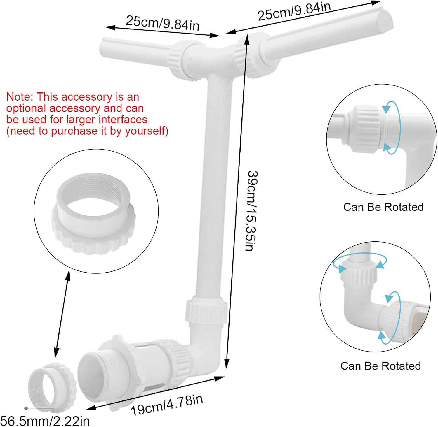 Crea un pozzo più grande: goditi una maggiore spruzzata a cascata mentre il nostro design aggiornato raffredda la tua acqua a 20 gradi più velocemente, offrendo una fantastica esperienza rinfrescante in piscina. Gioia rilassante: regalati un'esperienza tranquilla con il nostro spray per fontana da piscina. Goditi il suono delicato dell'acqua che scorre, crea un'atmosfera giocosa per la tua famiglia e i tuoi amici e goditi l'atmosfera beata di una vera cascata. Direzione regolabile: l'esclusivo design regolabile di questo prodotto ti consente di creare effetti d'acqua mozzafiato. Dirigere il flusso d'acqua e regolare l'altezza a proprio piacimento, da calma e delicata a potente ed emozionante. Spray per fontana versatile: questo prodotto accetta ugelli di ritorno esterni da 2,2" e si adatta alla maggior parte dei raccordi filettati maschio e femmina da 1,5". Puoi installarla facilmente in pochi minuti e goderti un bellissimo spray per fontana nella tua piscina. Utili strumenti per piscina: solleva la tua piscina e il tuo giardino con il nostro spray per fontana da piscina. Ideale per piscine sopra/in terra, laghetti da giardino e piscine con onde estive. Uno strumento multifunzionale indispensabile per gli appassionati di piscine e giardini.