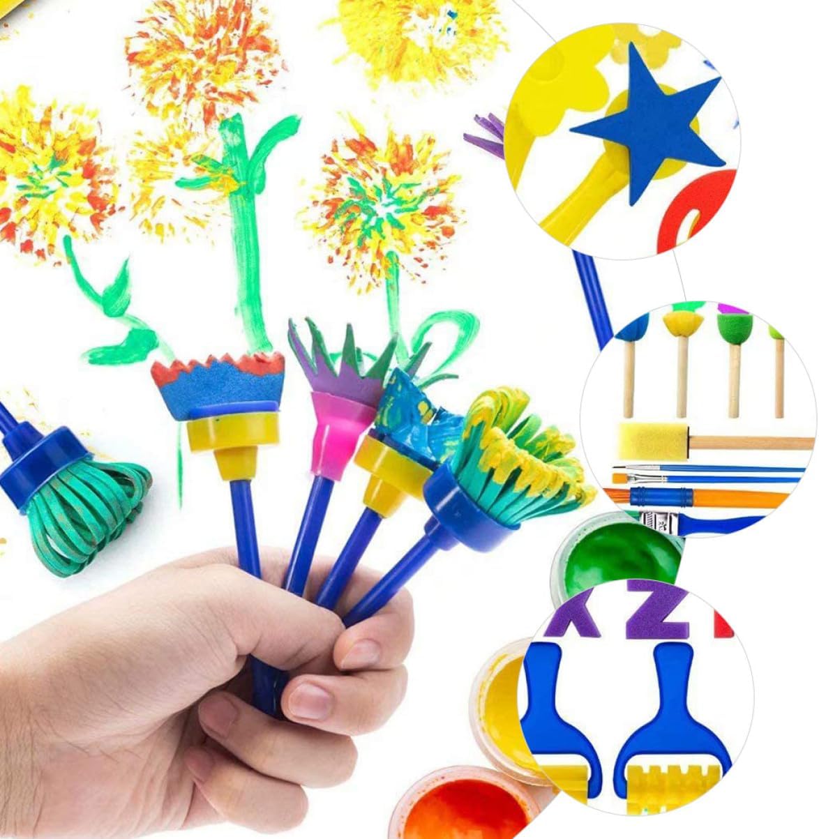 Kit pittura per : può essere utilizzato come un'ottima scelta regalo per pittori e amanti della pittura, saranno felici, strumenti pittura per Pennelli per : pratici e leggeri, comodi da tenere e non scivolano facilmente, con design ergonomico, spugna per dipingere Spugne per dipingere: queste spugne per dipingere possono essere immerse nella vernice, nei pigmenti e possono essere rivestite con colori sulla superficie, pittura con spugna per Kit per pittura con spugna: con manici eviterà toccare direttamente i pigmenti, pennelli in spugna puliti e comodi Strumenti per dipingere per : per pittura a olio, acquerello, acrilico, gouache e altri lavori artistici, materiali per la pittura