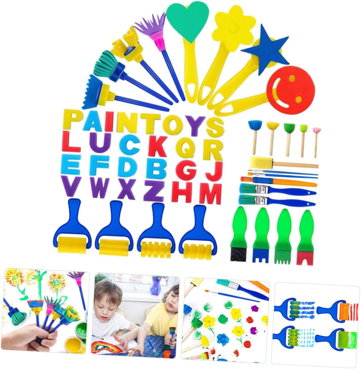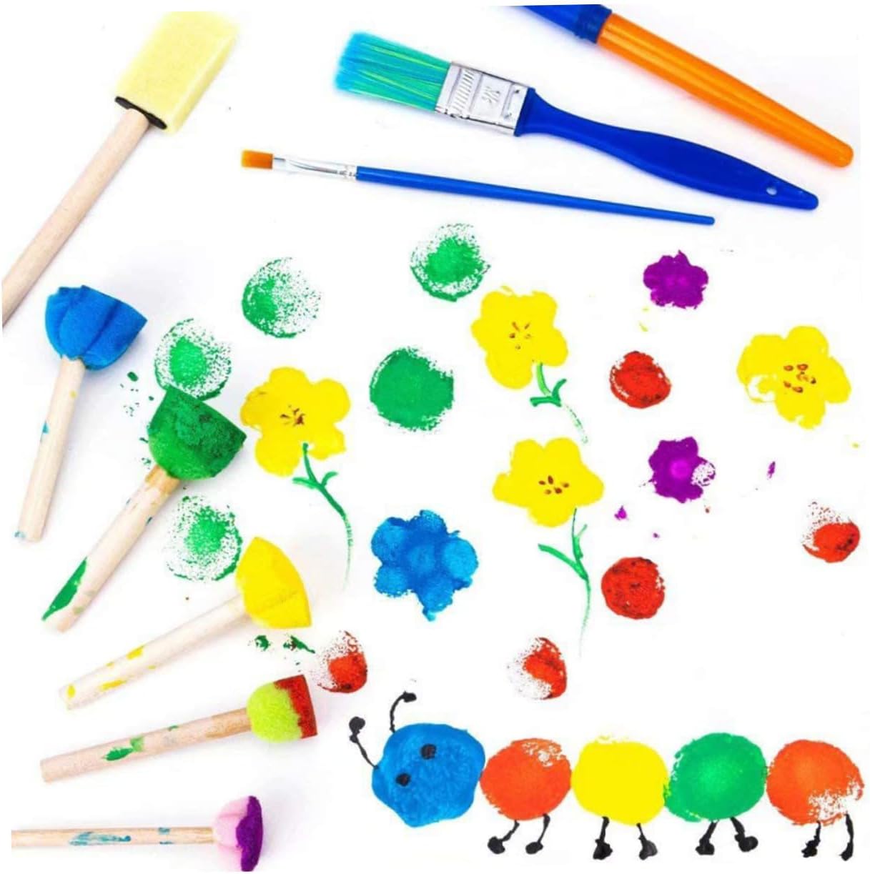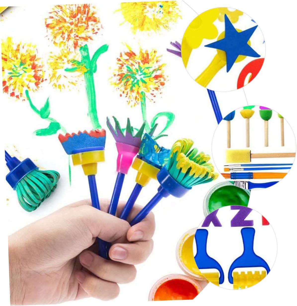 Materiali per disegno e pittura per bambini: puoi usarli per realizzare lavoretti creativi con i tuoi bambini, famiglie e amici, condividendo molto più divertimento, spugna per dipingere per bambini Forniture per il disegno per bambini: i bambini possono disegnare, dipingere, realizzare progetti artigianali fai da te e altro ancora con questi strumenti, pennelli per bambini Spugne per dipingere: queste spugne per dipingere possono essere immerse nella vernice, nel pigmento e possono essere rivestite con vari colori sulla superficie, forniture per dipingere per bambini Pennelli in spugna: strumenti di pittura pratici per varie creazioni, adatti a qualsiasi metodo di disegno, kit di pittura per bambini Materiali da disegno per bambini: possono migliorare la loro cognizione del colore, in modo che ogni bambino in età prescolare senta il divertimento e la felicità della creazione, materiali per dipingere