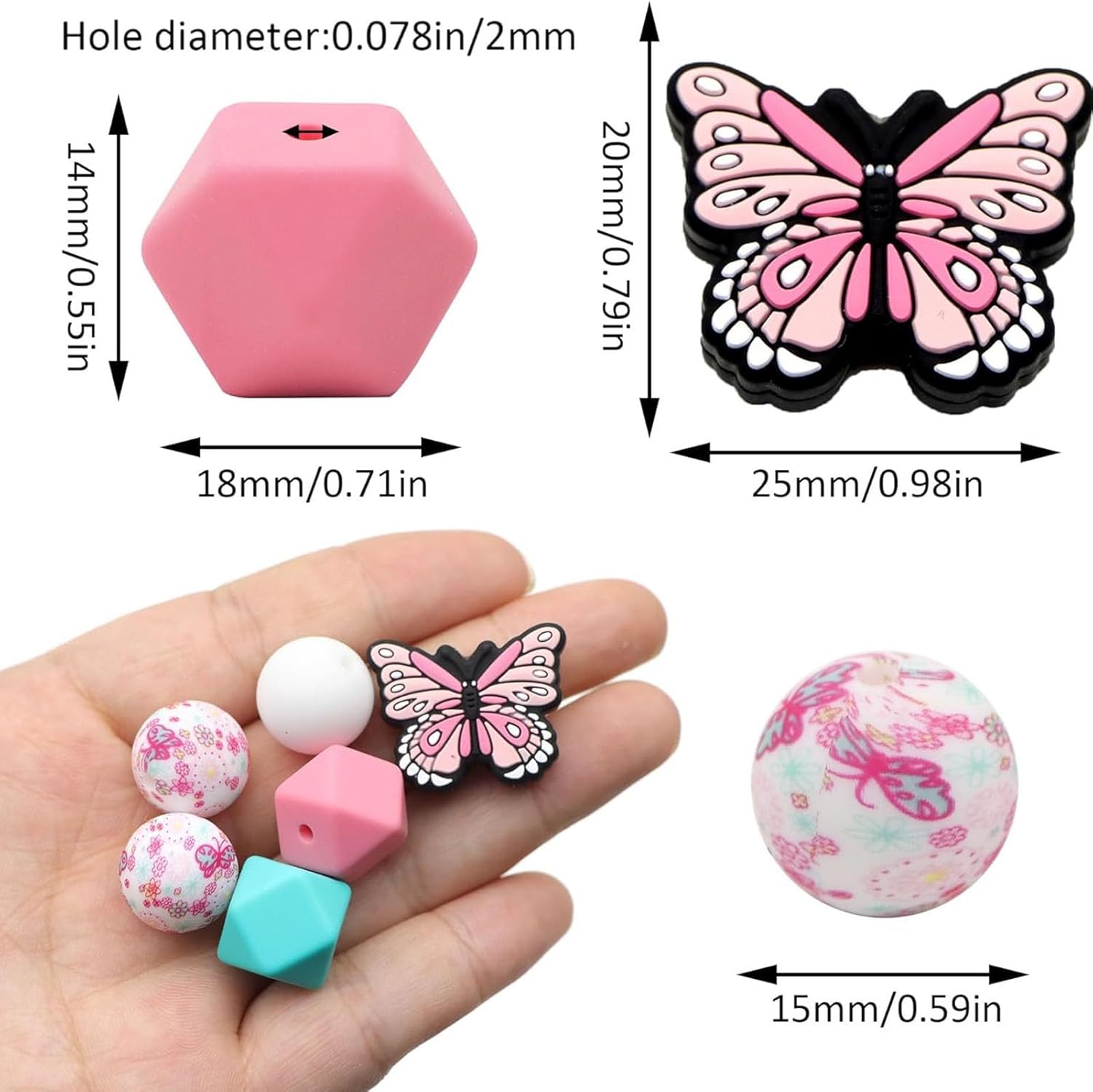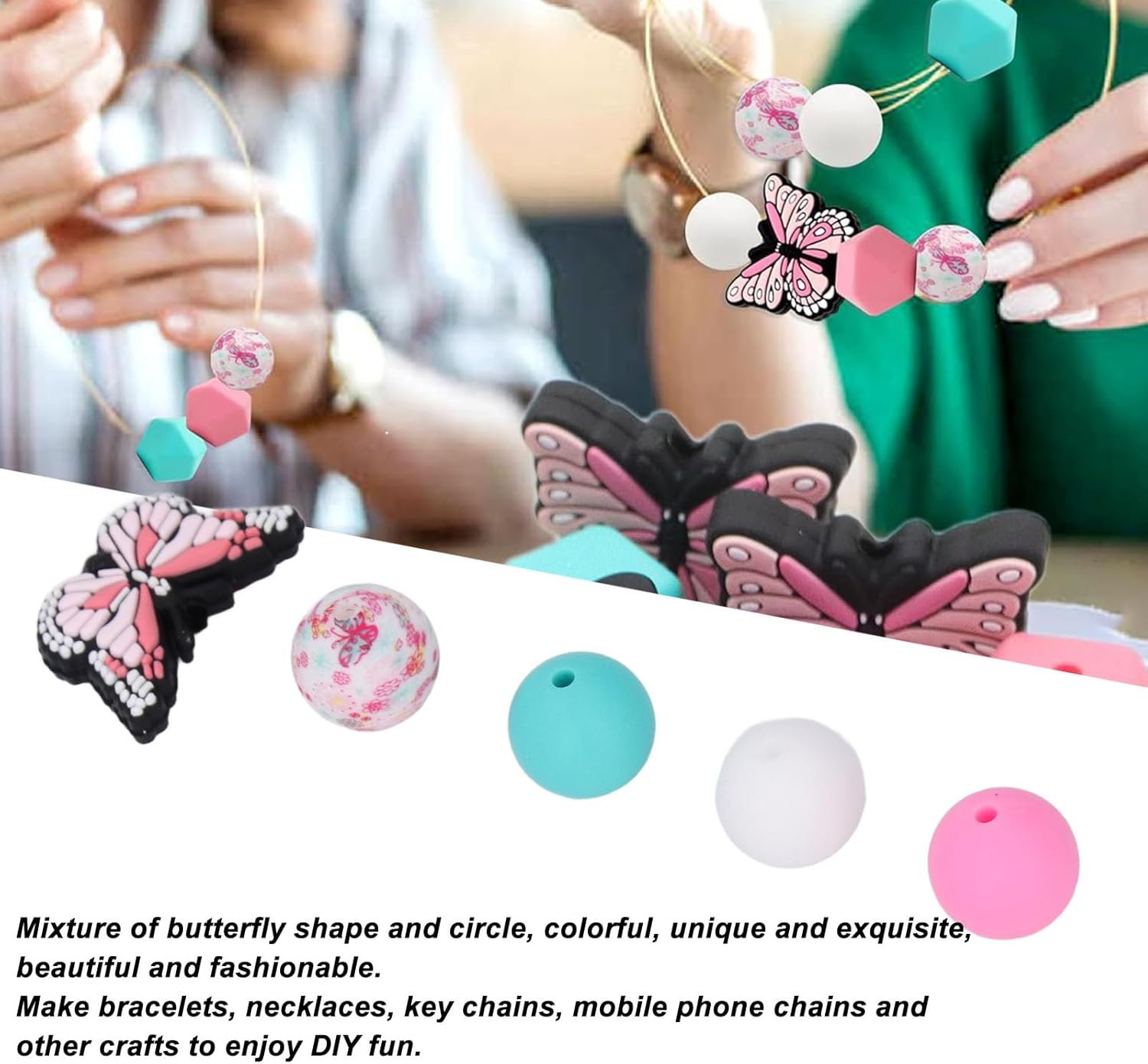 Materiale in silicone: realizzato in silicone premium, struttura stabile, stabile, non deformabile o sbiadimento, leggero e durevole. Set di design a farfalla: combinazione di forme e stampe di farfalla, colori vibranti, unici e squisiti, aggiungendo un tocco di bellezza e moda. Kit artigianale versatile: ideale per la creazione di braccialetti, collane, portachiavi, decorazioni telefoniche, ecc., Permettendoti di goderti il divertimento del crafting fai -da -te. Il pacchetto include: questo kit di perline include perle rotonde da 20 pezzi e perle a farfalla da 5 pezzi, puoi creare i tuoi mestieri in base alla tua idea. Buon : il set di perline in silicone unico e squisito è buono per regalare come per le vacanze agli amici che amano la mano artigianale.