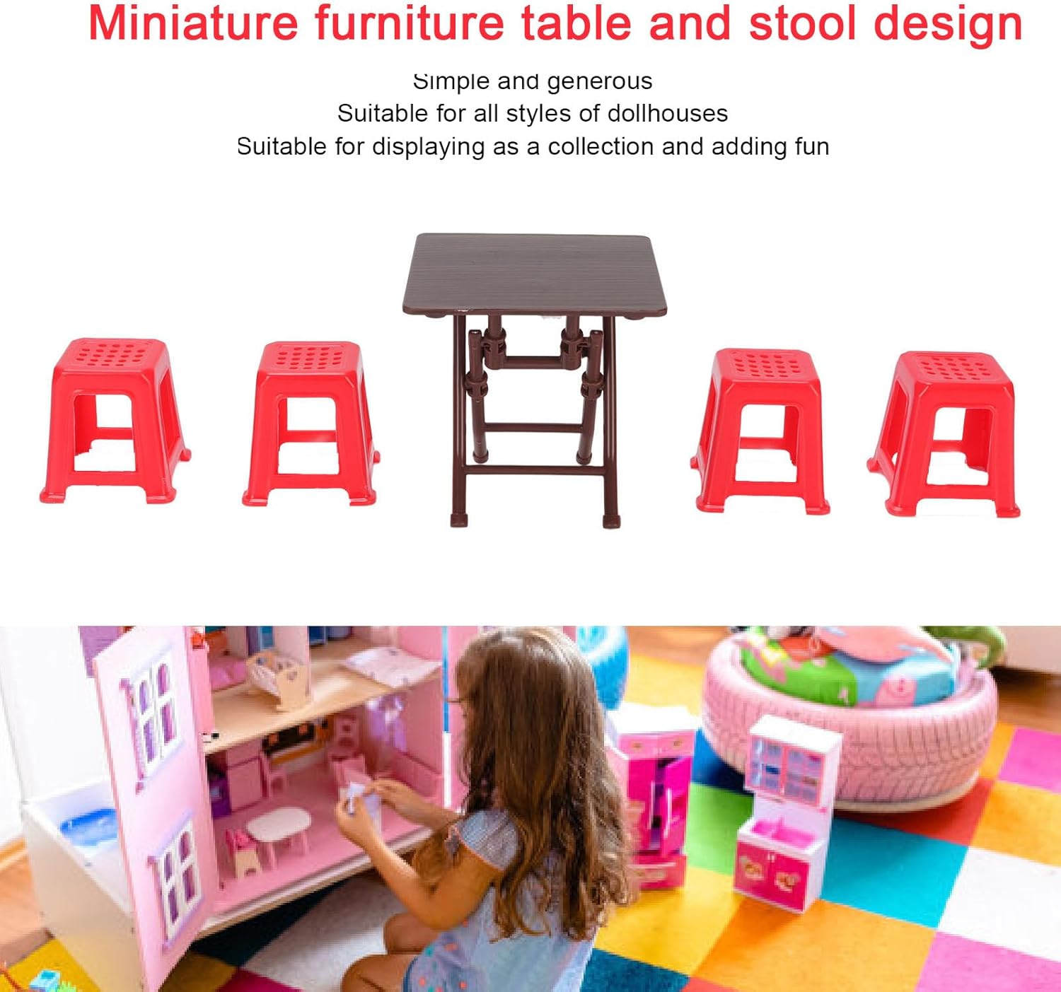 Mobili in miniatura: squisiti mobili in miniatura da bambola in scala 1:12, sono realistici e dettagliati. L'aspetto di squisito artigianato, che può migliorare la bellezza della casa delle bambole. Funzione del tavolo pieghevole: gli accessori per la casa delle bambole sono dotati di una funzione di tavolo pieghevole, rendendo facile da archiviare e posizionare lo spazio. Questa funzione assicura che la tua casa delle bambole sia ben organizzata! Semplice ed elegante: il design del tavolo e delle sedie in miniatura è semplice ed elegante, adatto a vari stili di bambole. Questi mobili possono soddisfare le tue esigenze e fornire un design semplice e generoso. Squisitamente realizzato: il tavolo da mobili in miniatura e le sedie sono squisitamente realizzate, adatte al display di raccolta, aggiungendo divertimento e divertimento. Incorporare questi tavoli e sedie meravigliosamente progettati nella tua casa delle bambole migliorerà sicuramente il tuo divertimento complessivo. Materiale plastico premium: il tavolo da mobili in miniatura e gli sgabelli sono realizzati in materiale plastico premium, robusto e affidabile, non facile da rompere. Questo materiale robusto aiuta a mantenere l'aspetto originale dei mini mobili.