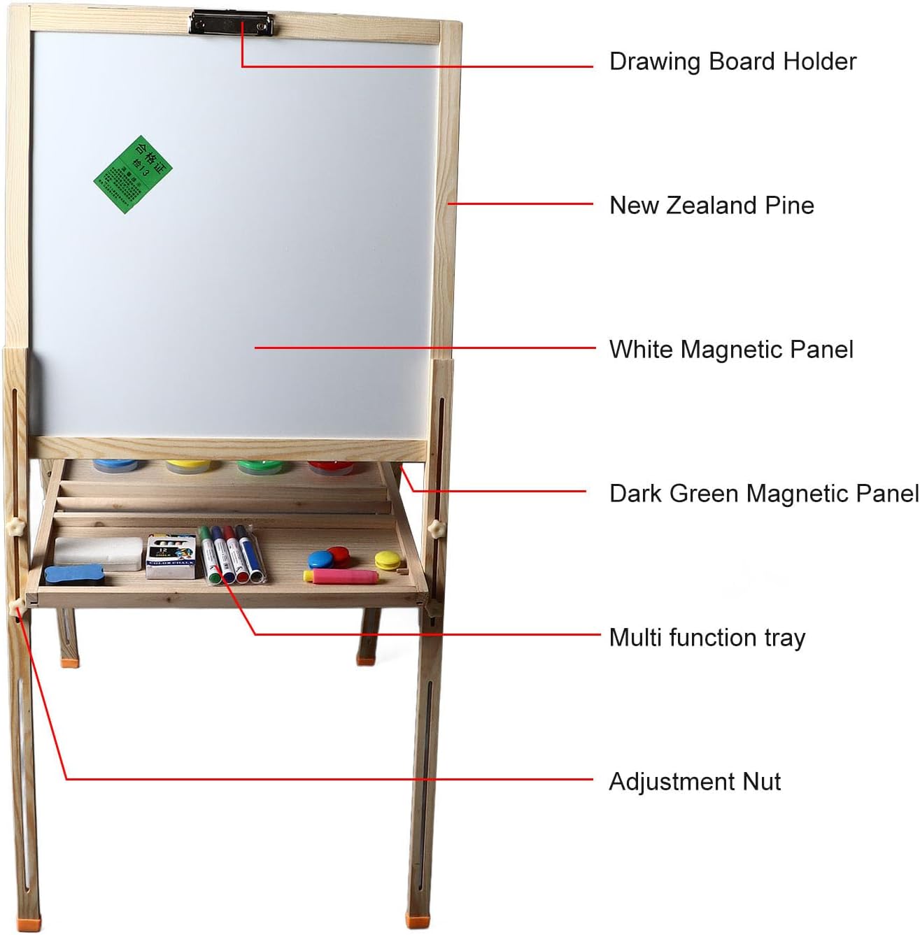 [Conveniente e versatile]: questo cavalletto d'arte a doppia faccia può essere utilizzato su un desktop o un muro, soddisfacendo varie esigenze. [Strumento educativo]: Adatto per 2-13 anni, questo cavalletto aiuta i bambini a migliorare le loro capacità di scrittura e disegno. [Sicuro e durevole]: realizzato con materiali non potenti, questo cavalletto garantisce un ambiente sicuro per la crescita dei bambini. [Ispira creatività]: le funzioni cancellabili e di disegno incoraggiano i bambini a scatenare la loro creatività e immaginazione. [Design per il risparmio spaziale]: con ganci per il muro, questo cavalletto risparmia spazio e consente ai bambini di creare in qualsiasi momento.