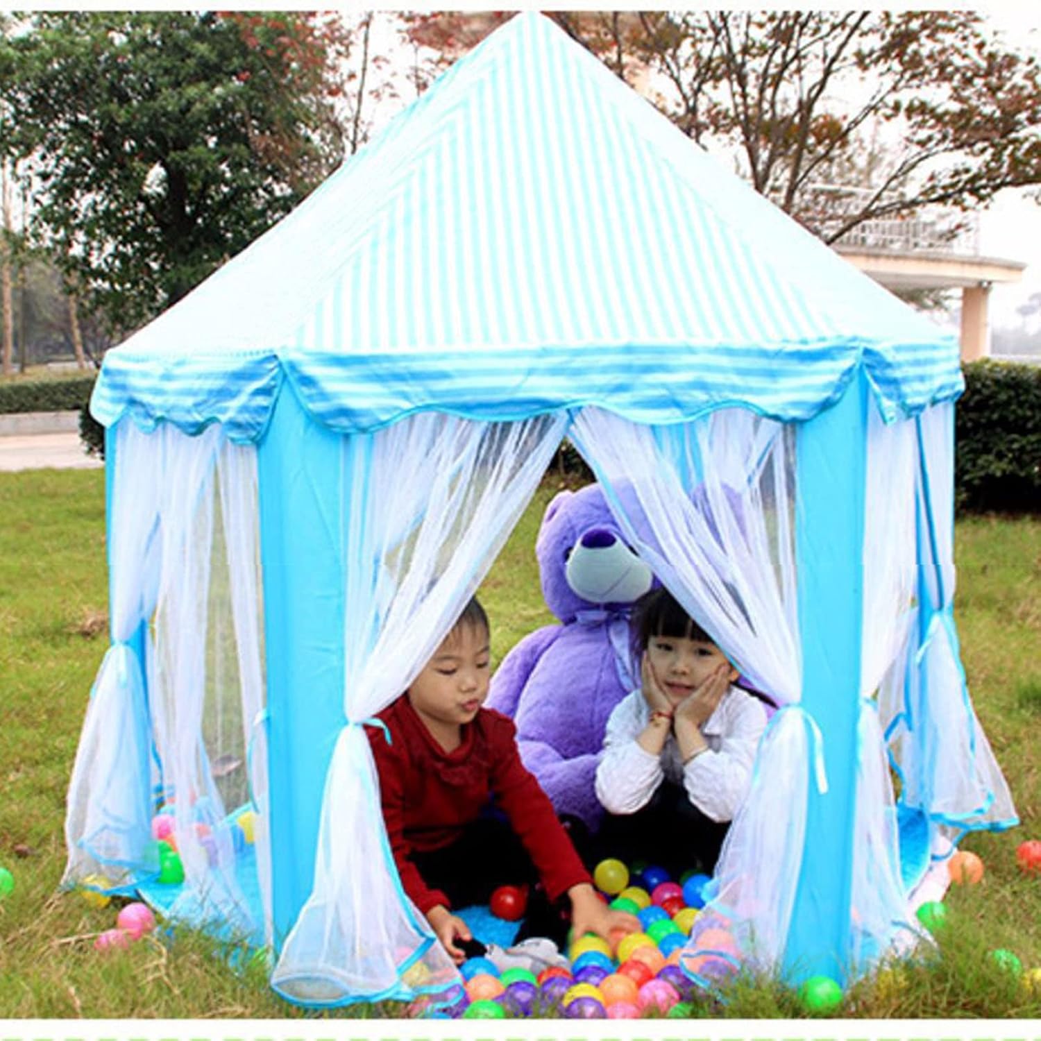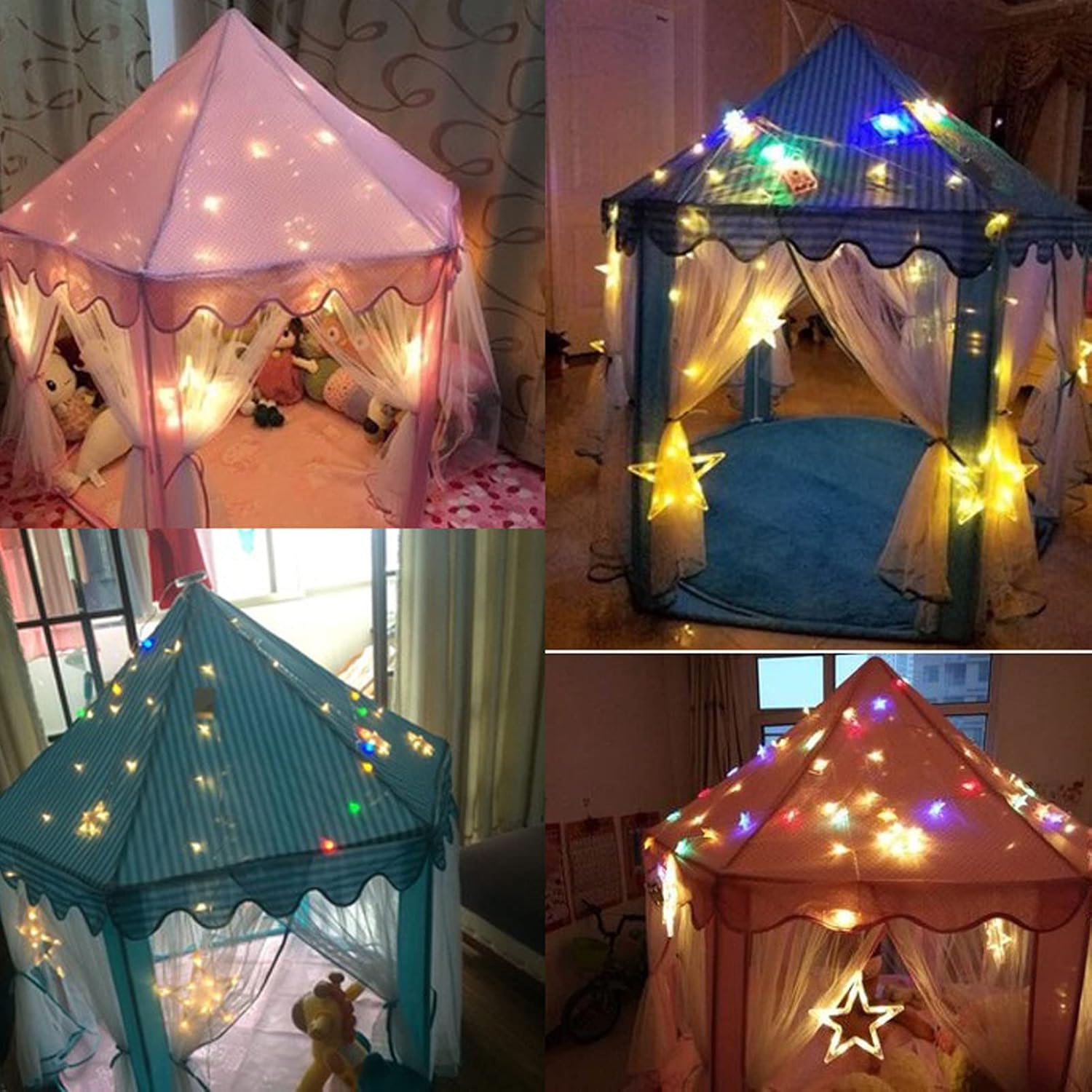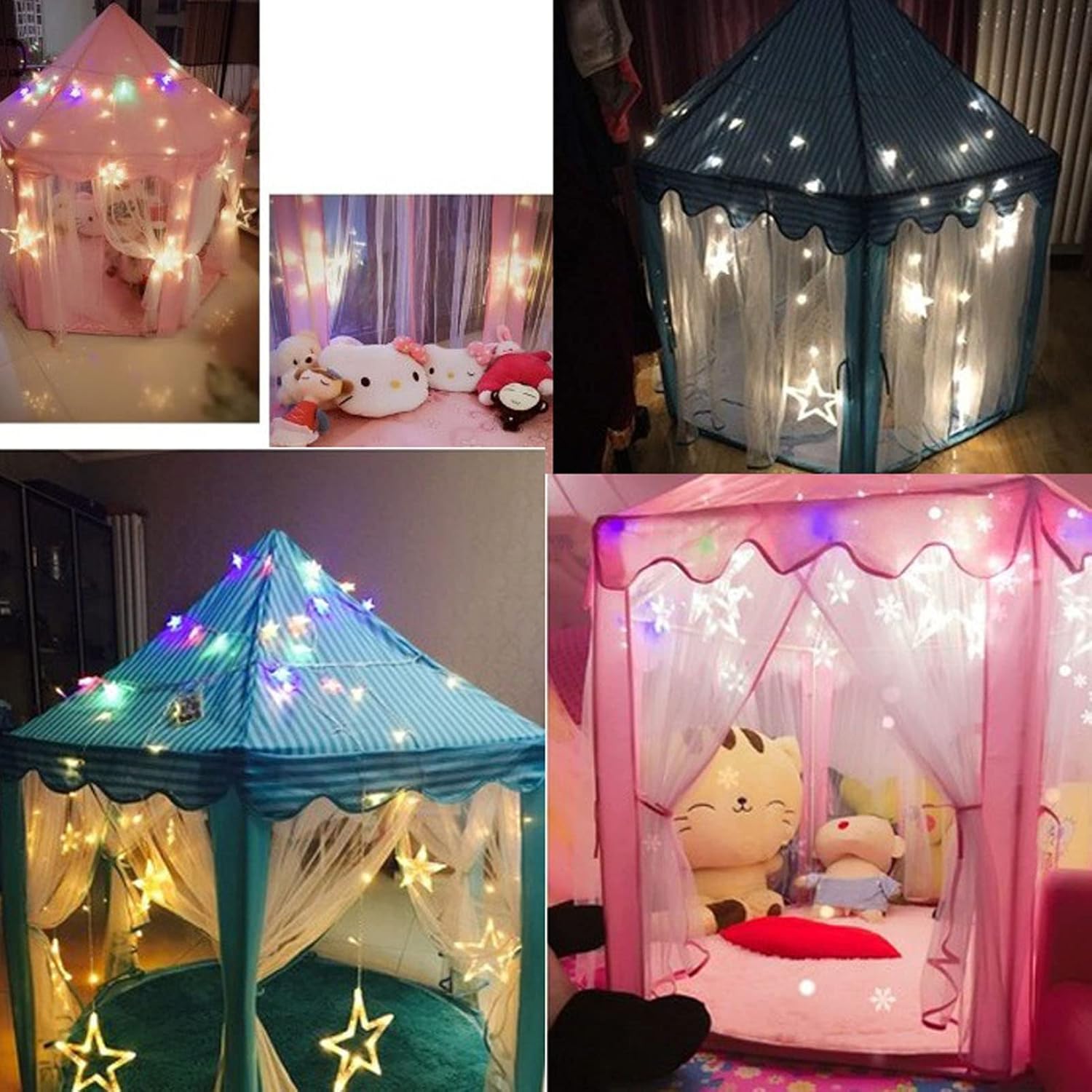 Grande spazio: ampio spazio , grandi dimensioni, può ospitare diversi bambini che giocano insieme allo stesso tempo. Materiali premium: staffa in PVC rinforzata, design squisito della struttura, spessa, ferma e resistente. Tessuto morbido, morbido e adatto alla pelle. Piegabile portatile: facile piegatura, non occupa spazio, design vincolante, luce, più conveniente da trasportare. Squisito bello: usando una sofisticata tecnologia di produzione e una raffinata lavorazione, questa tenda per bambini è squisita e bella. Buon : è il buon per tuo figlio creare un regno in qualsiasi angolo della tua casa e realizzare il sogno di un bambino di una casa e villa.