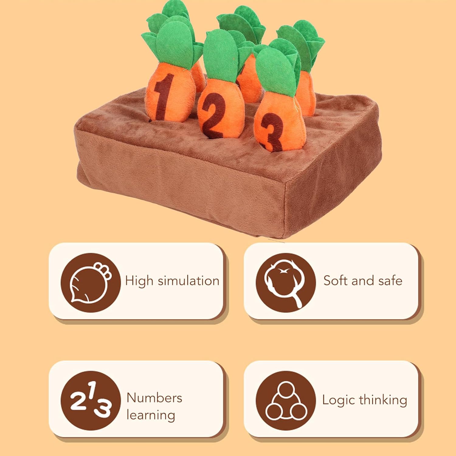 Apprendimento dei numeri: il gioco di memoria delle carote ha adottato il tipo di fattoria, 6 carote con numeri, che può migliorare il pensiero cognitivo e logico dei bambini. Addestramento delle abilità motorie: il giocattolo per la raccolta delle carote è un buon strumento educativo per migliorare lo sviluppo delle abilità motorie e migliorare anche la coordinazione occhio-mano. Presa comoda: la carota di cotone non è facile da perdere i capelli, con dimensioni grandi e perfette per una presa comoda, che può esercitare le abilità pratiche dei bambini. Morbido cotone: giocattolo educativo per la raccolta delle carote realizzato in materiale di cotone, morbido e delicato sulla pelle, sicuro e affidabile, consente ai bambini di giocare a proprio agio. Promuovi la relazione: il giocattolo per la raccolta delle carote può esercitare l'abilità pratica del bambino, consentire ai genitori di accompagnare il bambino per godersi il tempo genitore-figlio