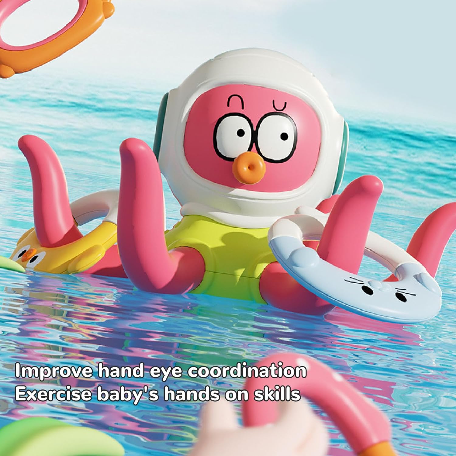 Interattività migliorata: la caratteristica degli anelli aumenta l'interazione del figlio genitore, aiutando a sviluppare il coordinamento degli occhi manuali del tuo bambino, fornendo momenti di legame divertenti e coinvolgenti Materiali plastici sicuri: realizzati con materiali di qualità eccellente e robusti, questo giocattolo da bagno garantisce la salute e la sicurezza del tuo bambino durante il gioco, rendendolo una scelta per i genitori di tutto il mondo Design multifunzionale: questo giocattolo di polpo e anello è adatto per giochi d'acqua, gioco di terra e attività di lancio, incoraggiando vari stili di gioco a stimolare la creatività e il divertimento del tuo bambino Posizioni di gioco versatili: ideale per l'uso in vasca, piscine, spiagge e altro ancora, questo giocattolo offre un divertimento senza fine ovunque tu sia, fornendo al tuo bambino esperienze di gioco gioiose sempre e ovunque Design adorabile: la forma carina del polpo cattura l'attenzione del tuo bambino e aggiunge un fascino giocoso all'ora del bagno, migliorando il loro interesse e mantenendoli intrattenuti