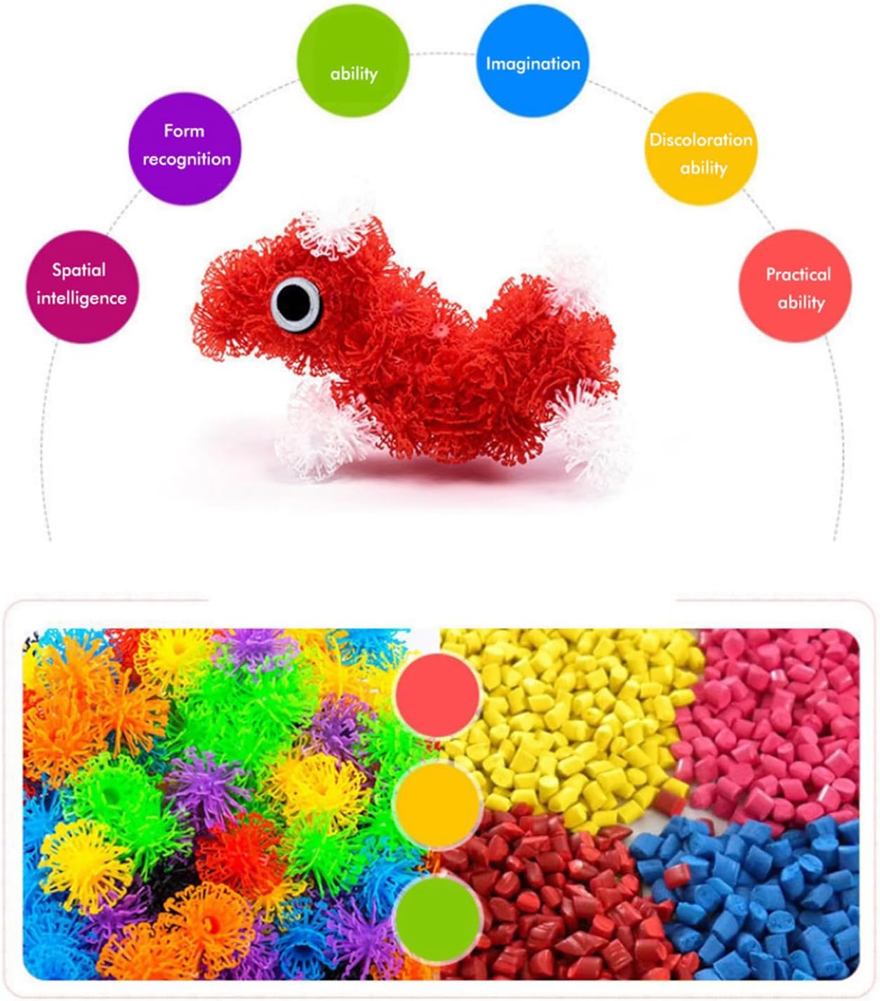 3. Può essere combinato in diversi modelli, come gufi, orsi o polpi, automobili o altri modelli per migliorare l'intelligenza, l'immaginazione e la creatività dei bambini ed esercitare la coordinazione occhio-mano. 4. Funzionamento semplice, adatto a bambini di età superiore a 3 anni. Molto adatto per l'interazione genitore-figlio. Gioca a questo gioco con tuo figlio, trascorri ore divertendoti, costruendo, scoprendo, imparando, quanto è divertente per il bambino e quanto è felice per il genitore. 5. Fornire una piccola scatola di immagazzinaggio, in modo da poterla riporre e trasportare facilmente, ad esempio durante il viaggio. 1. Le sfere spinose possono attaccarsi insieme senza colla o acqua, possono essere riutilizzate indefinitamente, immaginano facilmente qualsiasi creazione, coltivano l'immaginazione, la destrezza e imparano colore e forma. 2. Colori vivaci, forme accattivanti, giocattoli creativi con palline a bolle fai-da-te possono attirare l'interesse dei bambini e ridurre la loro dipendenza da telefoni cellulari, computer o altri prodotti elettronici.
