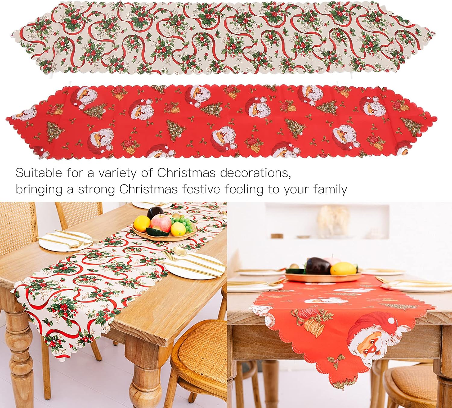 [Eleganti e belli]: i runner da tavola natalizi presentano squisiti motivi di stampa che aggiungono un tocco elegante al tuo arredamento. [Multiuso]: ottimo per Natale, uso quotidiano, feste festive o cene di famiglia. il set include 2 modelli di bandiere da tavolo per un facile scambio. [Design retrò]: motivi retrò classici e colori vivaci conferiscono un fascino unico al tuo tavolo da pranzo. [Durevoli e facili da mantenere]: morbidi e resistenti, questi runner da tavolo sono facili da pulire e mantenere per un uso duraturo. [Decorazioni versatili]: adatto a varie decorazioni natalizie, creando un'atmosfera festosa per le riunioni di famiglia.