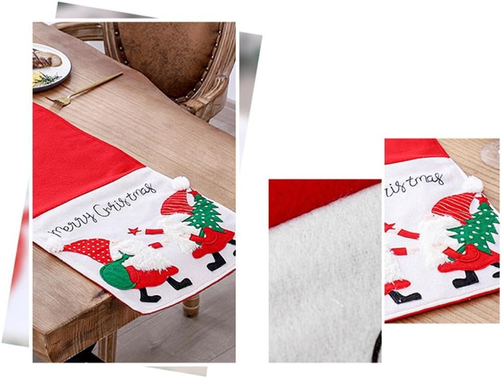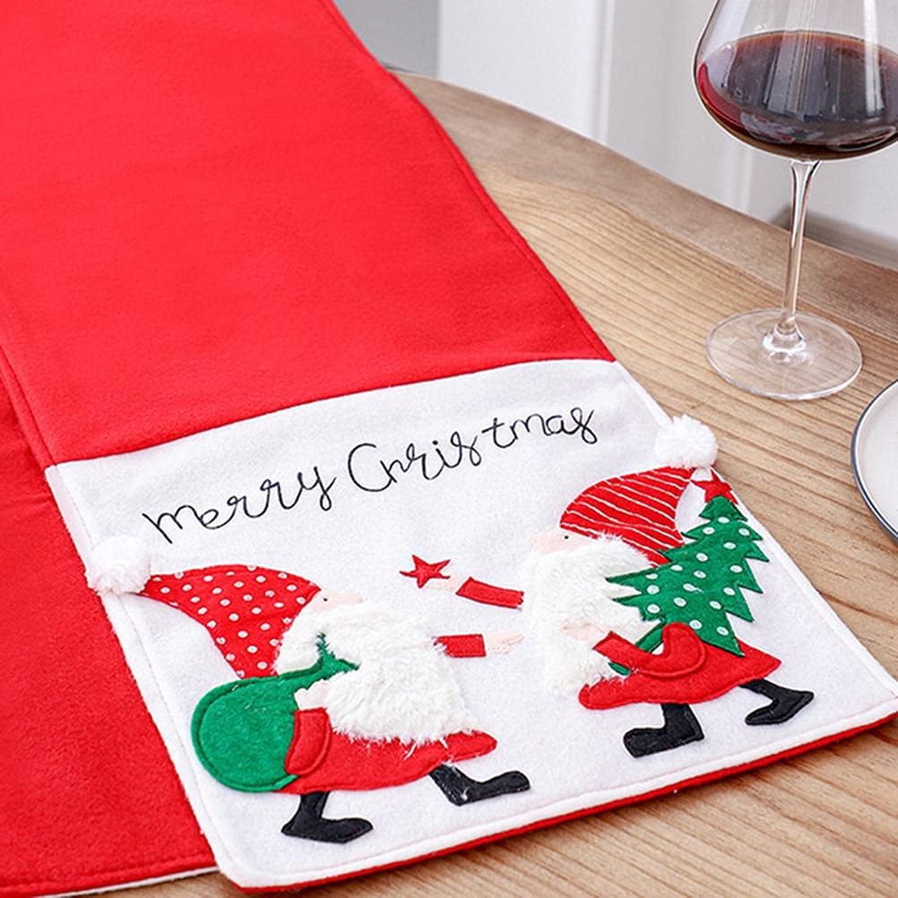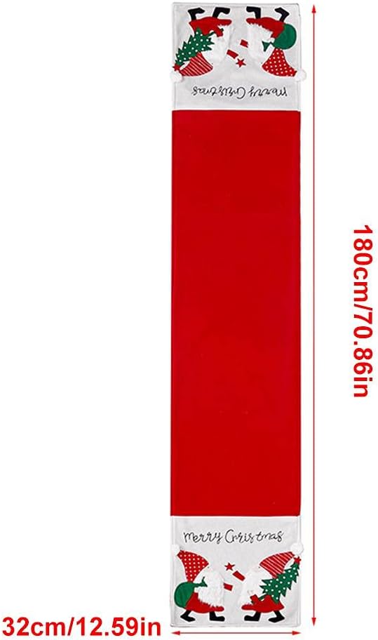 1. Bellissima decorazione natalizia: decorazione da tavolo in flanella ricamata di buon Natale, due simpatici nani natalizi, con albero di Natale e sacchetti , aspetto carino e gioioso. 2. Stile classico: runner da tavolo squisito. Ci sono modelli su entrambe le estremità, classici e semplici. È molto adatto per decorare la tua scrivania durante il periodo natalizio per le riunioni di famiglia durante le vacanze. 3. Tavolo decorativo: buona decorazione domestica, molto adatto per il tavolo del portico, il tavolo da pranzo, il tavolino da caffè, il tavolo da terrazza all'aperto o altre superfici, aggiungendo stile tradizionale. 4. Materiali di alta qualità: questo runner da tavolo è realizzato in tessuto di flanella, morbido al tatto, resistente ed ecologico. I bordi sono cuciti delicatamente. 5. Facile da pulire: se ti sporchi accidentalmente, basta pulirlo con un panno umido. Per non rovinare il suo bell'aspetto, si consiglia di lavarlo a mano quando si desidera pulirlo a fondo.
