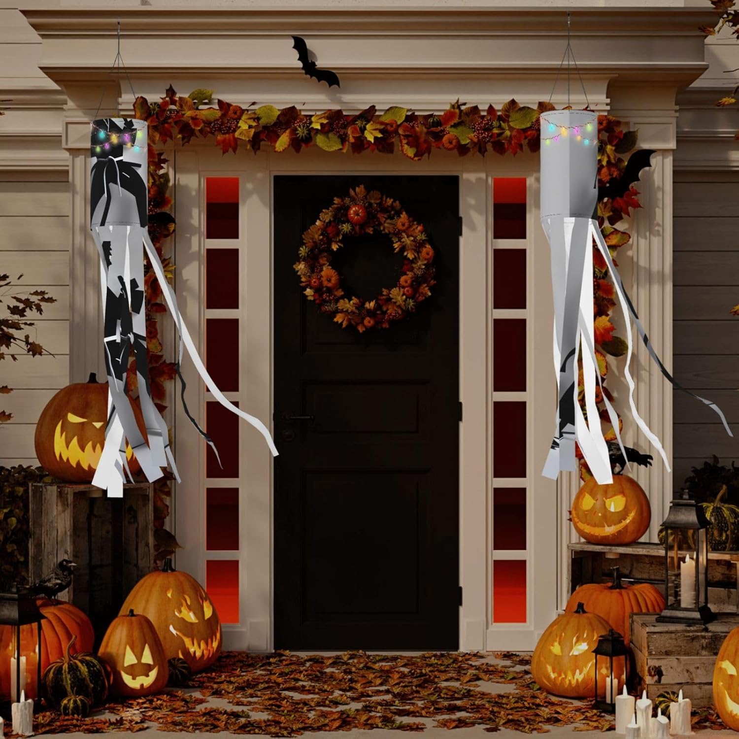 SSIMOO Impressionante Karate Men Deliziosa illuminazione esterna per vacanze: calze a vento da strega di Halloween per esposizione stagionale mozzafiato