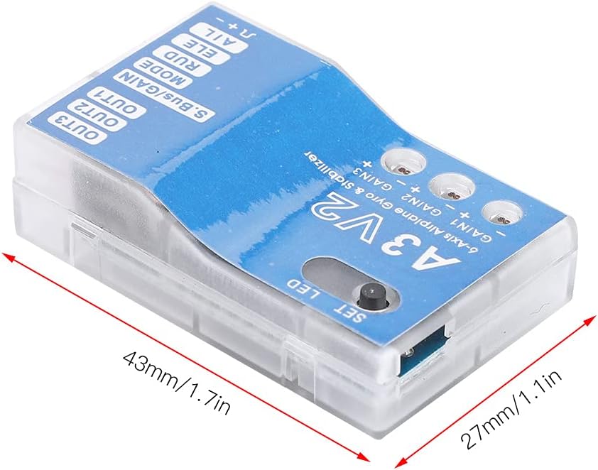 HOVER AUTOMATICO A UN TASTO: il controller di volo A3 semplifica le manovre aeree semplicemente premendo un pulsante per ottenere il volo stazionario automatico, garantendo stabilità, senza l'uso delle mani e migliorando l'esperienza di volo per utenti di tutti i livelli di abilità QUATTRO MODALITÀ DI VOLO: lo stabilizzatore del controllore di volo ha quattro modalità di volo: seleziona la modalità normale per un'esperienza di guida classica, seleziona la modalità di bilanciamento automatico per una maggiore stabilità, seleziona la modalità hover automatico per non avere le mani in bilico o usa la modalità giroscopio spento per liberare le tue abilità per lavori avanzati, soddisfare le diverse condizioni di volo e le preferenze del pilota TRE TIPI DI ALA: lo stabilizzatore giroscopico per aereo apparato di bilanciamento giroscopico supporta più tipi, tra cui ala standard, ala delta (ala volante) e ala di coda a forma di V, rendendolo una scelta versatile per gli appassionati di aerei telecomandati FACILE DA USARE: lo stabilizzatore per aereo ad ala fissa RC è facile da usare, con regolazioni individuali del guadagno per ciascuna modalità di volo e centratura automatica del joystick per controllare la tua esperienza di volo, rendendolo perfetto per i principianti FREQUENZA DEL SERVO REGOLABILE: il servo completo dello stabilizzatore giroscopico ha tre frequenze operative, offrendo opzioni di frequenza operativa del servo da 50 Hz, 125 Hz e 250 Hz, fornendo un controllo di regolazione fine per soddisfare i requisiti specifici del servo e aeromobile