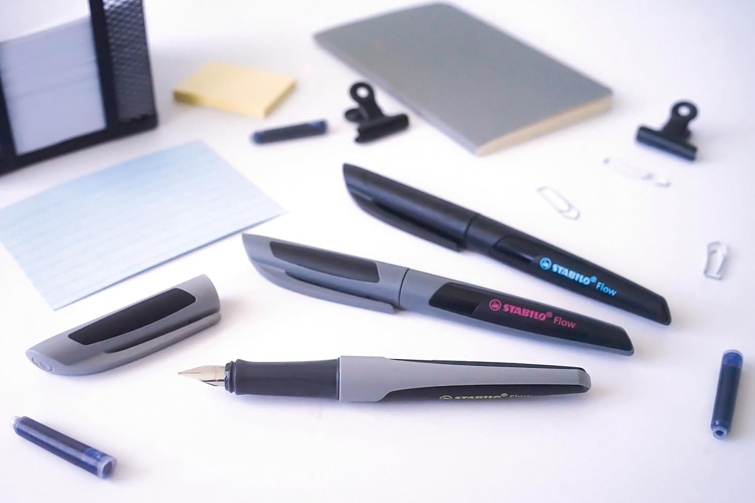 Tutta la qualità STABILO in una penna stilografica dal design moderno, colorato e alla moda Per ragazzi, adulti, trendsetter, e tutti gli amanti della moda e dello stile! Nessuna macchia: il cappuccio con chiusura ammortizzata impedisce perdite d'inchiostro garantendo una calligrafia ordinata e pulita Scrittura sicura e confortevole, grazie all'impugnatura ergonomica antiscivolo Pennino in acciaio inossidabile di alta qualità con punta media in iridio (0,5 mm) per una scrittura pulita e precisa Made in Germany