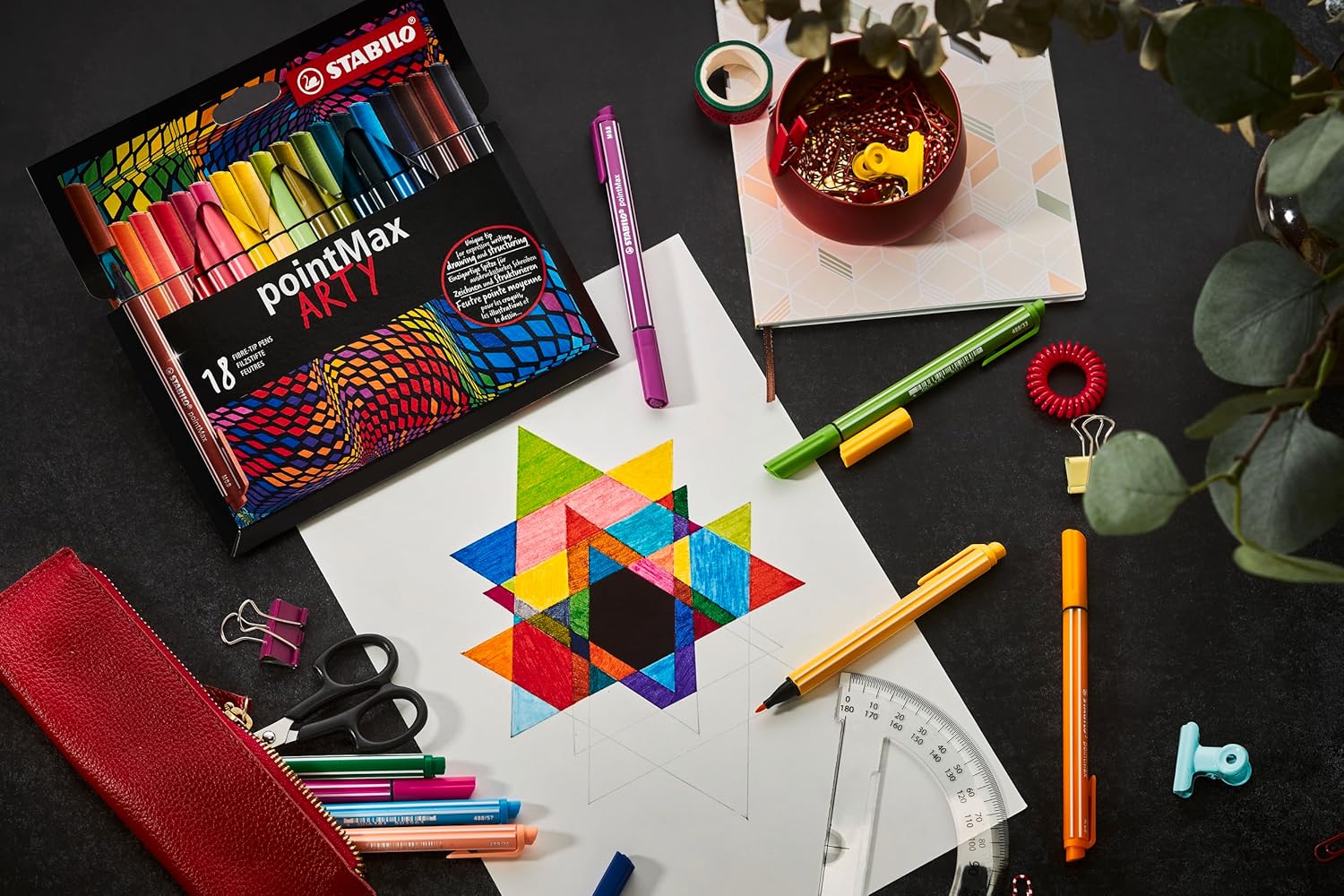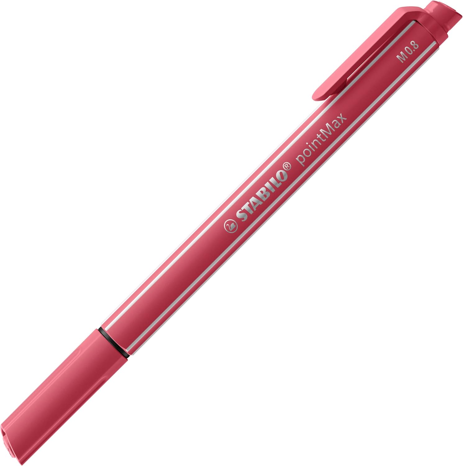 STABILO pointMax è una penna fineliner con punta media 0,8 mm in nylon, ottimale per scrivere, prendere appunti e disegnare con un tratto preciso L’inchiostro a base d’acqua asciuga rapidamente senza sbavature, assicurando linee nitide anche nei dettagli più fini Disponibile in un’ampia gamma di colori brillanti, STABILO pointMax unisce creatività e praticità per ogni progetto artistico o di studio La penna colorata STABILO pointMax è apprezzata anche da chi preferisce penne nere o pennarelli punta fine per la sua scrittura pulita e confortevole La punta fine e resistente assicura performance elevate anche dopo un uso prolungato