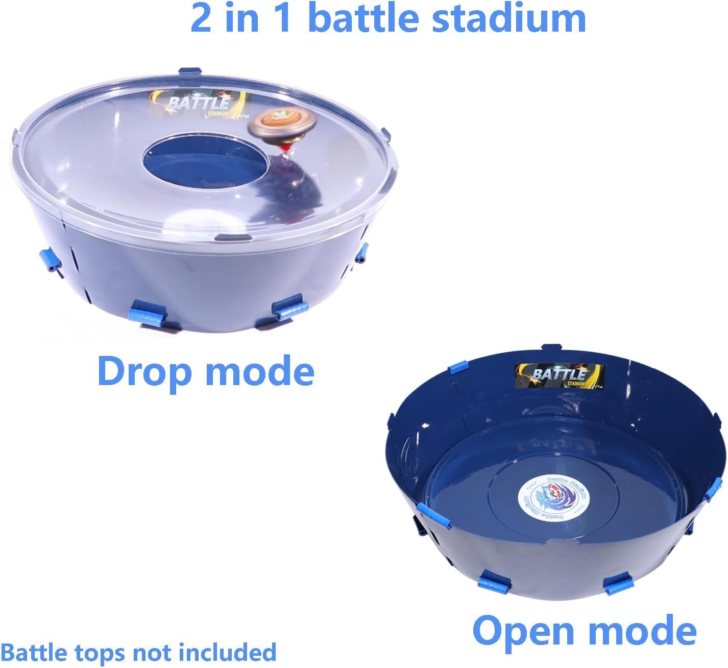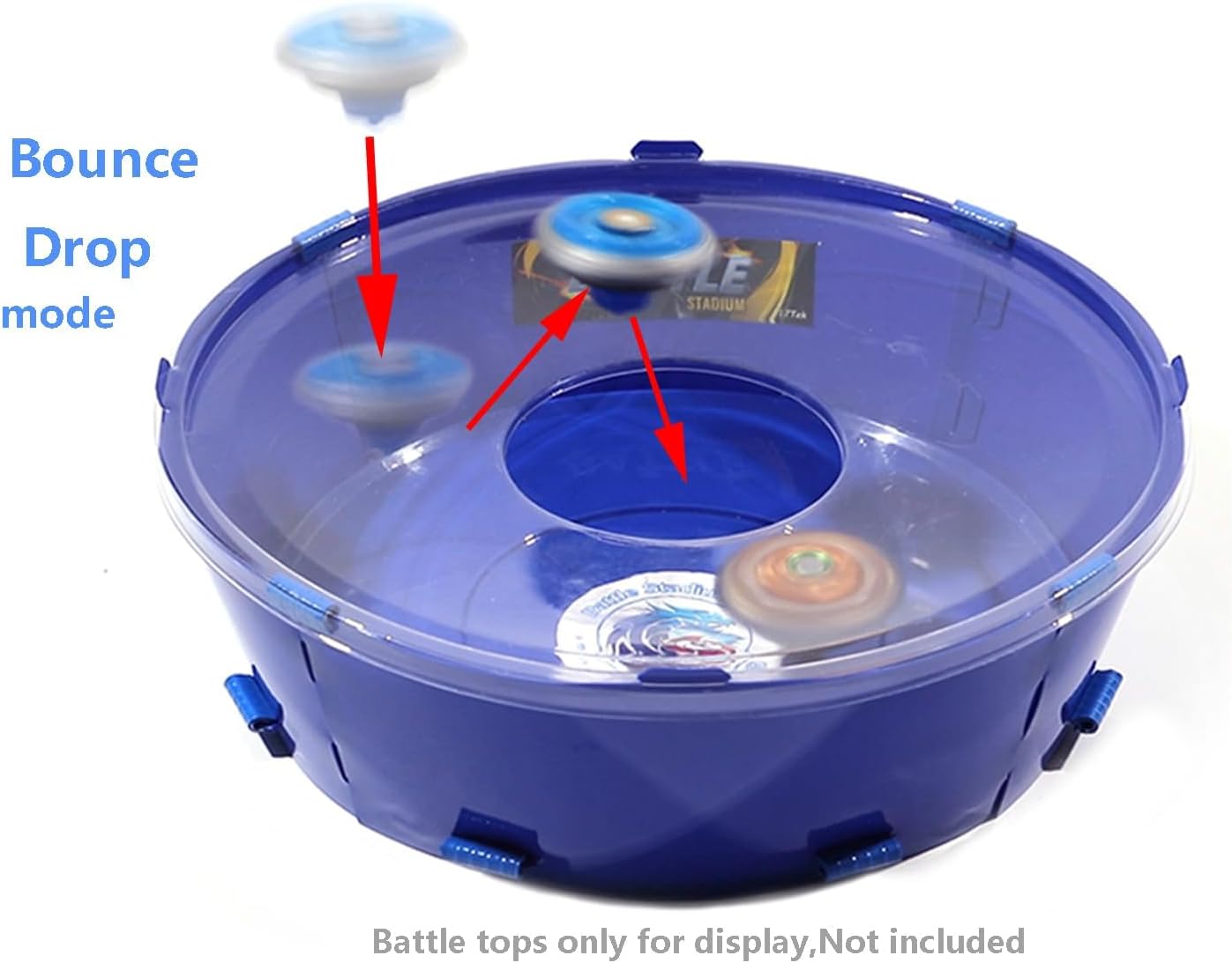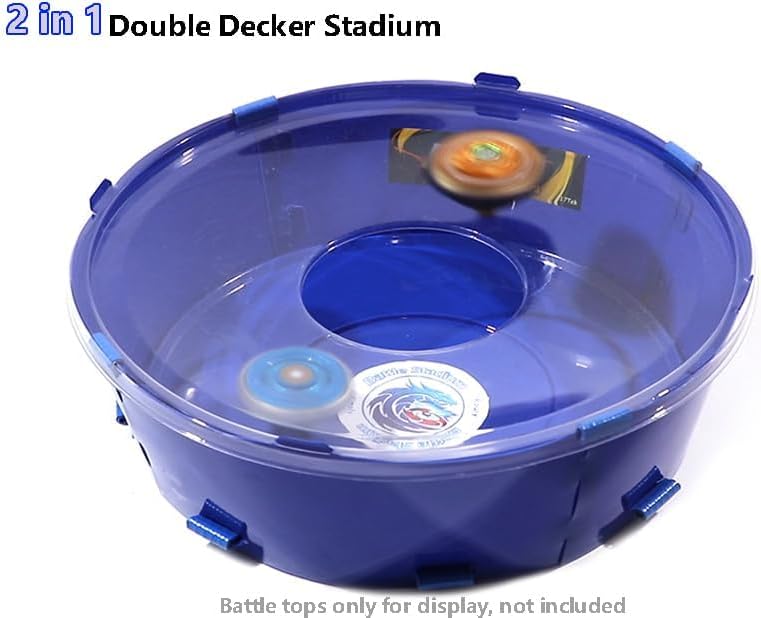2 x 1 stadio, compatibile con battling tops game Due modalità di gioco, modalità drop e open, molto adatto per giochi di battling top e giocattoli rotativi. Realizzato in plastica ecologica, materiale spesso 0,8 mm, robusto e durevole 1 x stadio, come da immagine (giocattolo superiore non incluso). Dimensioni: 12 pollici x 12 pollici x 4 pollici, tempo di montaggio fai da te 2-3 minuti.