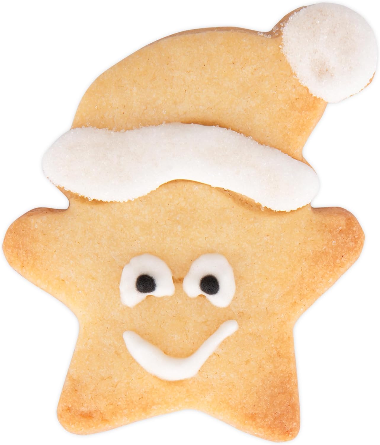 Stella con cappello dal design amorevole, che garantisce risultati tridimensionali e dettagliati sui biscotti - perfetta per motivi natalizi e invernali Realizzato in acciaio inossidabile di alta qualità, antiruggine, lucido e lavabile in lavastoviglie - durevole e igienico per gli alimenti Con goffratura per decorare facilmente pasta, fondente o marzapane; Le linee in rilievo facilitano la decorazione per bambini e adulti. Utilizzo versatile: ideale per ritagliare e modellare plastilina, pasta di sale, argilla polimerica, cera o per la fusione di sapone e candele. Tagliabiscotti saldato a punti con superficie lucida per una facile maneggevolezza e un lavoro pulito